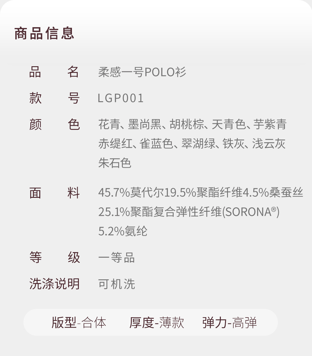 【柔感一号】桑蚕丝Sorona无痕POLO衫LGP001【T】
