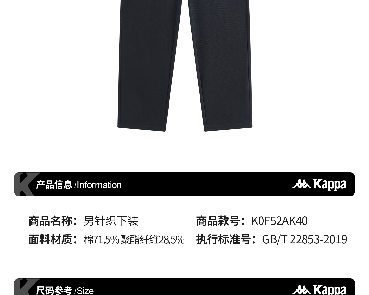 Kappa卡帕背靠背运动长裤男2025新款秋季弹力直筒裤休闲针织裤子K0F52AK40