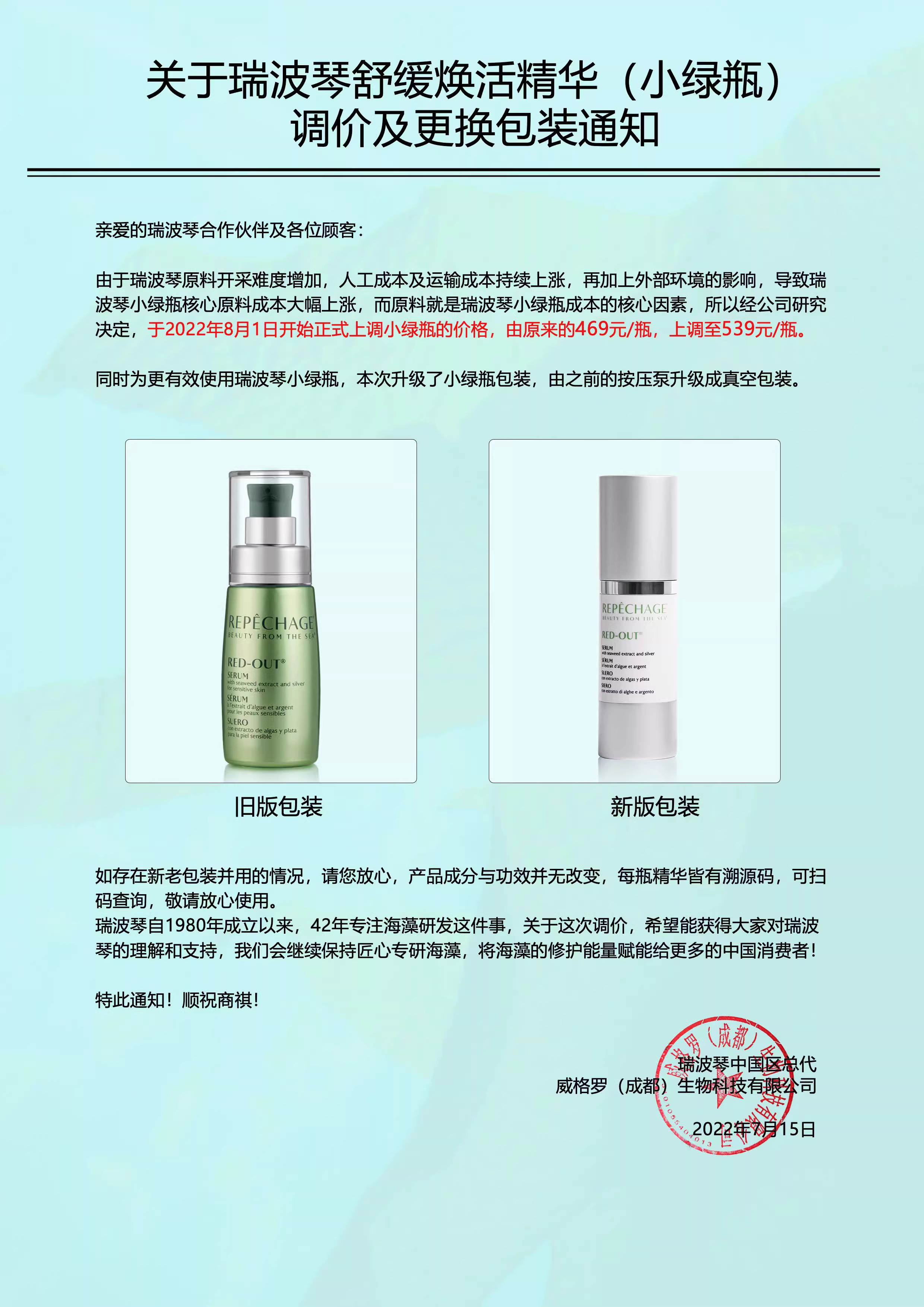 产品名称:Repechage瑞波琴亢y褪红精华液
