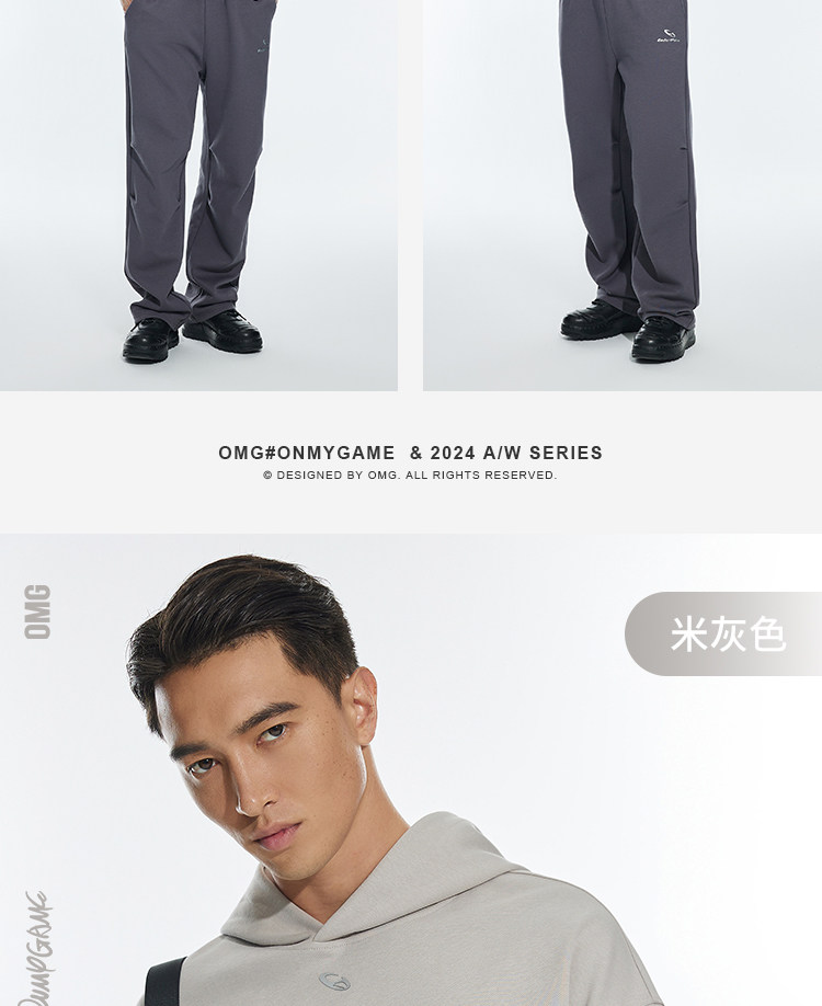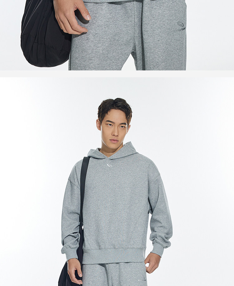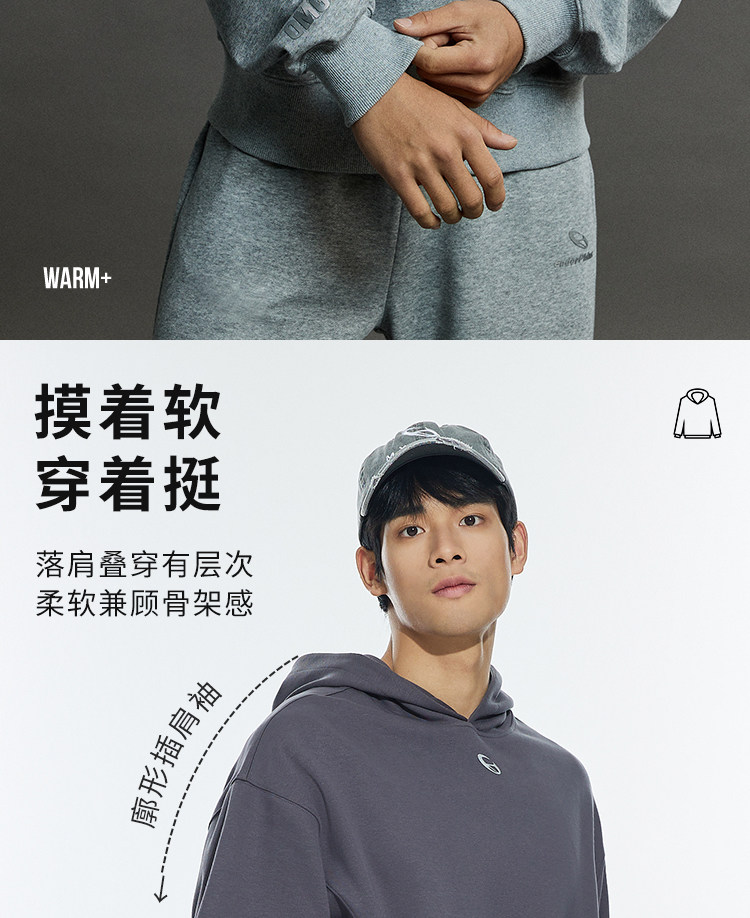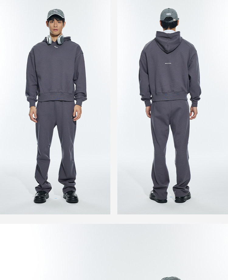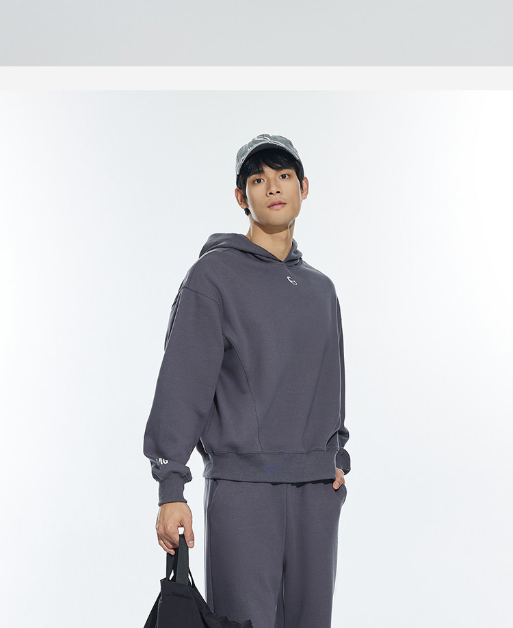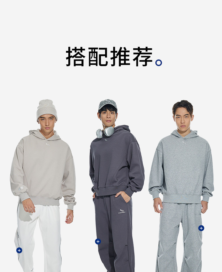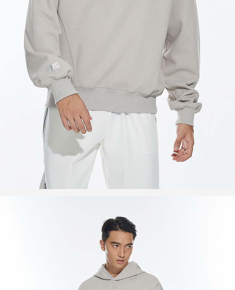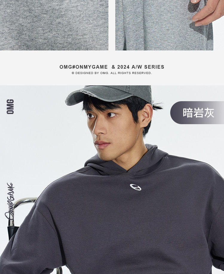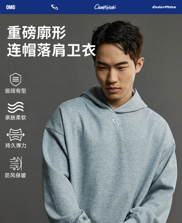 OMG运动 秋冬季连帽卫衣男款落肩套头衫短款休闲外套潮牌高级感
