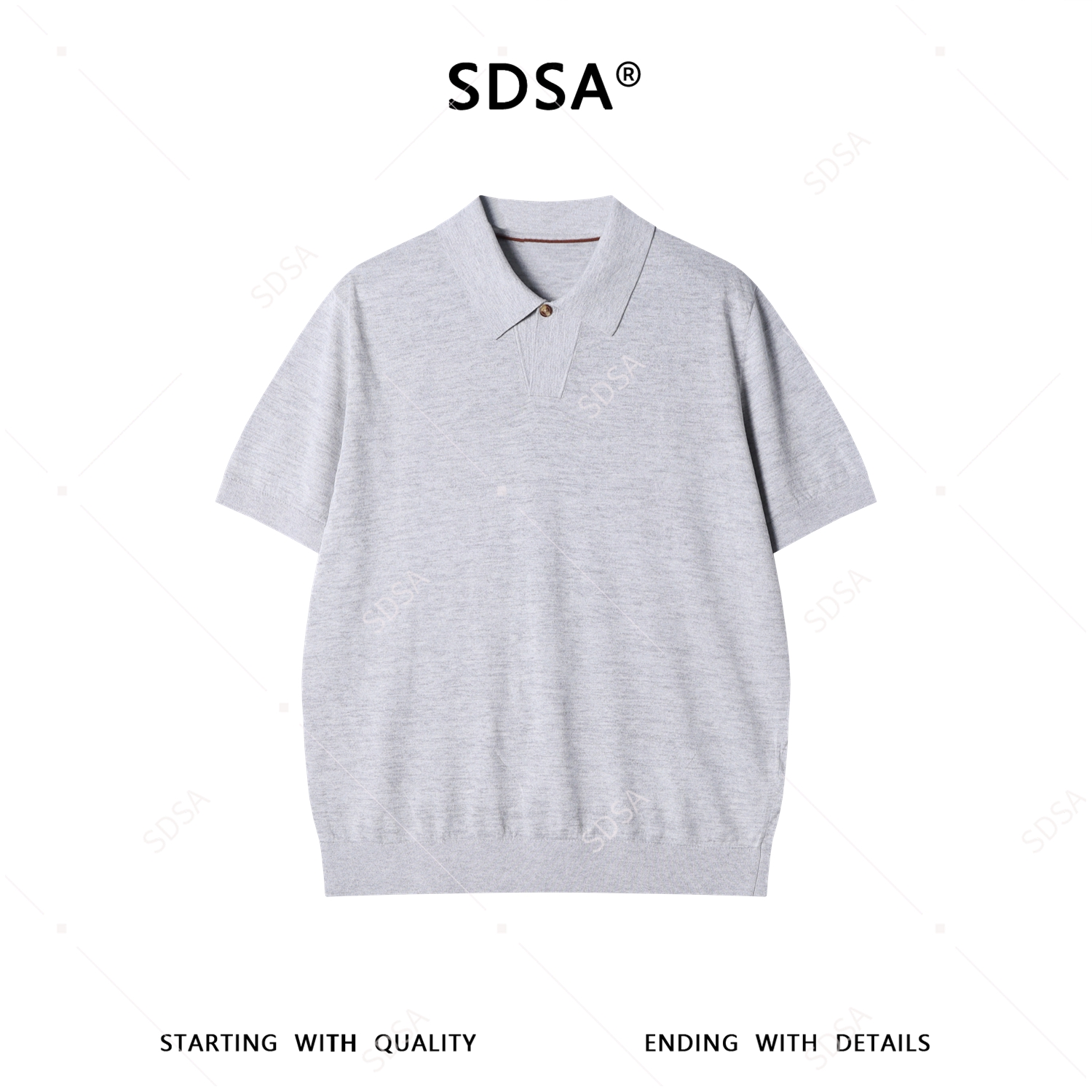 99011SDSA男装2026新款高贵轻奢慵懒风简约纯色翻领短袖T恤百搭时尚