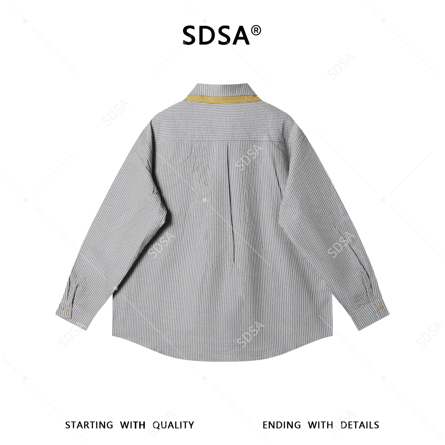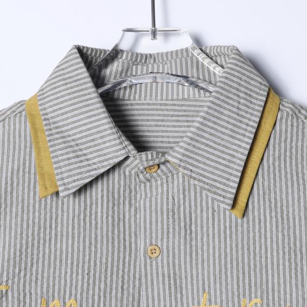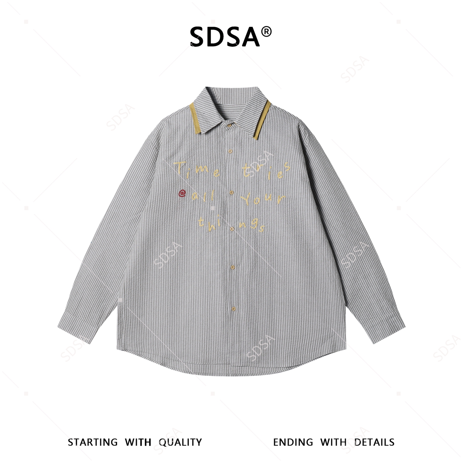 SDSA男装2026新款高贵轻奢日系条纹衬衫字母刺绣撞色领设计百搭