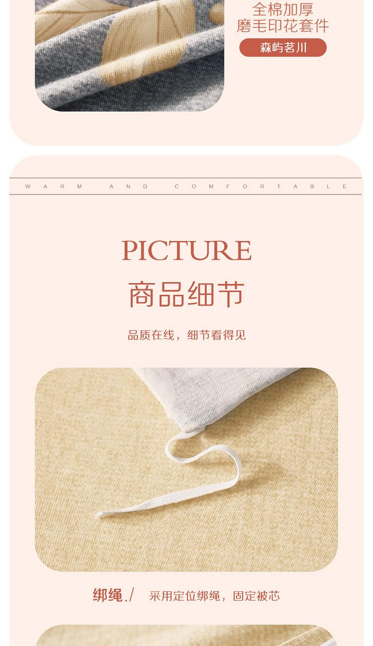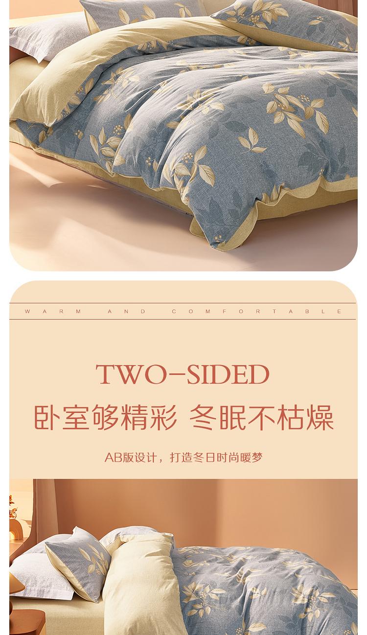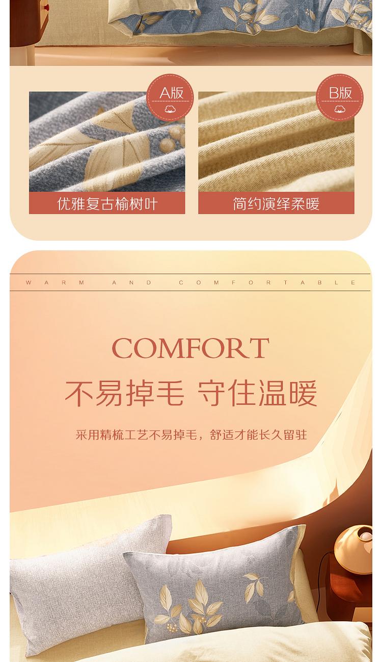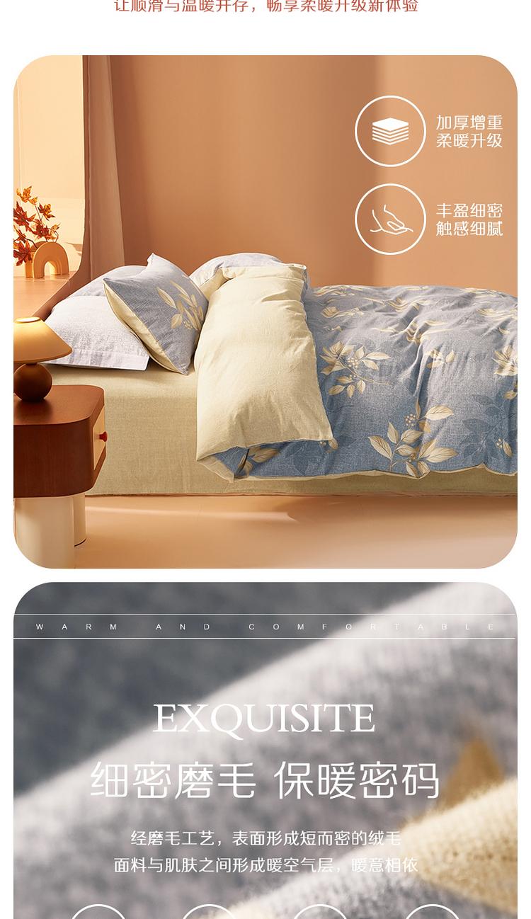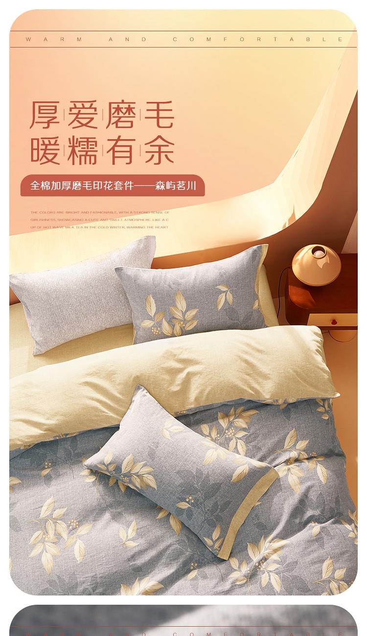 水星家纺 百丽丝家纺磨毛森屿茗川床上三件套被套被子
