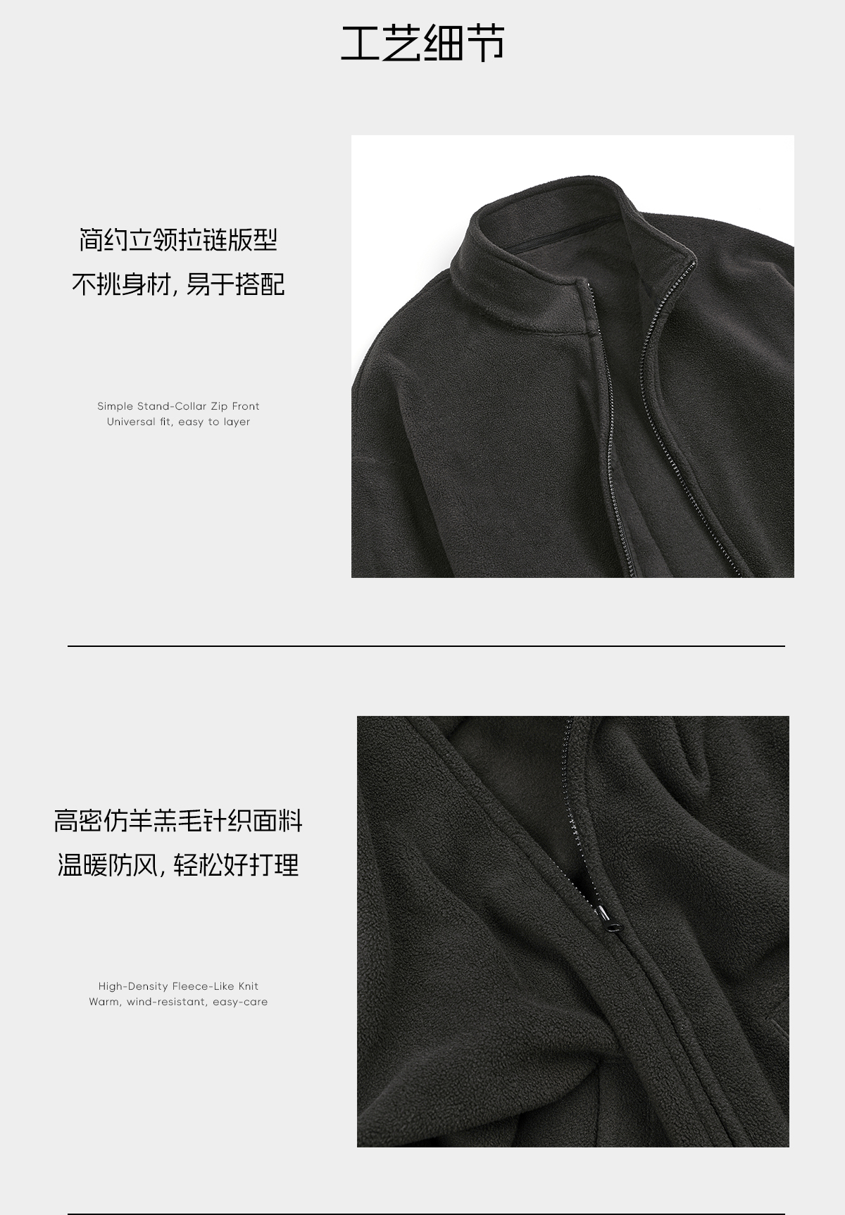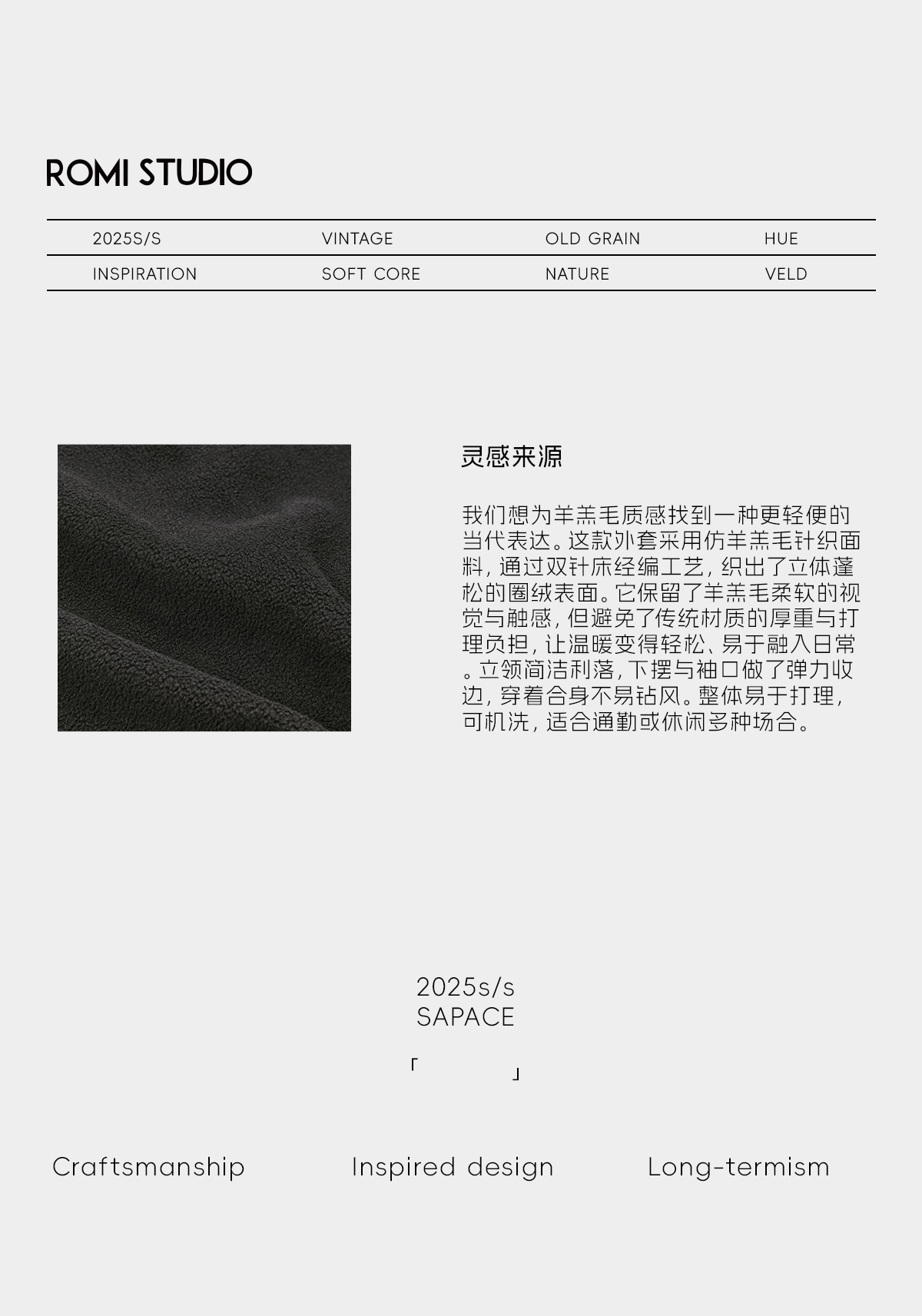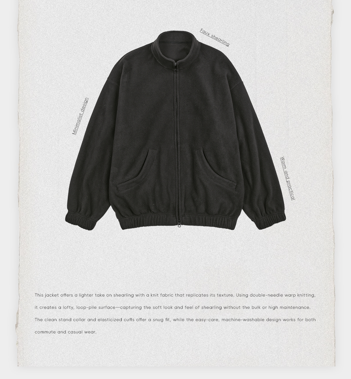 ROMI STUDIO“简约率性”双针机织绒面宽松摇粒绒外套 RWCWW07475