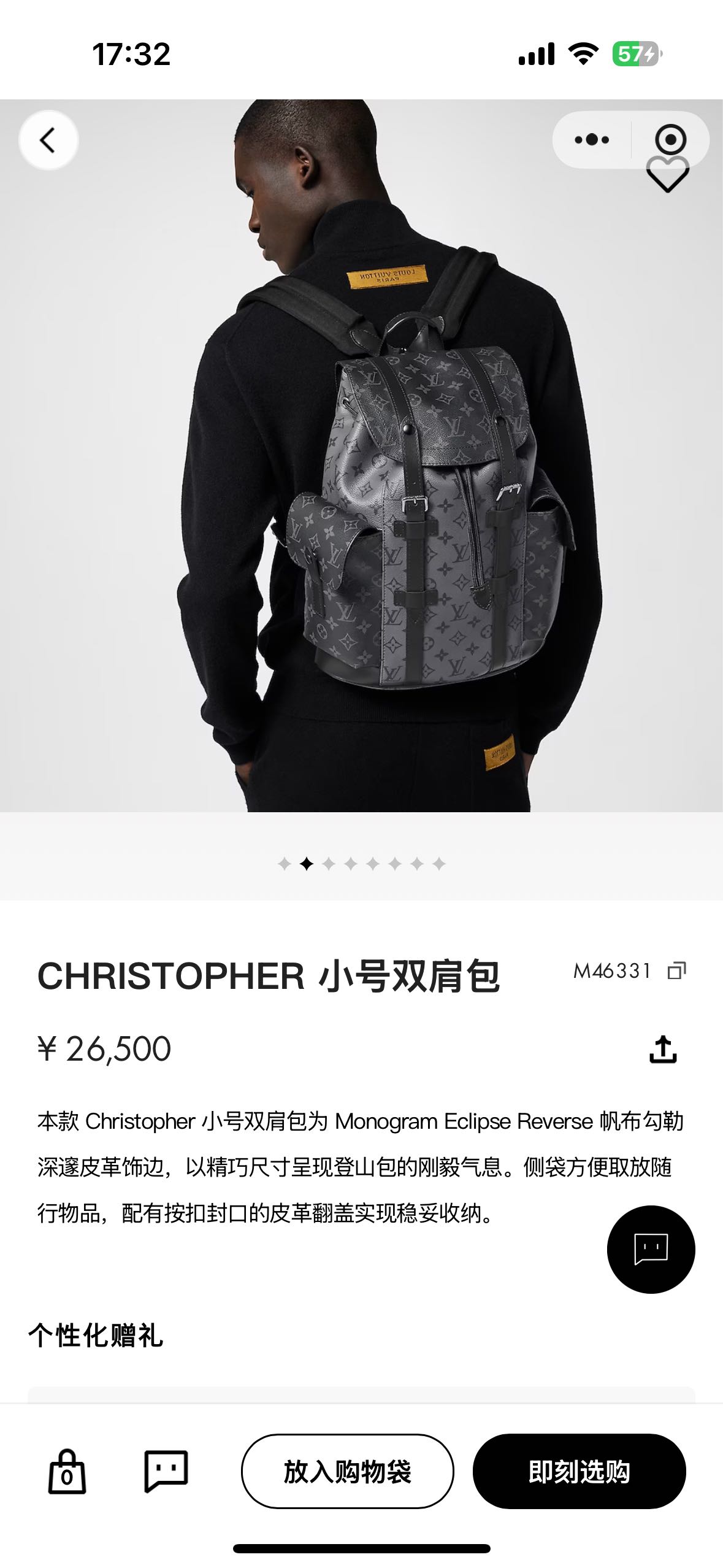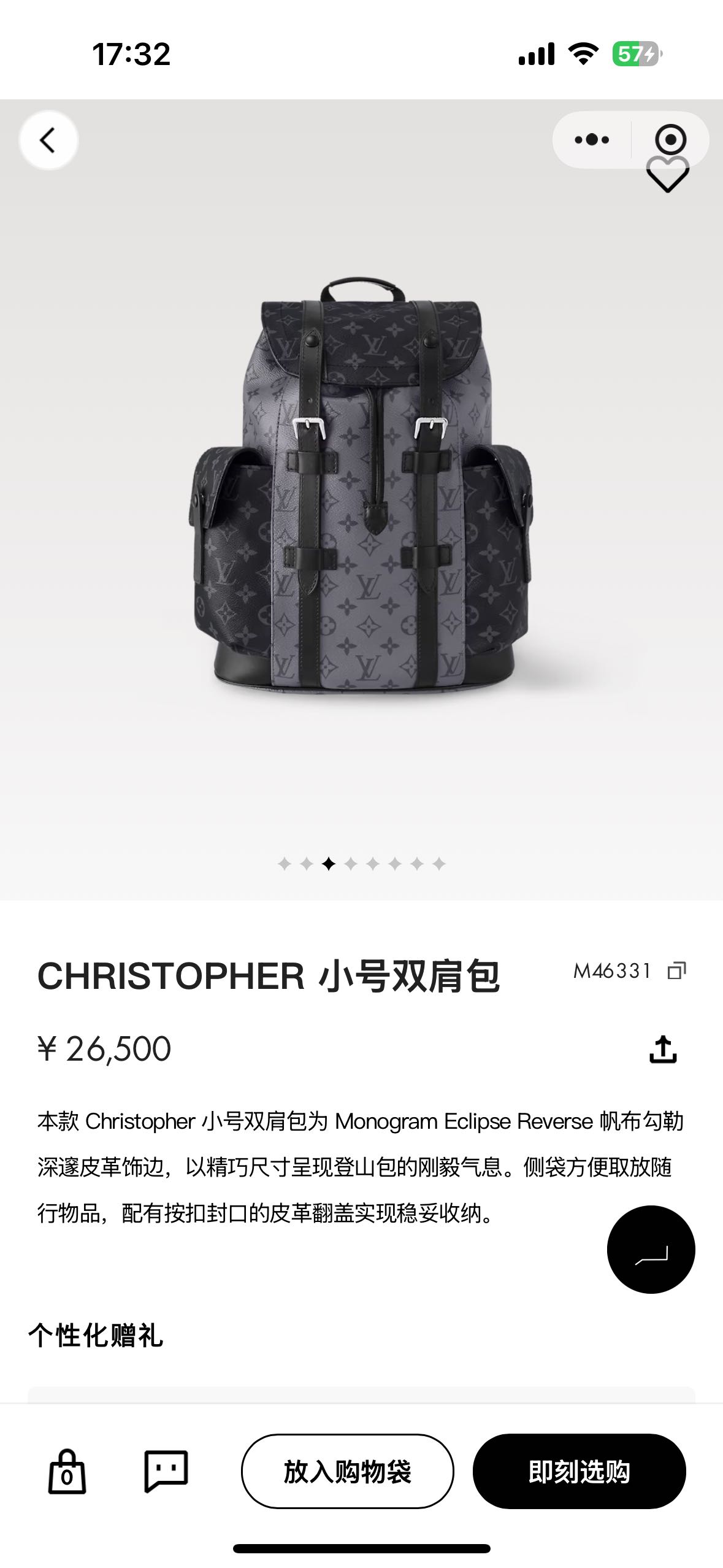 本款Christopher小号双肩包为Monogram Eclipse Reverse帆布勾勒深邃皮革饰边,以精巧尺寸呈现登山包的刚毅气息。侧袋方便取放随行物品,配有按扣封口的皮革翻盖实现稳妥收纳。