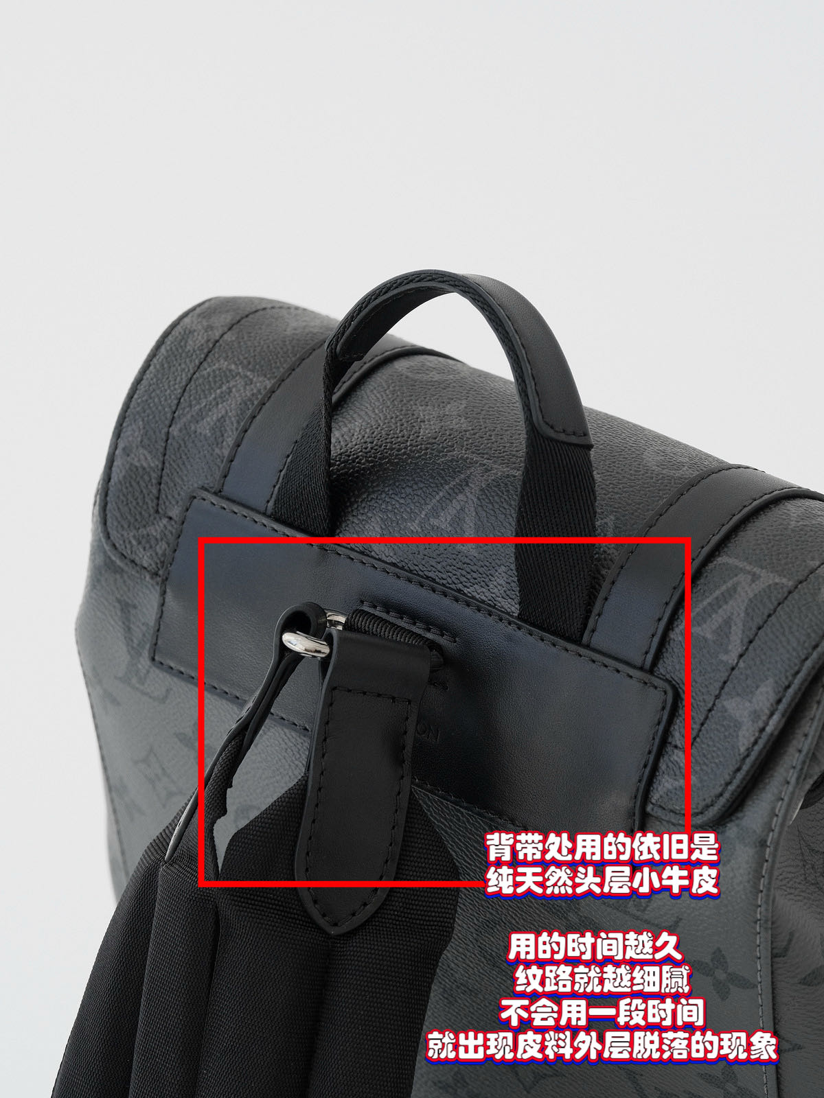 除了主皮料的Pvc老花皮料外,装饰边采用的皮料则是纯天然头层小牛皮(成本巨贵),是上好的意大利进口小牛皮,质地细腻柔软,衬棉质量好,手感适中。