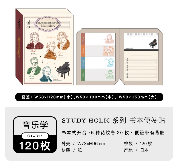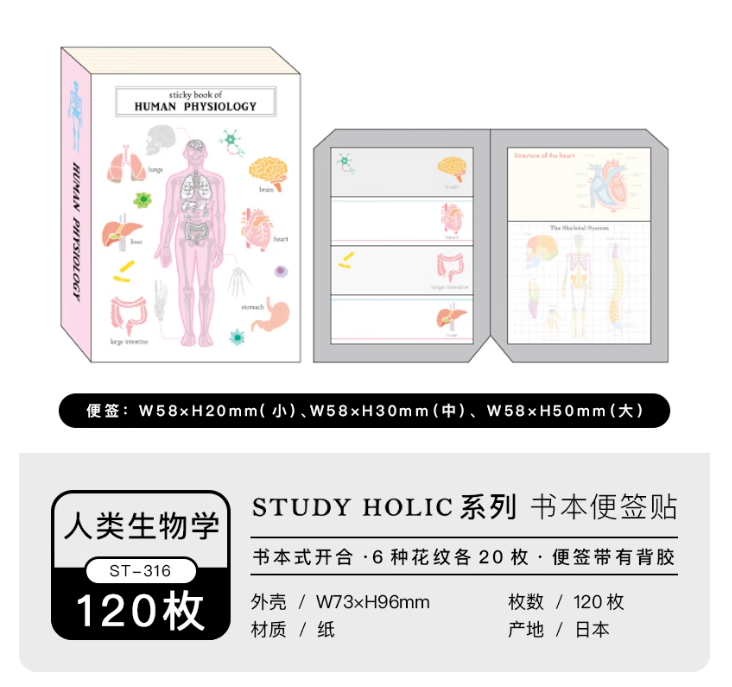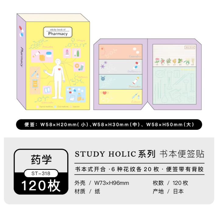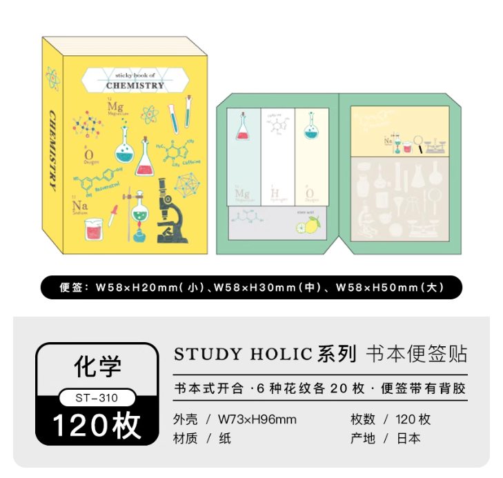 日本GreenFlash STUDY HOLIC趣味学科主题系列书籍创意造型便签贴套组