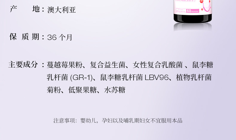 澳洲原装进口DCY蔓越莓益生菌胶囊DIM改善私密花园养护预防问题女