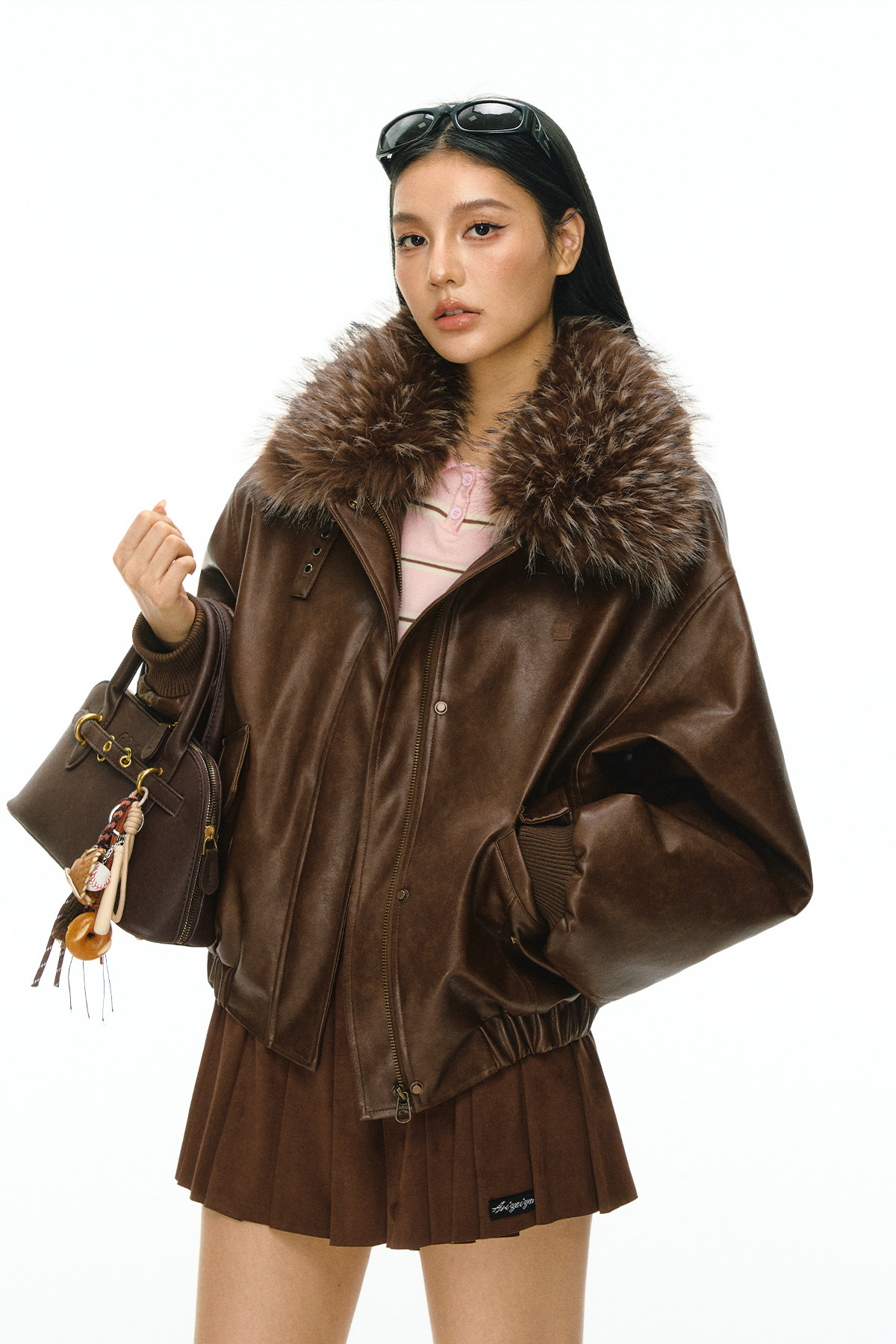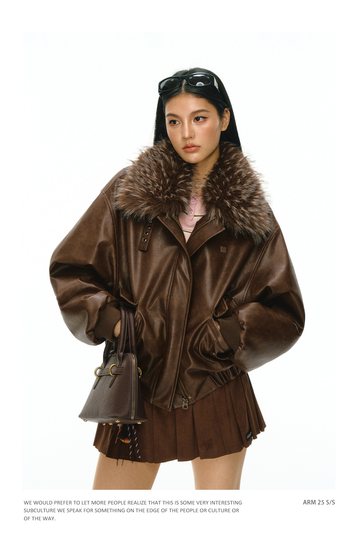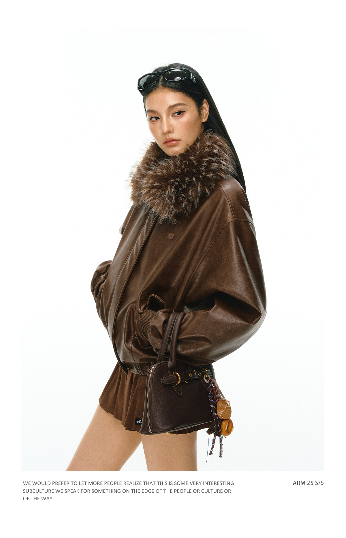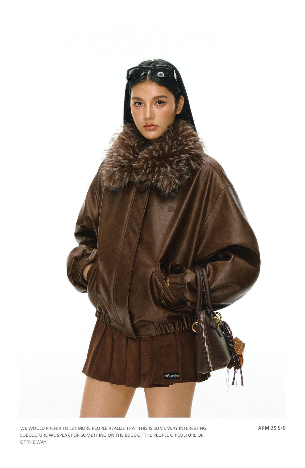 Ariseism 美式复古高级感可拆卸毛领皮衣外套女冬季新款上衣