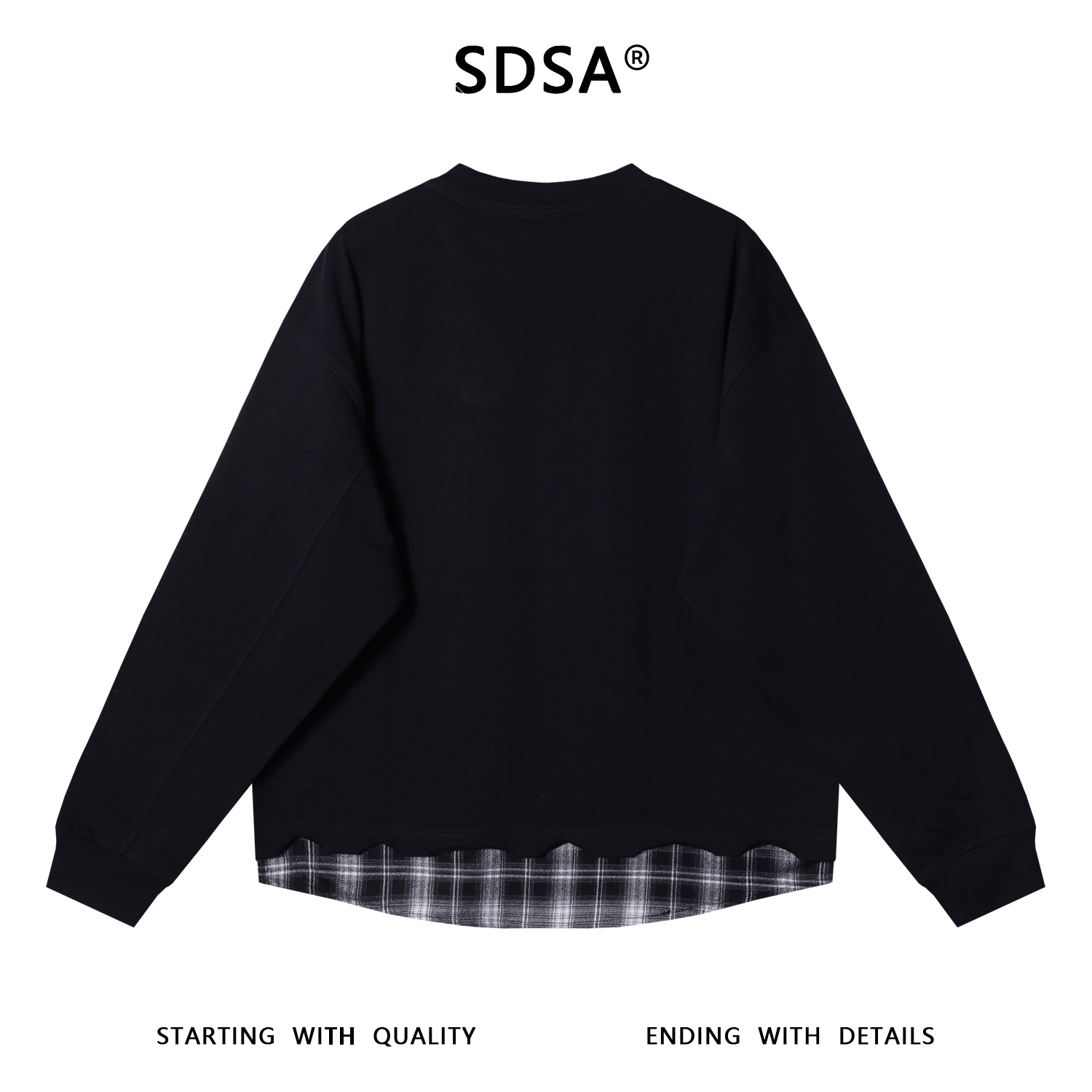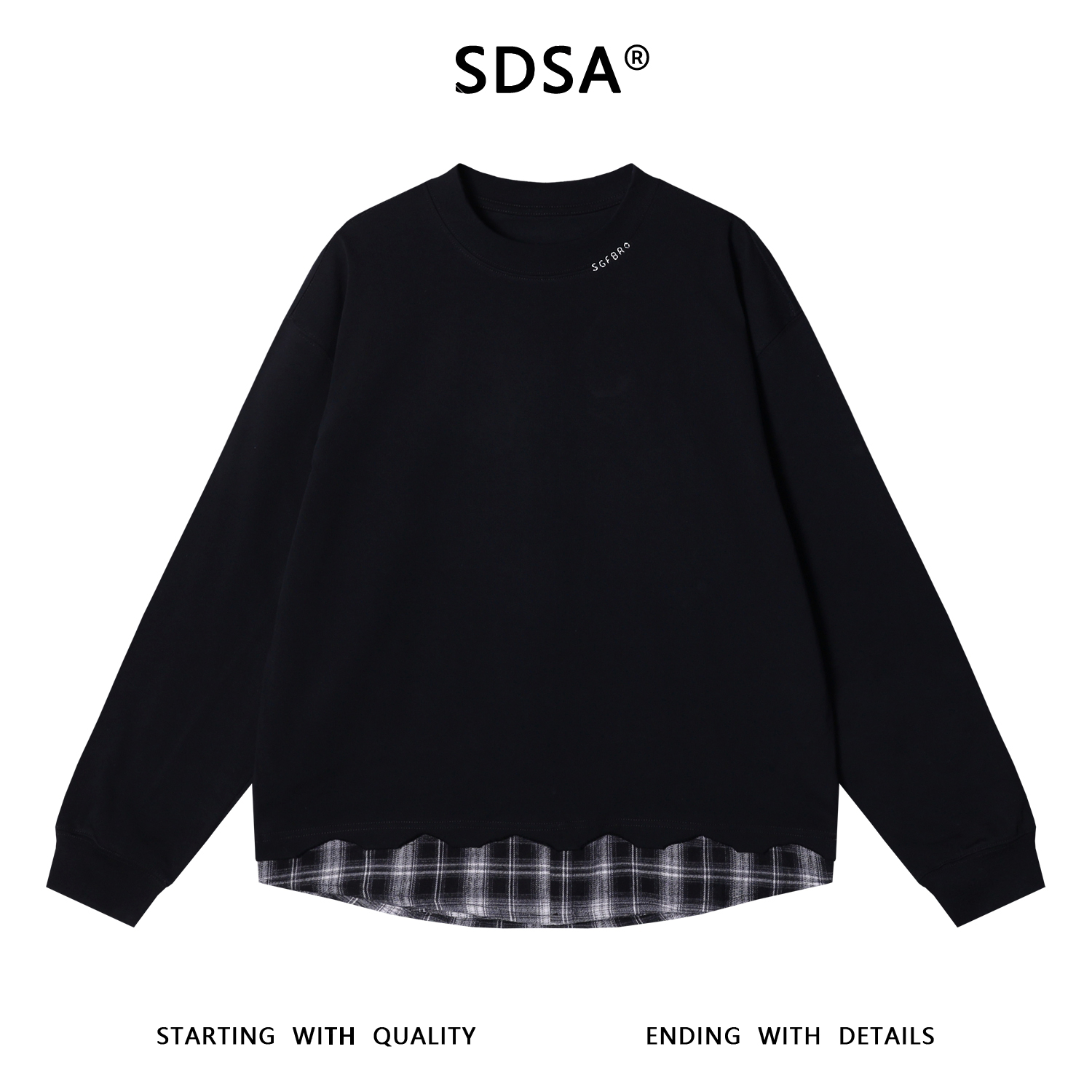 SDSA男士秋冬新款痞帅男装美式拼接设计圆领卫衣领口刺绣字母百搭