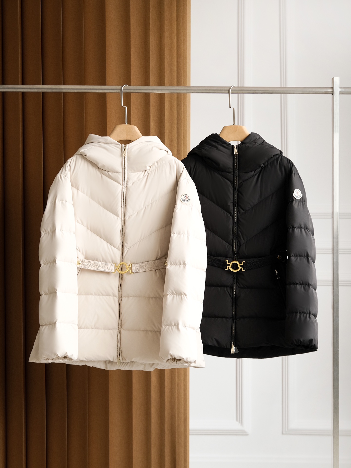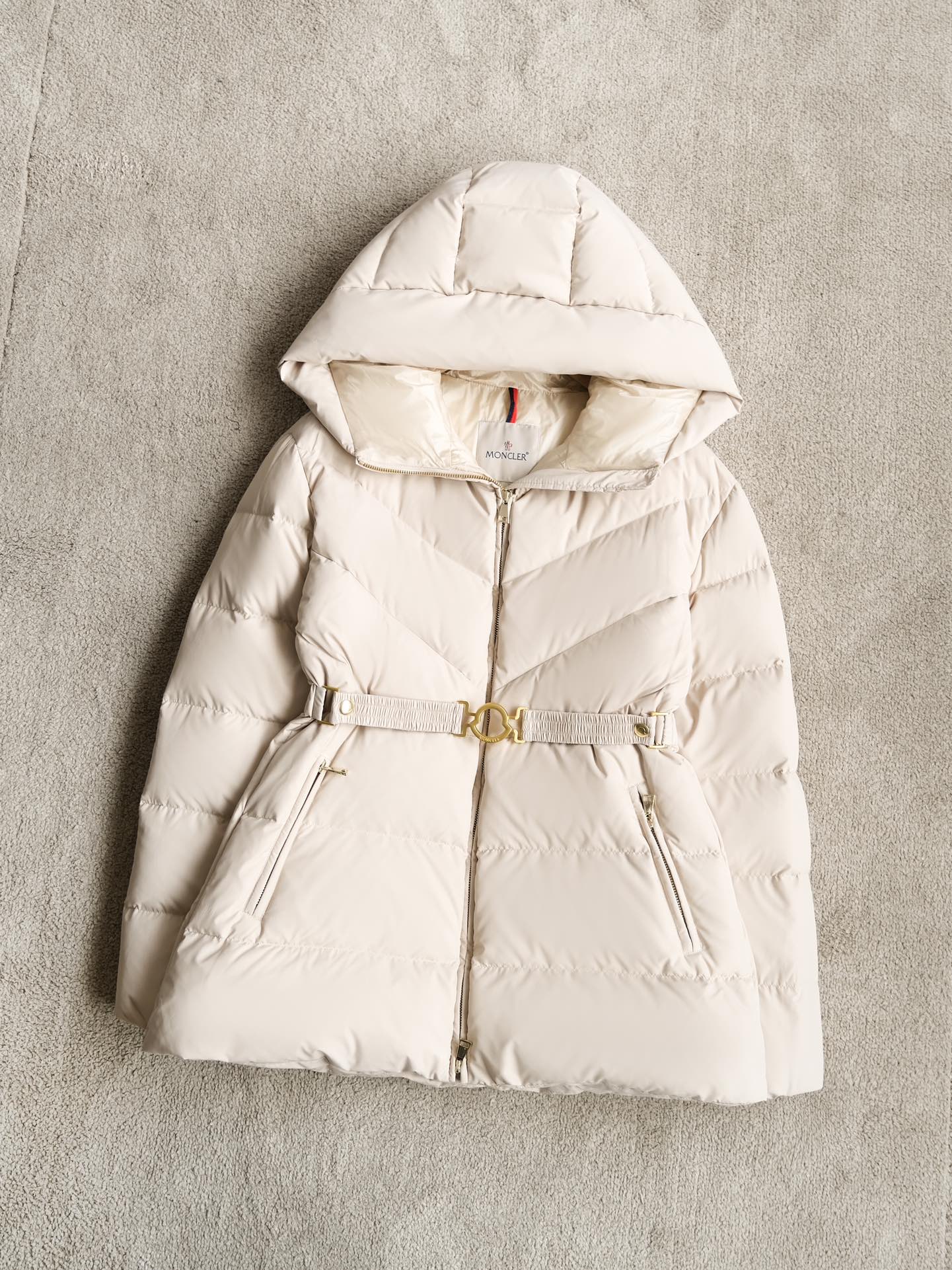 Momcl*r Brosse 最新款女士连帽A字形腰带款羽绒服 这款短款羽绒夹克采用聚酯纤维面料制成,呈现优雅哑光效果,专为拥有隽永品味的女性设计。连帽设计,配以标识腰带,营造迷人的A字廓形。舒适保暖,原版定制面料,这种特殊颜色定制很耗时,不是普通米色‼️所有拉链、辅料,腰带均为定制。鹅绒填充。 【正宗国标90绒】NS90级别以上白鹅绒填充,达到最大级别的抛度以及蓬松度,上身效果极度轻盈轻快同时带来极具保暖效果!低级等的50,60绒填充干,瘪瘪的一件,无论如暴何晒、拍打、吹绒就,是没有松蓬感!!! 【四层防钻绒设计保暖系数高】4大防跑绒工艺处理真空分格充绒大绒朵精细机针双层内胆,选用大绒朵结合防钻绒工艺保证透气的同时做到不跑绒,四重锁绒不跑毛远离羽绒服钻毛尴尬,内双层、外双层4层面料防护,有效解决漏绒、渗绒的问题!
