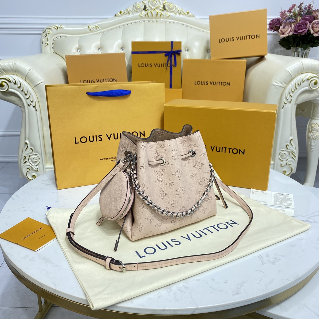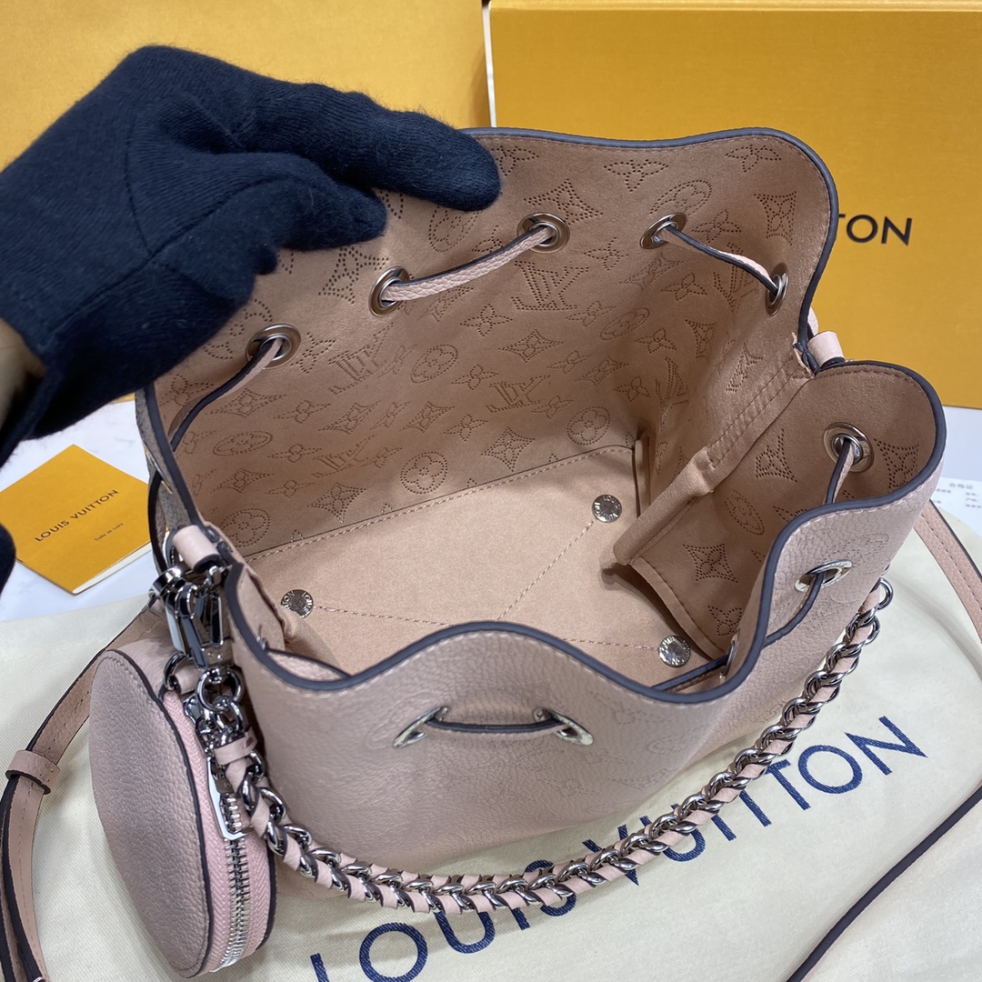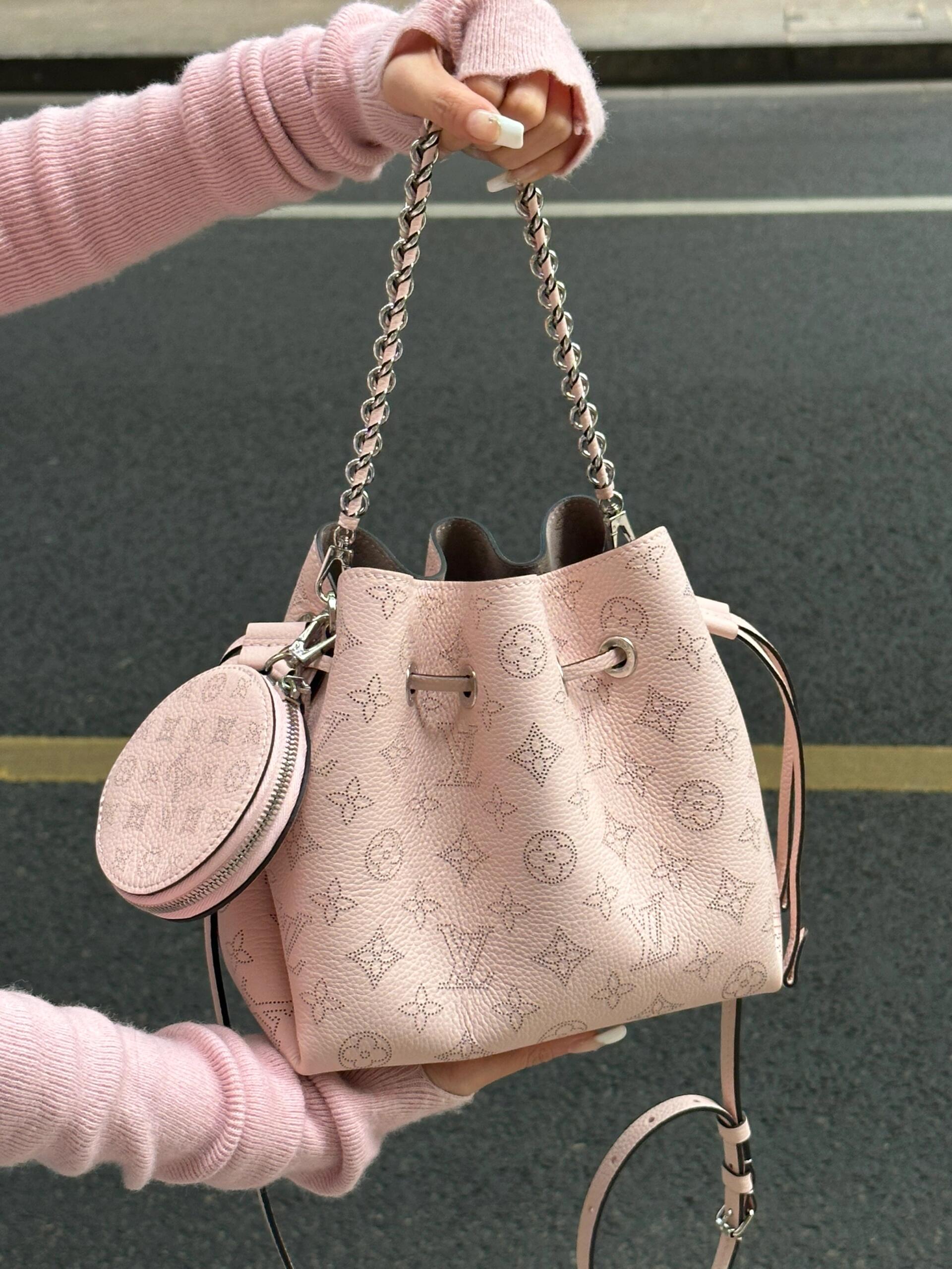BELLA 手袋 Bella 水桶包采用 Monogram 镂花穿孔小牛皮塑造小巧构型,再令相同图案以袖珍比例栖身圆形零钱包,洋溢摩登风尚。