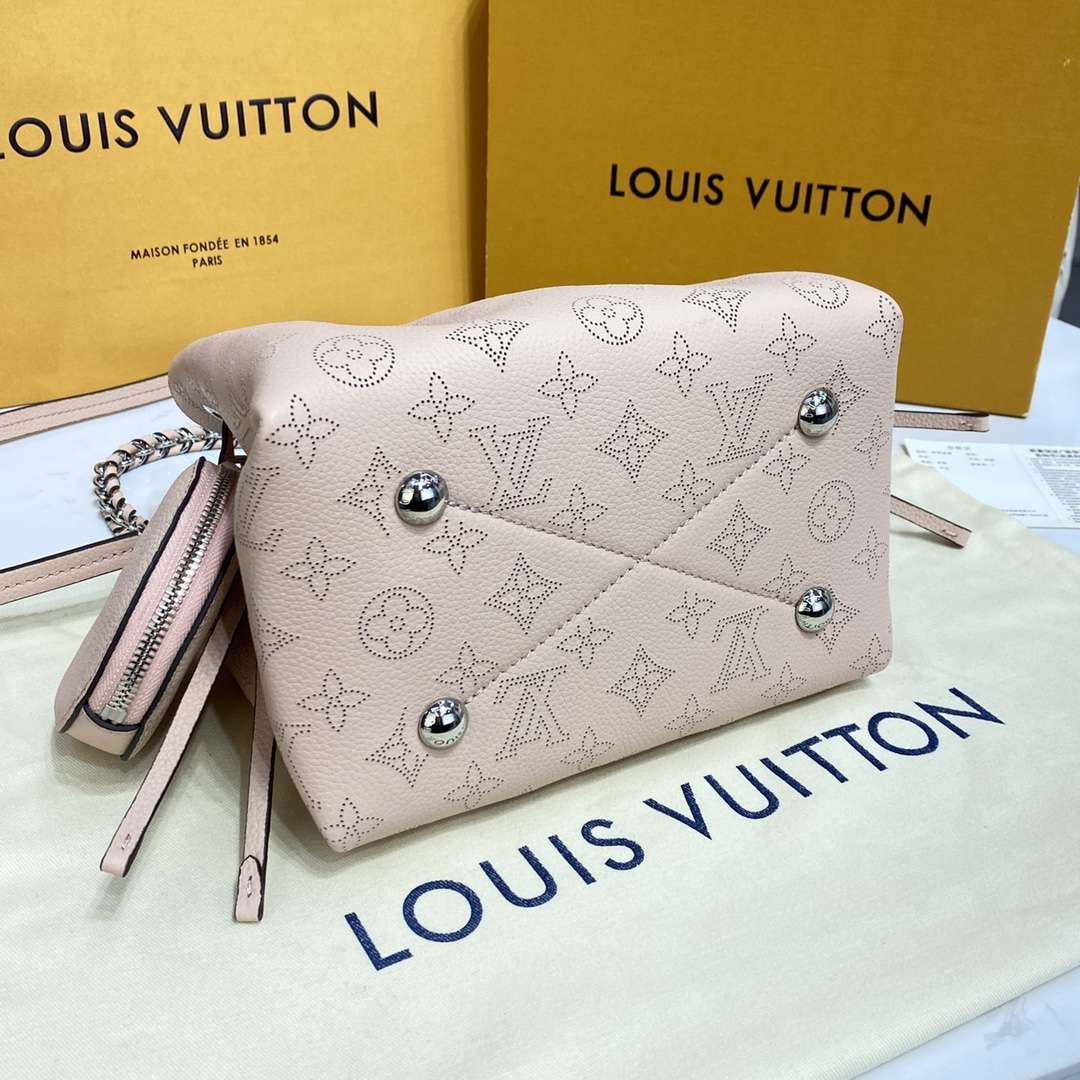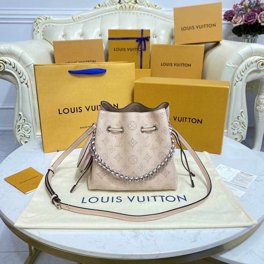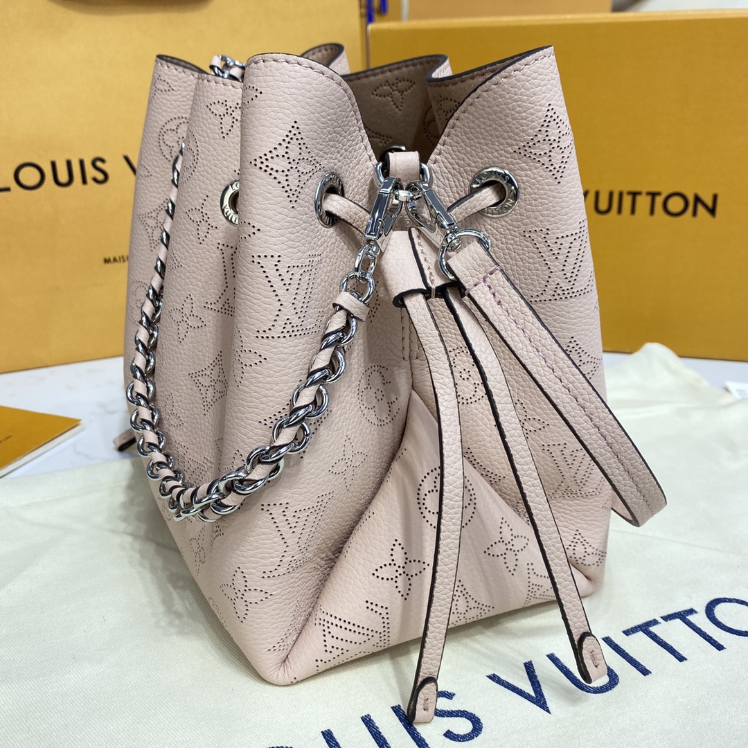 BELLA 手袋 Bella 水桶包采用 Monogram 镂花穿孔小牛皮塑造小巧构型,再令相同图案以袖珍比例栖身圆形零钱包,洋溢摩登风尚。