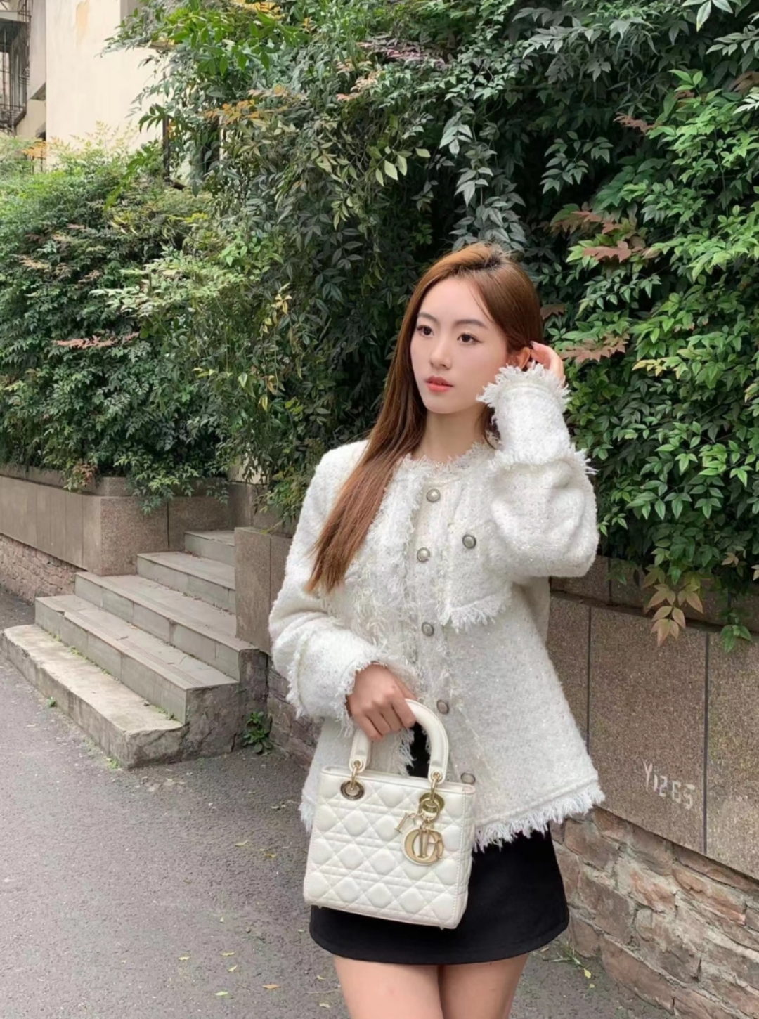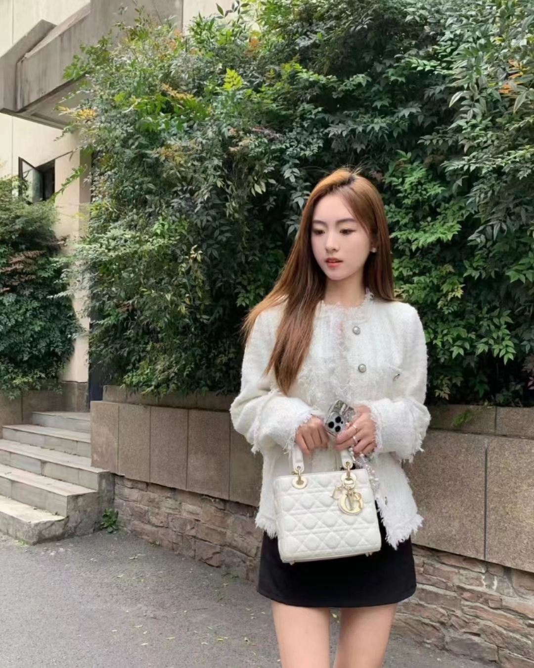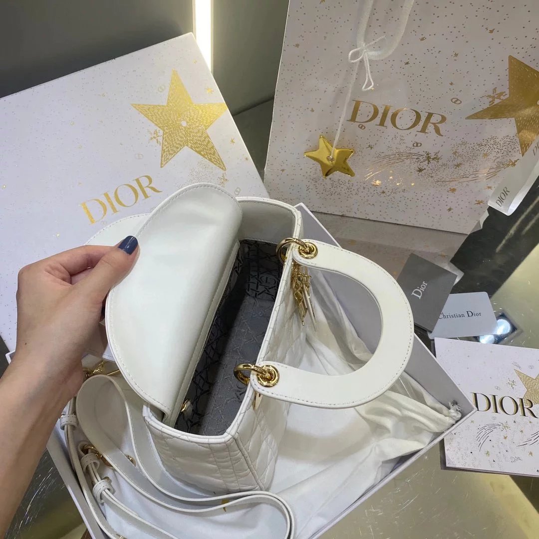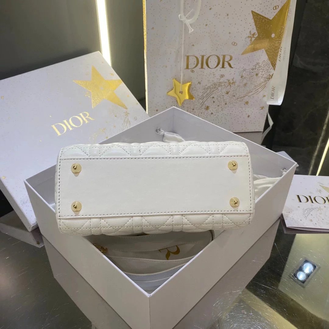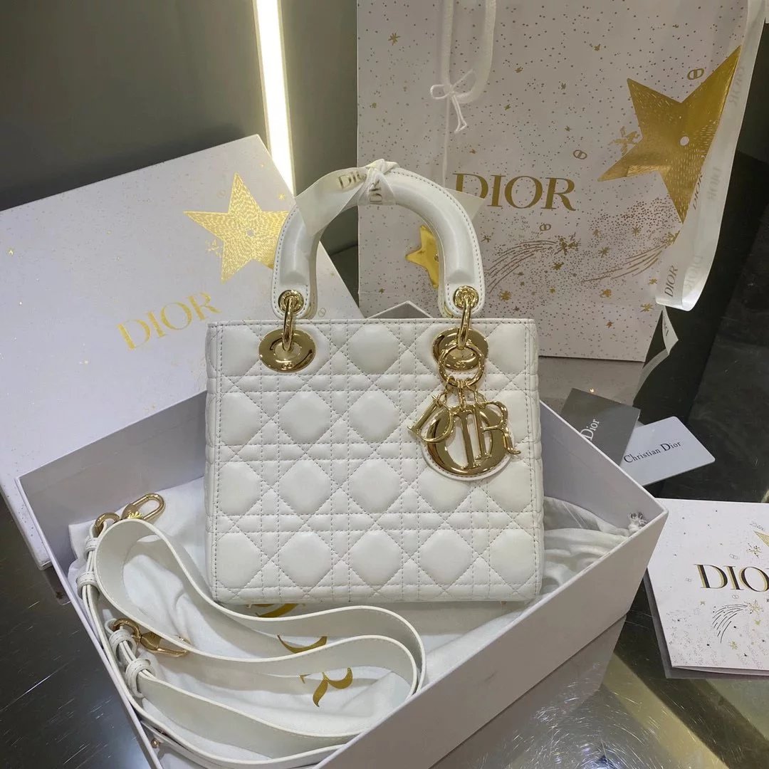 升级版Lady Dio.r My ABC20cm 这款手袋集中体现了Dio.r 对典雅和美丽的深刻洞见。采用小羊皮革精心制作,以标志性的藤格纹针脚打造绗缝细节,高雅经典的设计经久不衰。饰以同色调珐琅标志性“D.I.O.R.”吊饰,为精美的轮廓增添一分灵动。肩带多可添加六枚字母或符号徽章,满足个性化的需求。 宽肩带可搭配 6 枚徽章装饰 ,可打造个性造型。 内部拉链口袋和贴袋 可手提、肩背或斜挎 尺寸:20 厘米 x 16.5 厘米 x 8 厘米。配全套包装