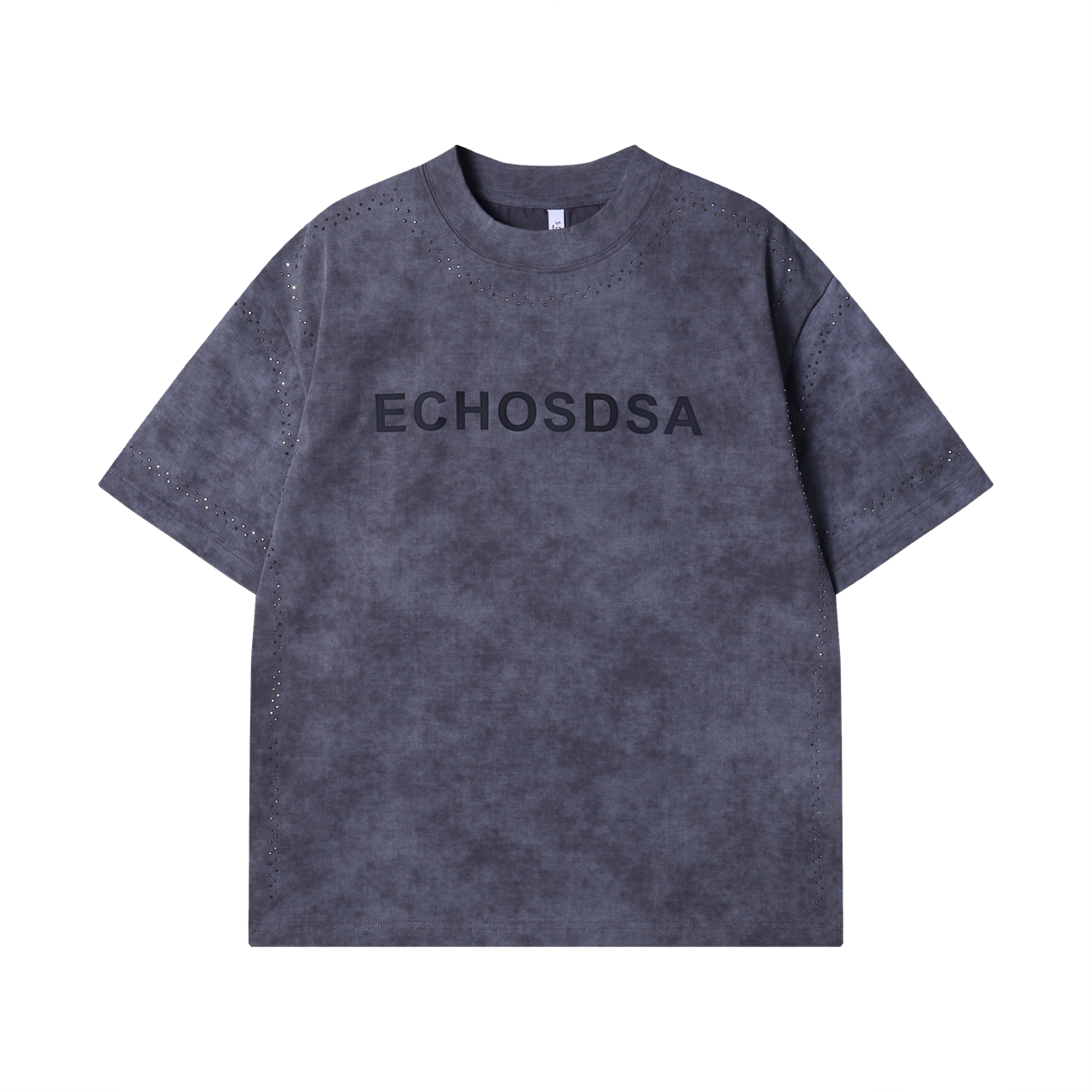 T2919夏季高级感新款潮牌扎染烫钻印花字母圆短袖T恤宽松百搭情侣上衣