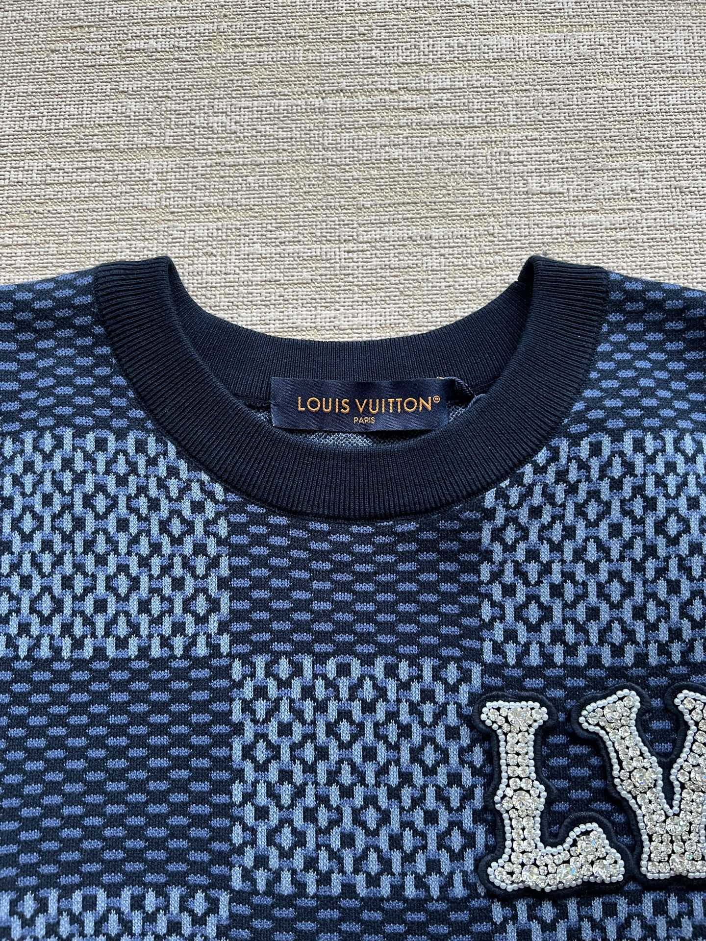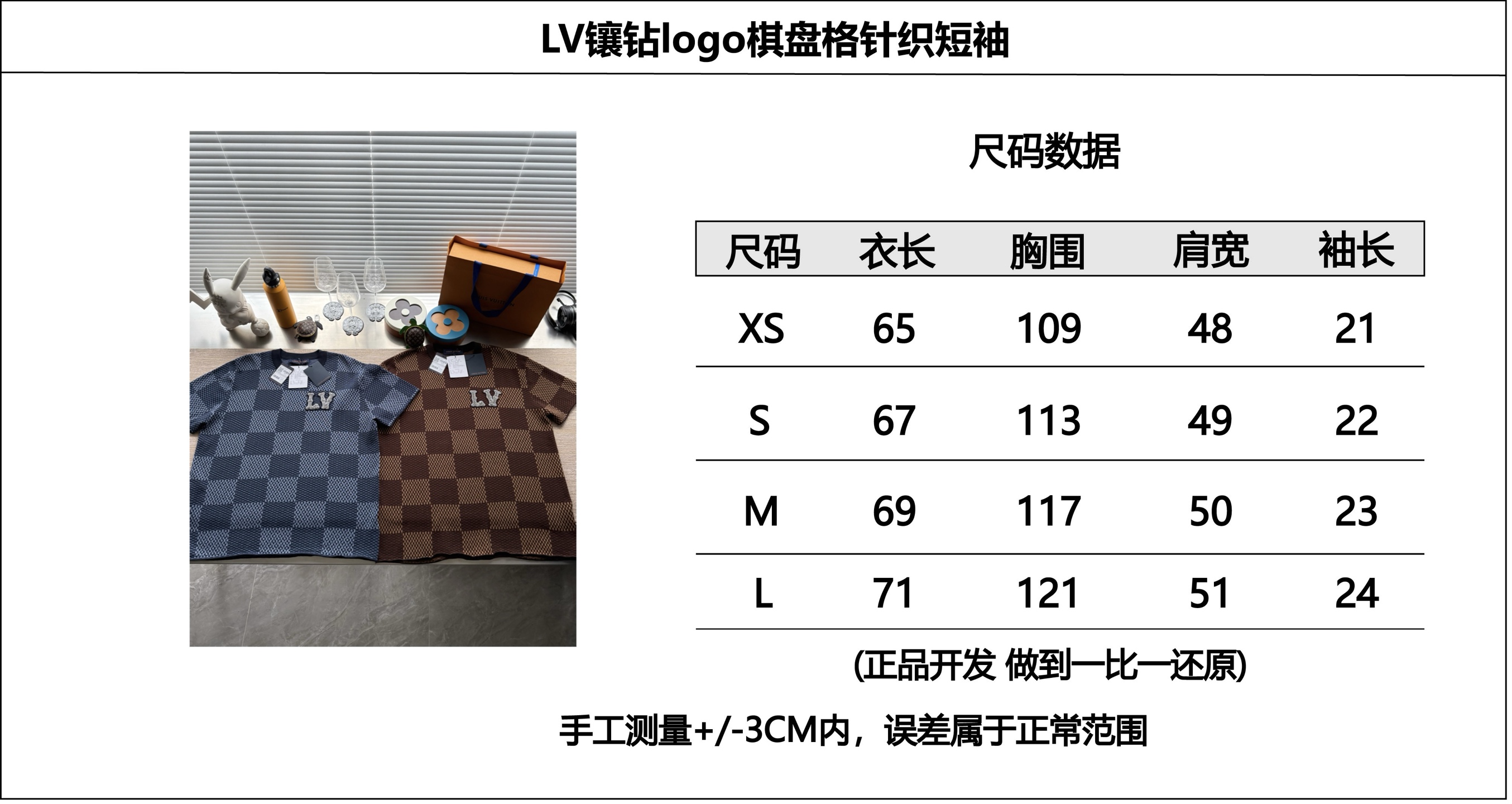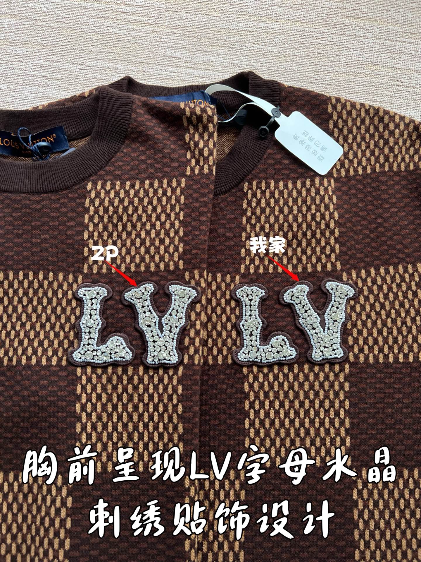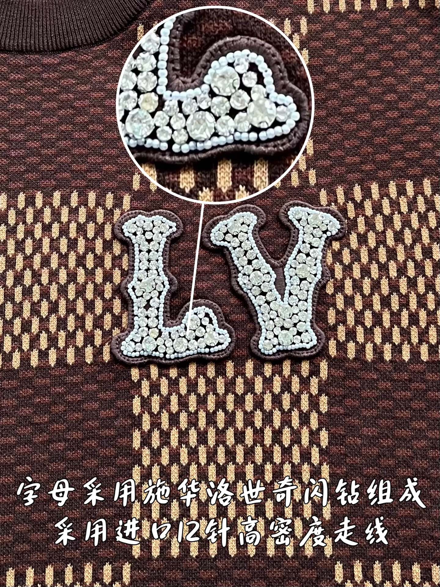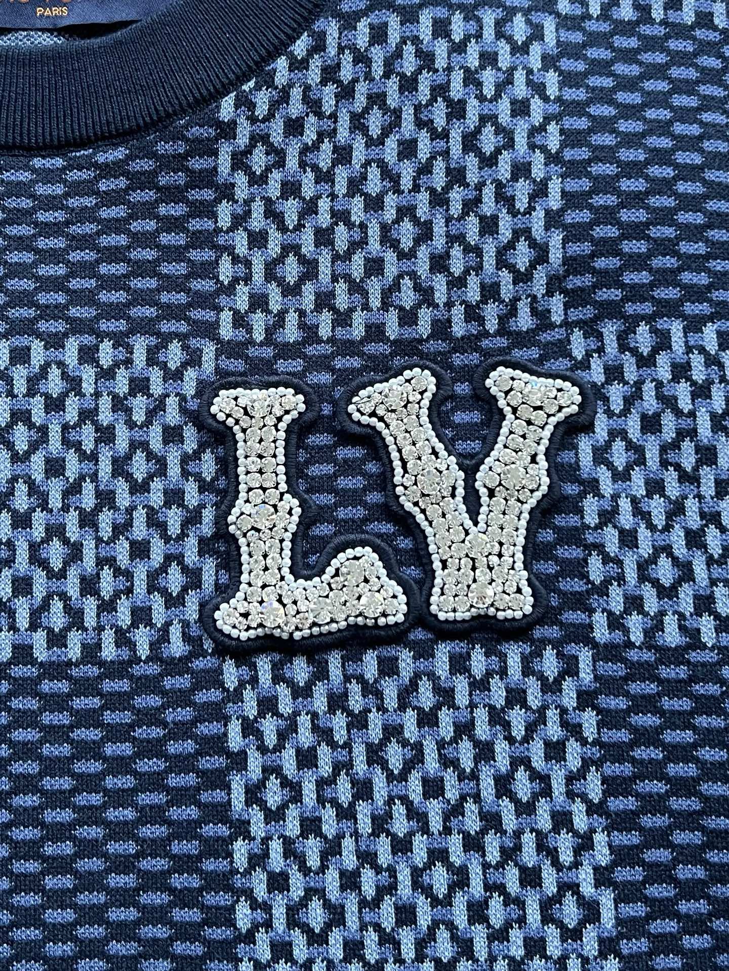 Louis Vuitton25ss镶钻logo棋盘格针织短袖‼️整件衣服11400购买ZP拆解打造,采用定制棉质针织面料,做到100%全棉进口纱线,胸前刺绣LV字母水晶刺绣贴饰,定织标志性罗纹领口,超紧密度局部编织,真正做到1:1copy 码数:XS S M L