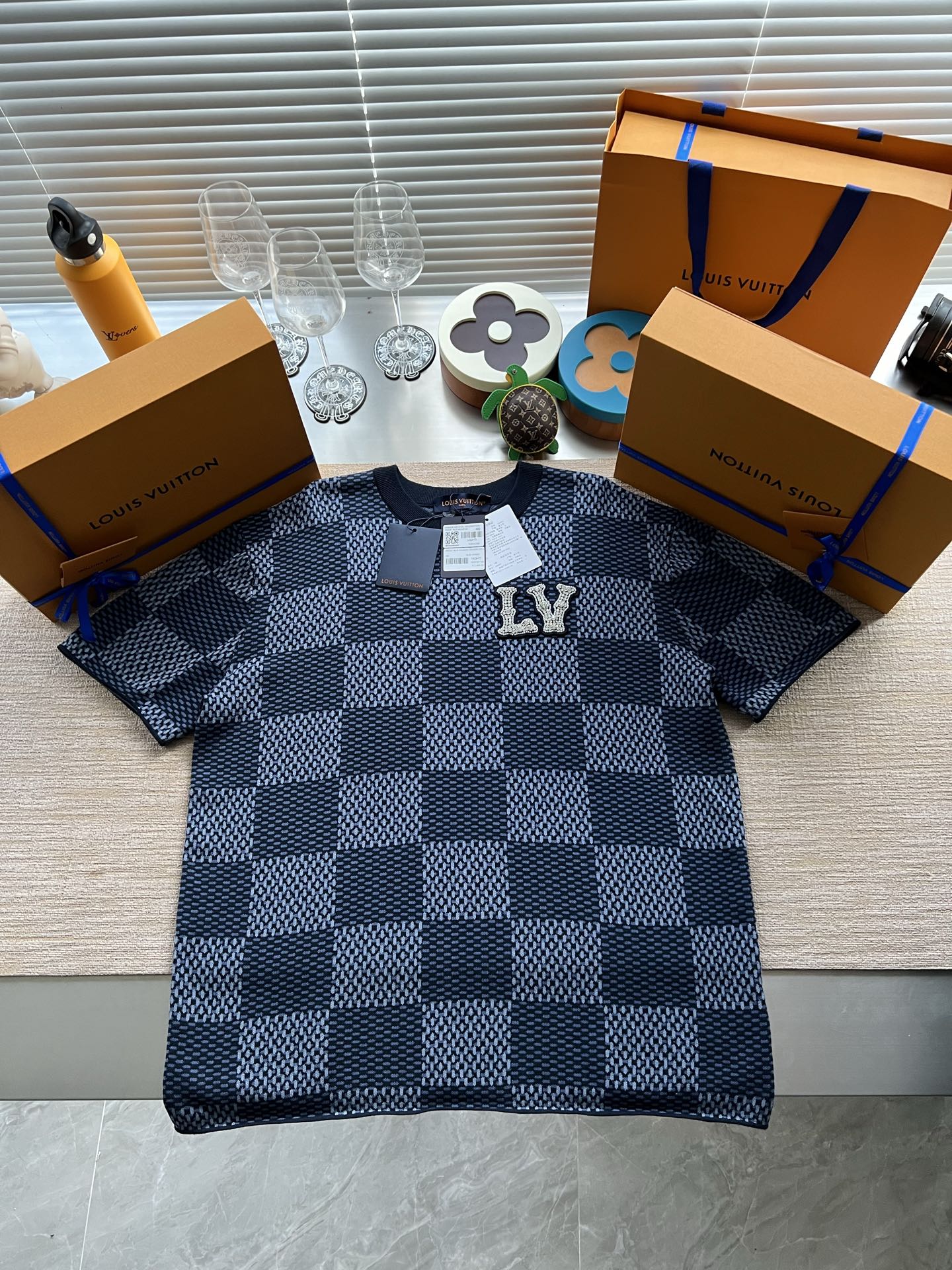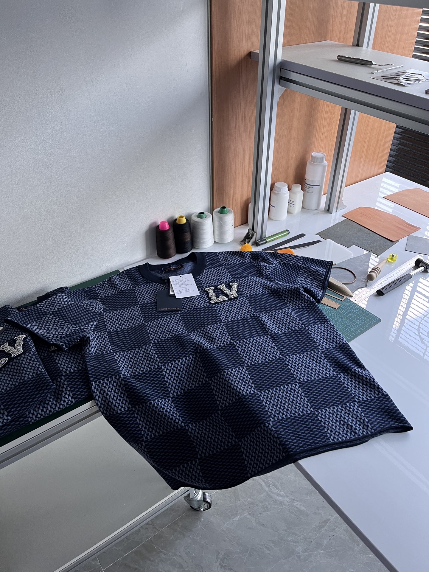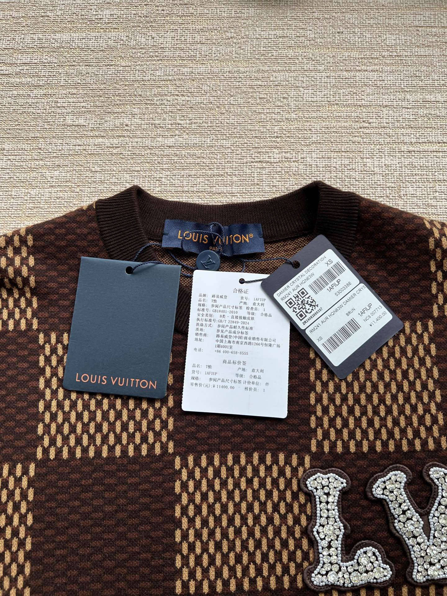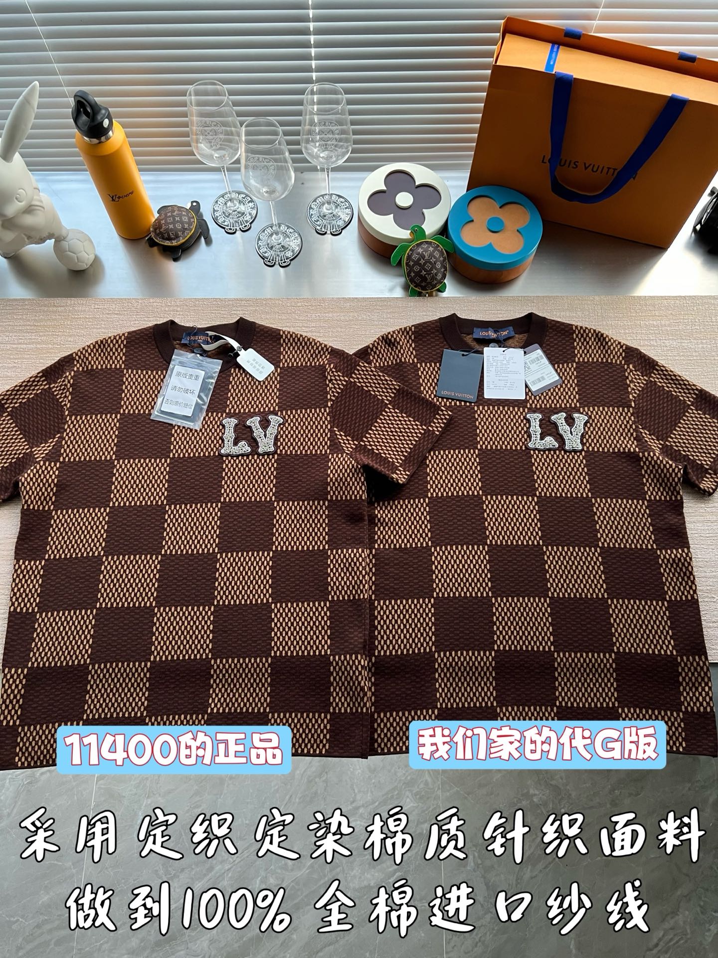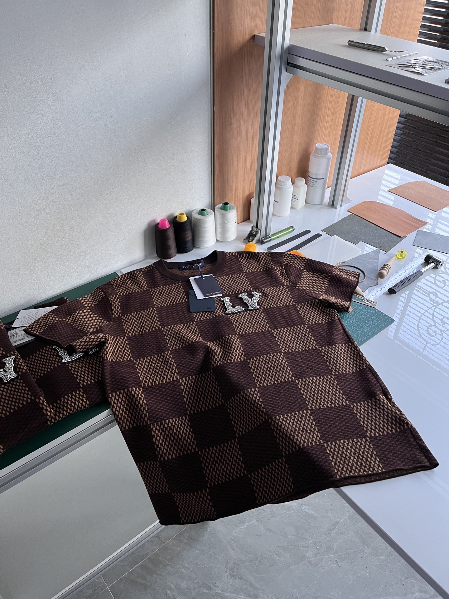 Louis Vuitton25ss镶钻logo棋盘格针织短袖‼️整件衣服11400购买ZP拆解打造,采用定制棉质针织面料,做到100%全棉进口纱线,胸前刺绣LV字母水晶刺绣贴饰,定织标志性罗纹领口,超紧密度局部编织,真正做到1:1copy 码数:XS S M L