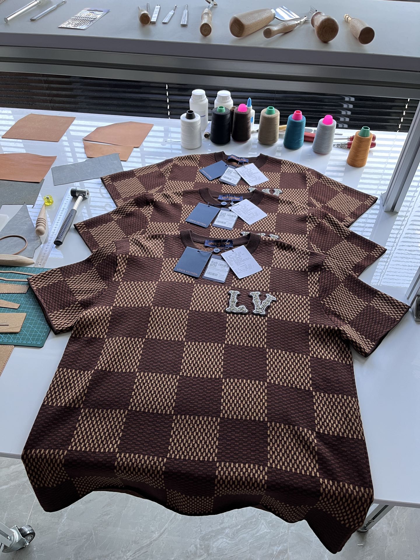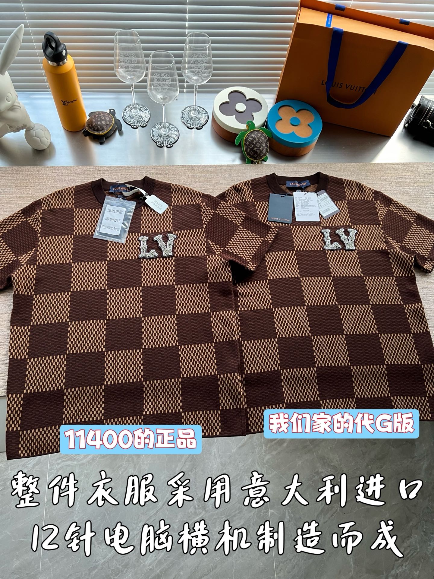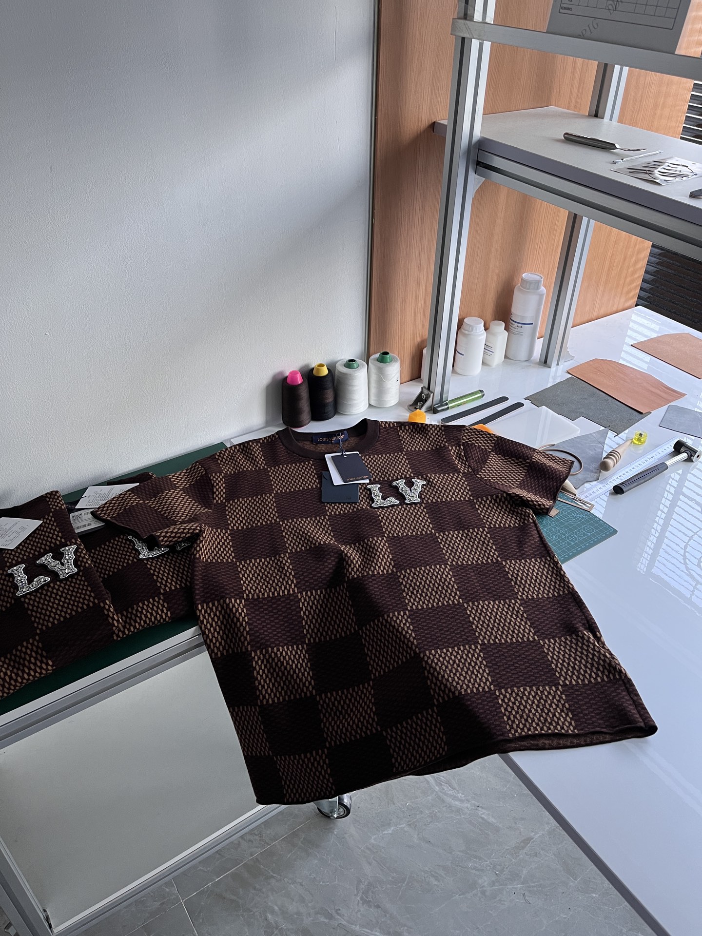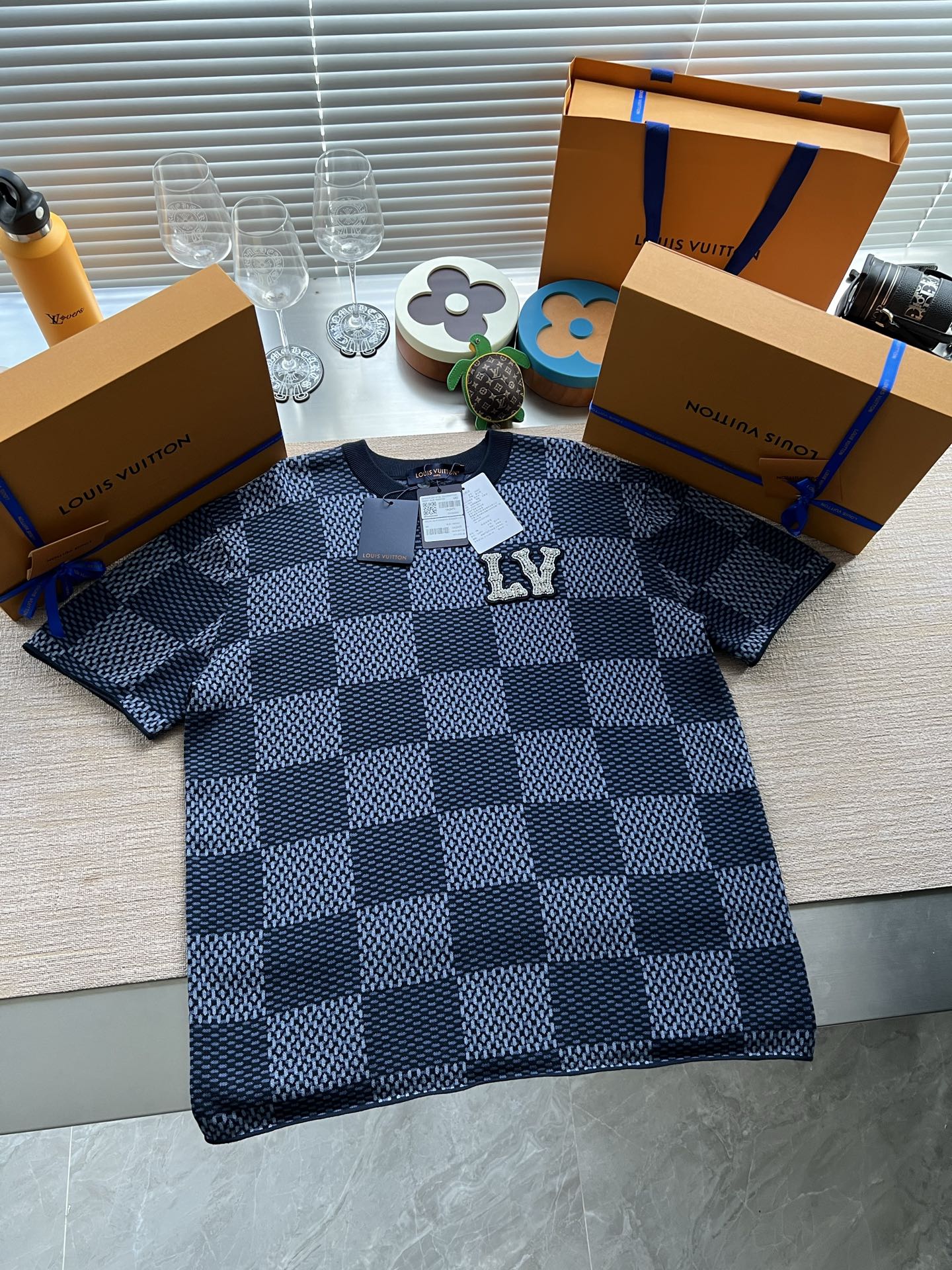 Louis Vuitton25ss镶钻logo棋盘格针织短袖‼️整件衣服11400购买ZP拆解打造,采用定制棉质针织面料,做到100%全棉进口纱线,胸前刺绣LV字母水晶刺绣贴饰,定织标志性罗纹领口,超紧密度局部编织,真正做到1:1copy 码数:XS S M L