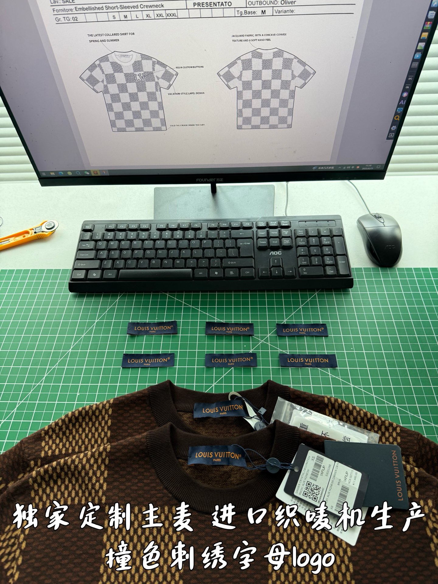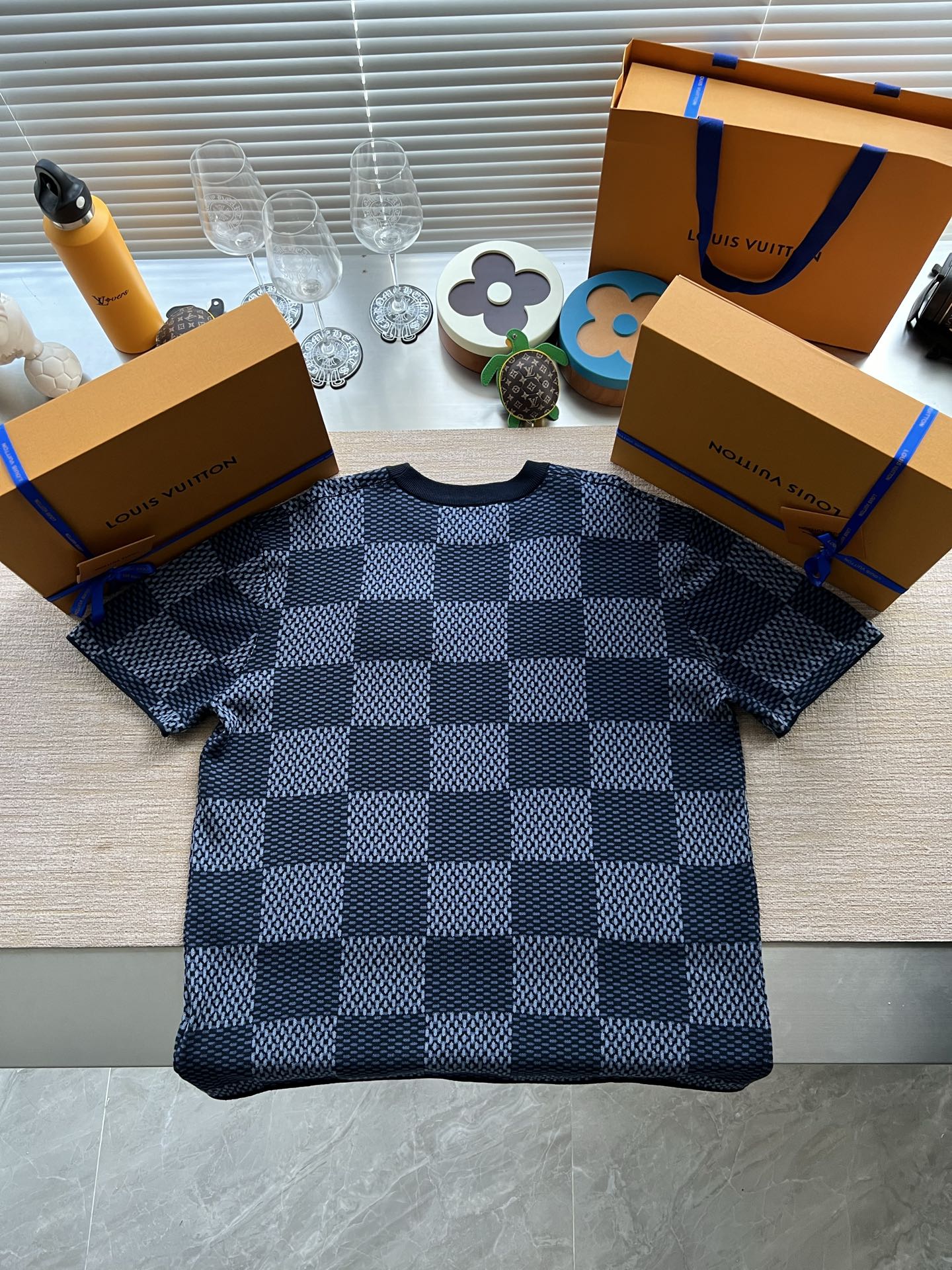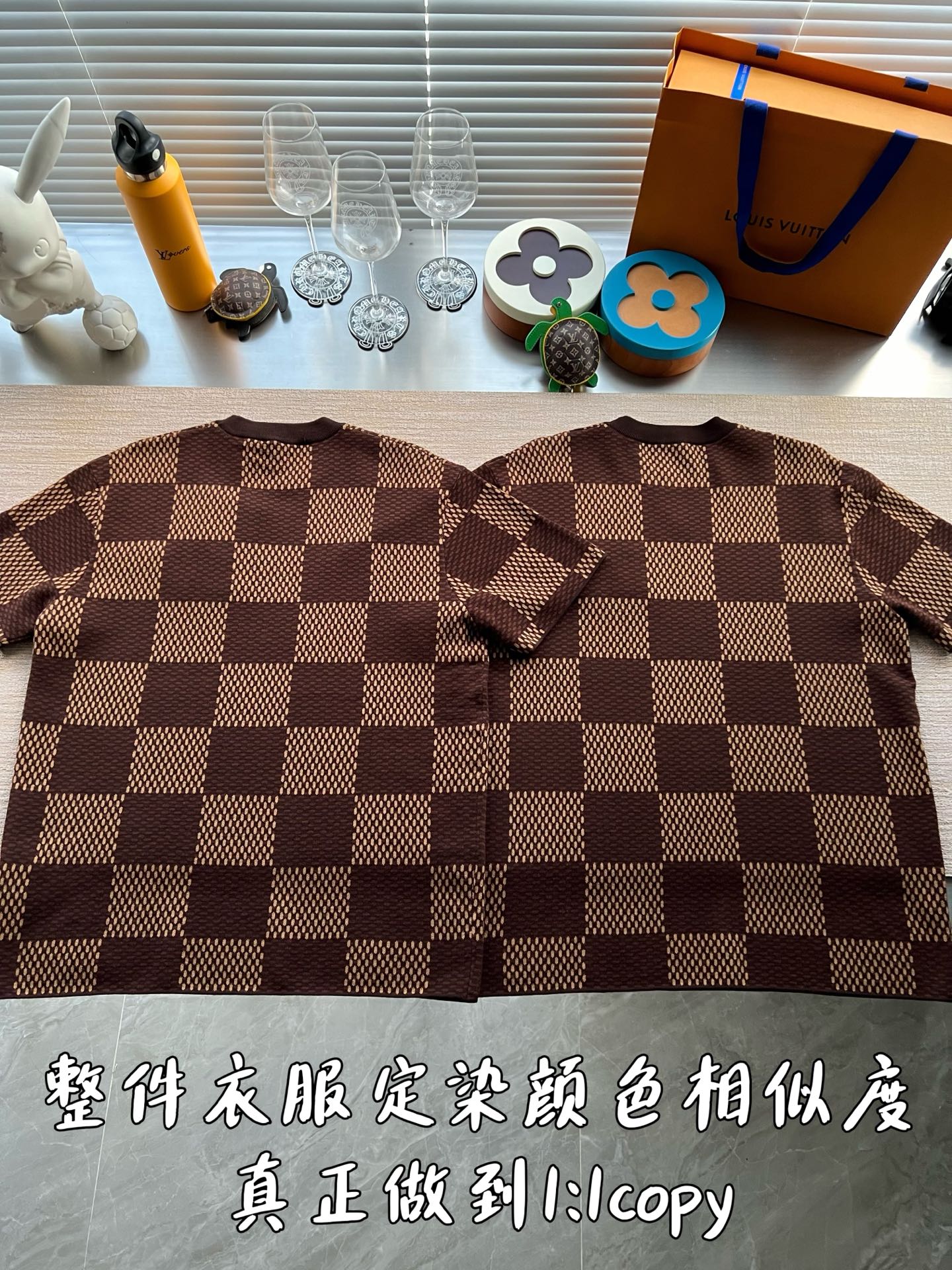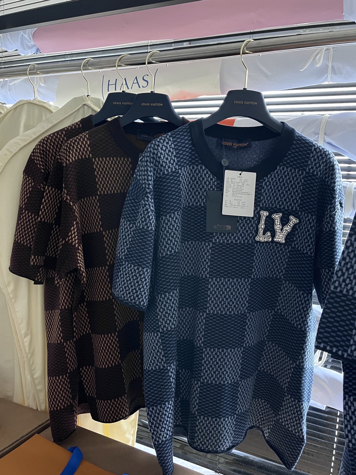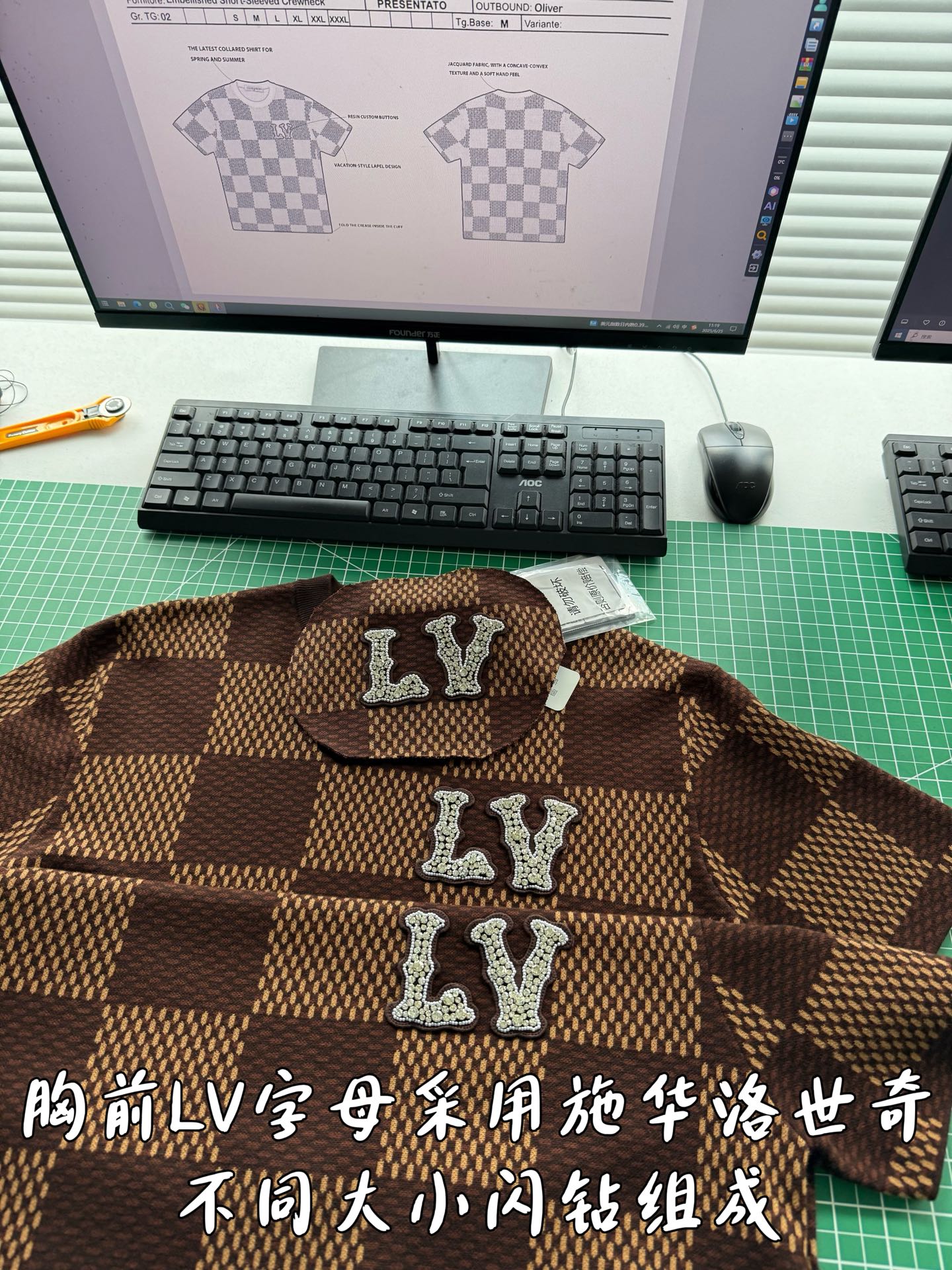 Louis Vuitton25ss镶钻logo棋盘格针织短袖‼️整件衣服11400购买ZP拆解打造,采用定制棉质针织面料,做到100%全棉进口纱线,胸前刺绣LV字母水晶刺绣贴饰,定织标志性罗纹领口,超紧密度局部编织,真正做到1:1copy 码数:XS S M L