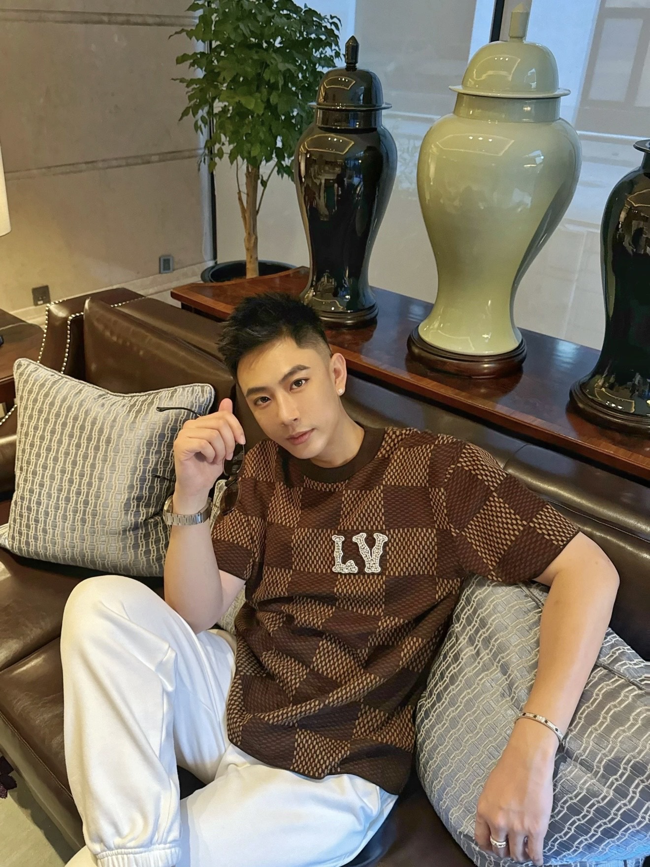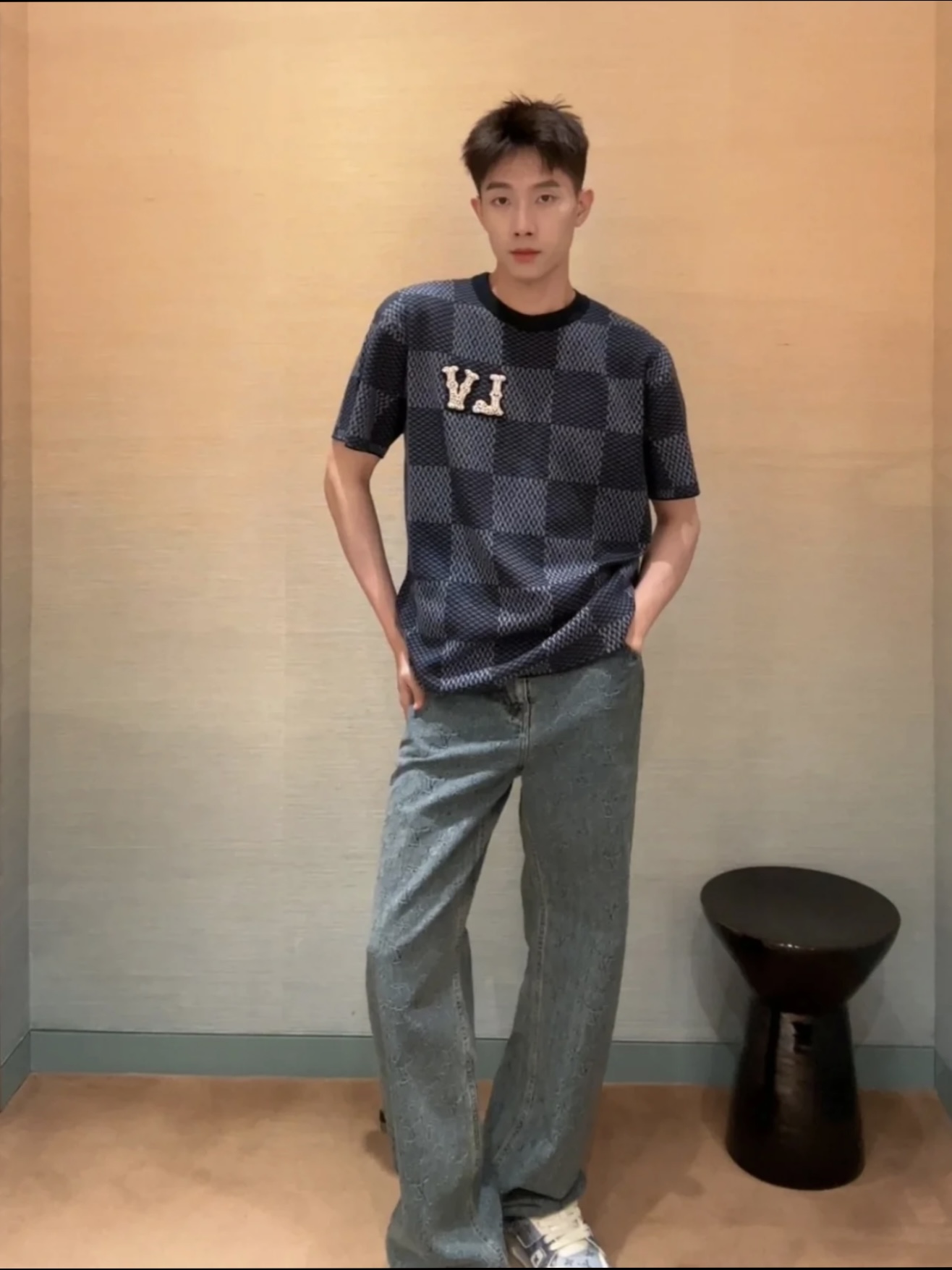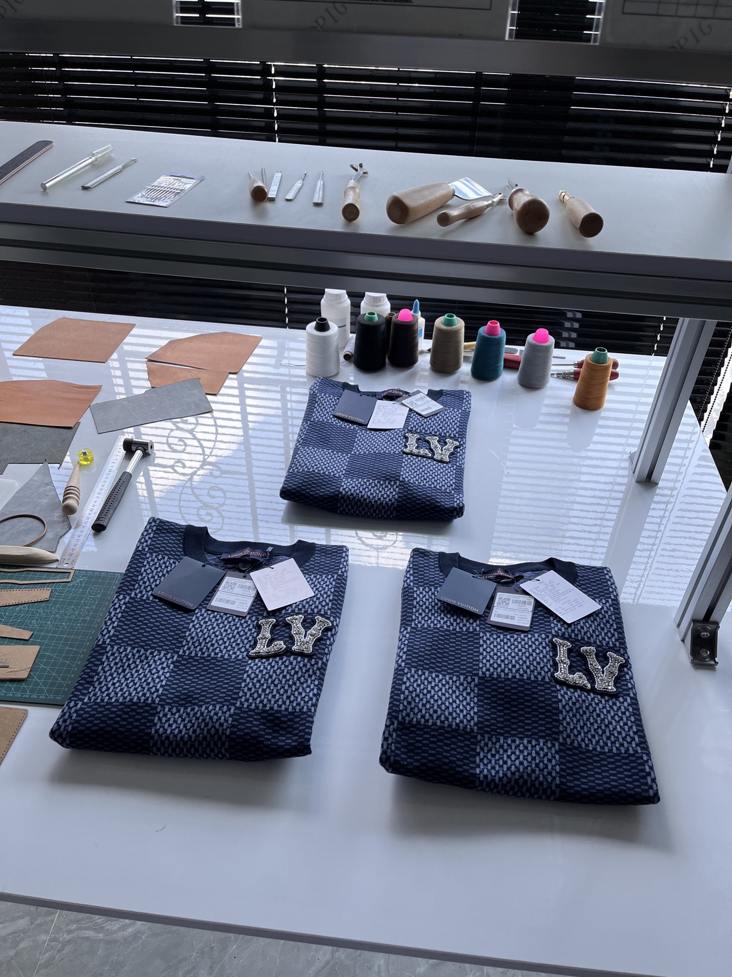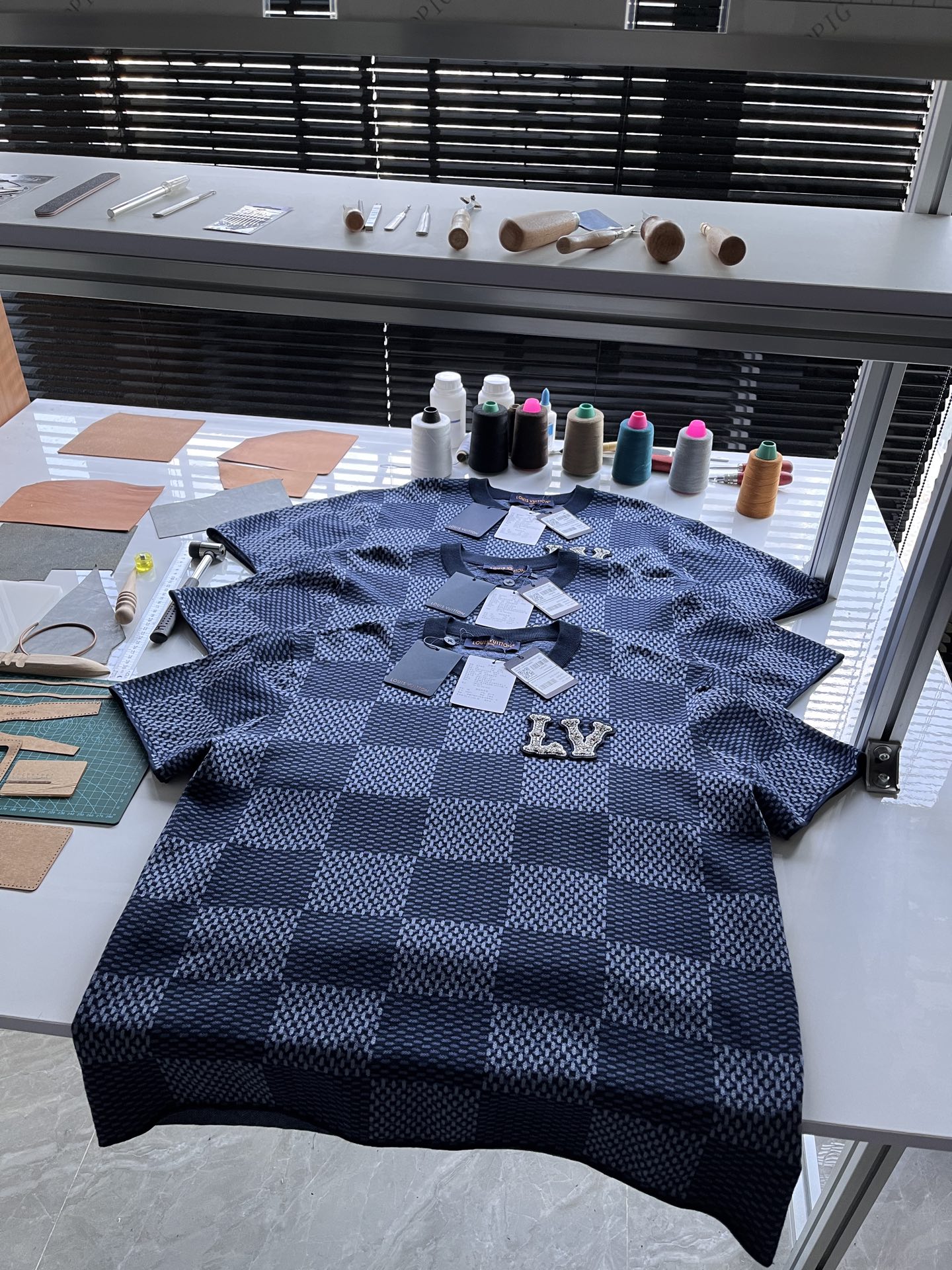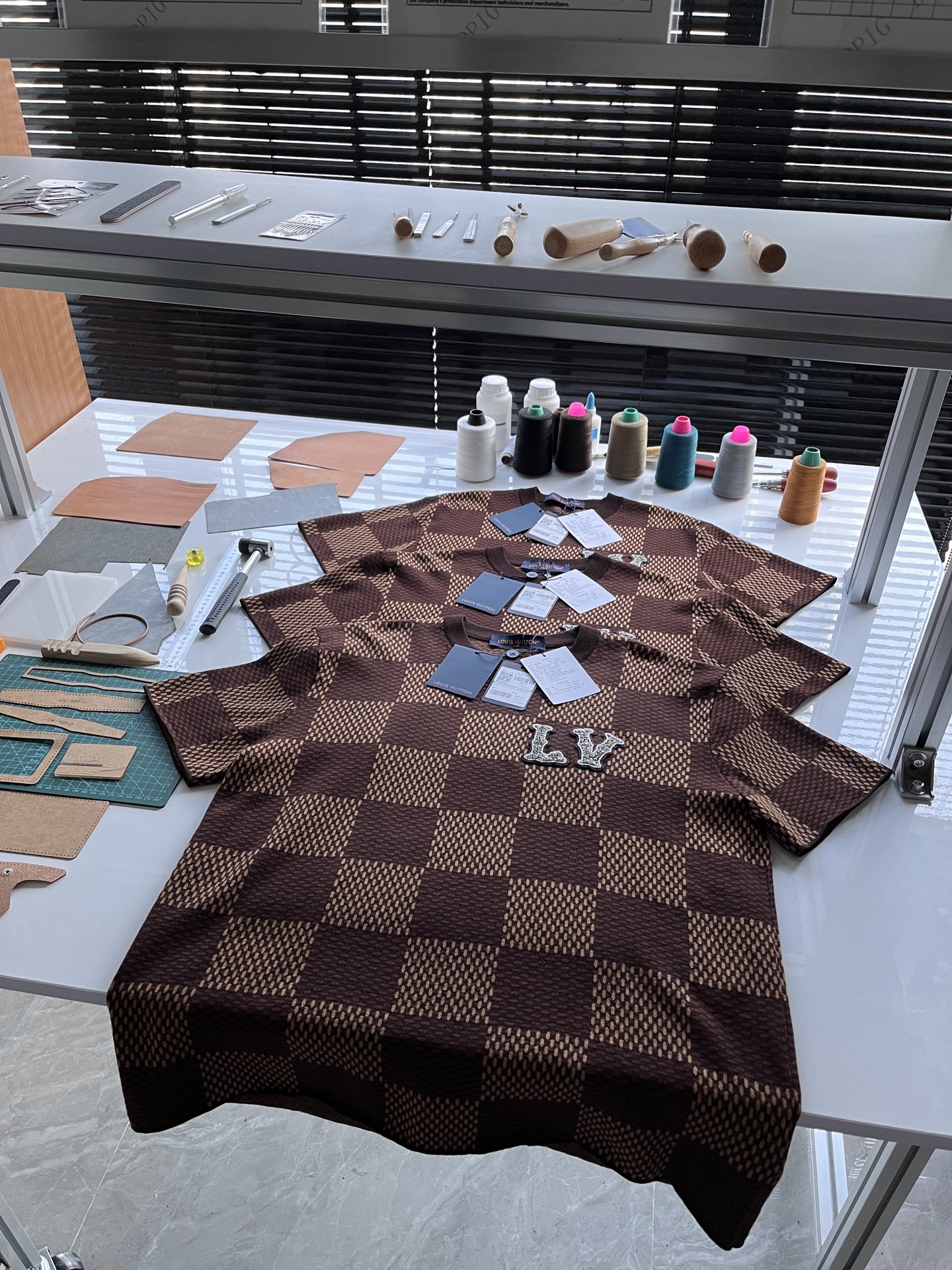 Louis Vuitton25ss镶钻logo棋盘格针织短袖‼️整件衣服11400购买ZP拆解打造,采用定制棉质针织面料,做到100%全棉进口纱线,胸前刺绣LV字母水晶刺绣贴饰,定织标志性罗纹领口,超紧密度局部编织,真正做到1:1copy 码数:XS S M L