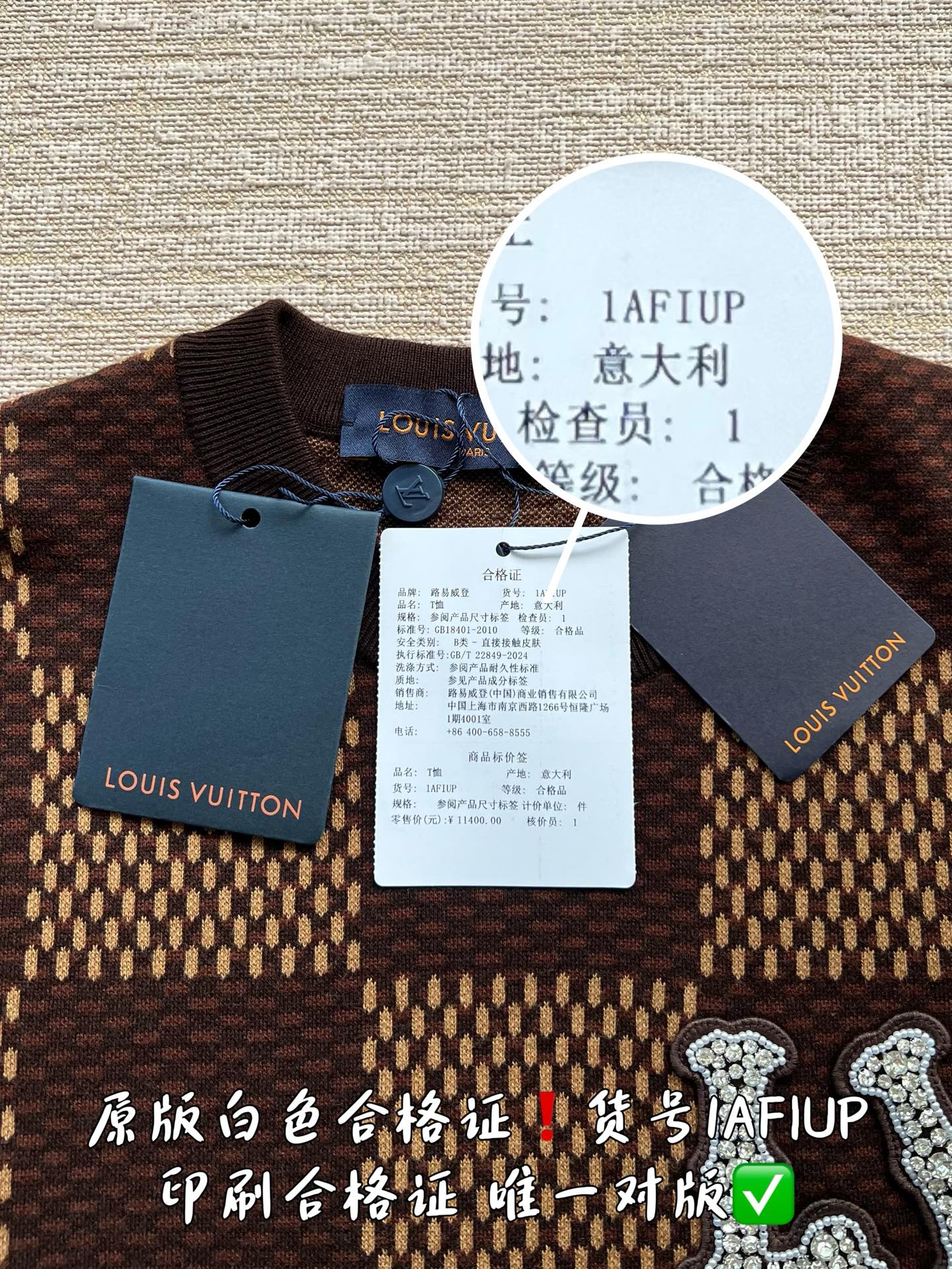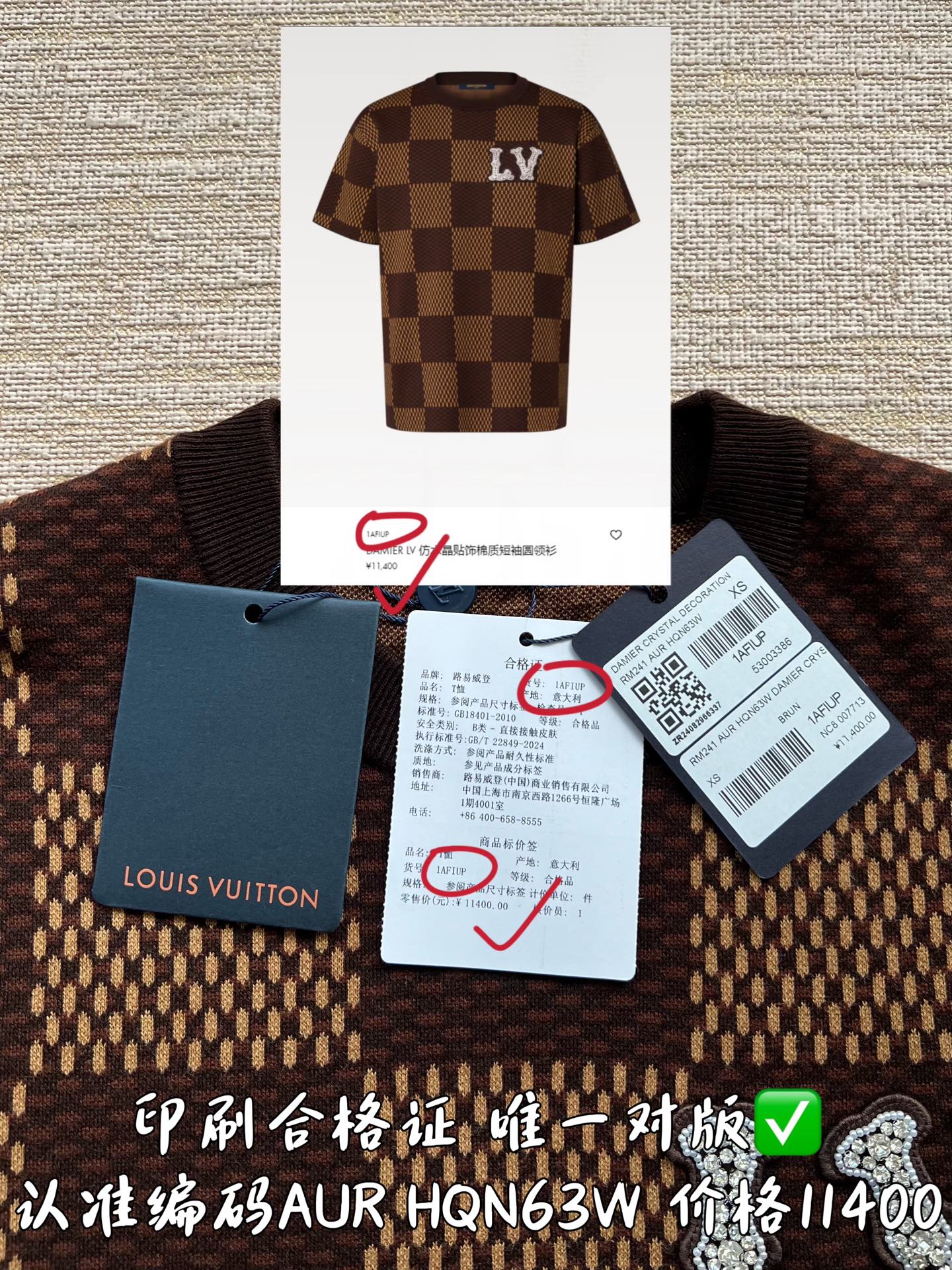 印刷合格证货号1AFIUP 唯一对版✅