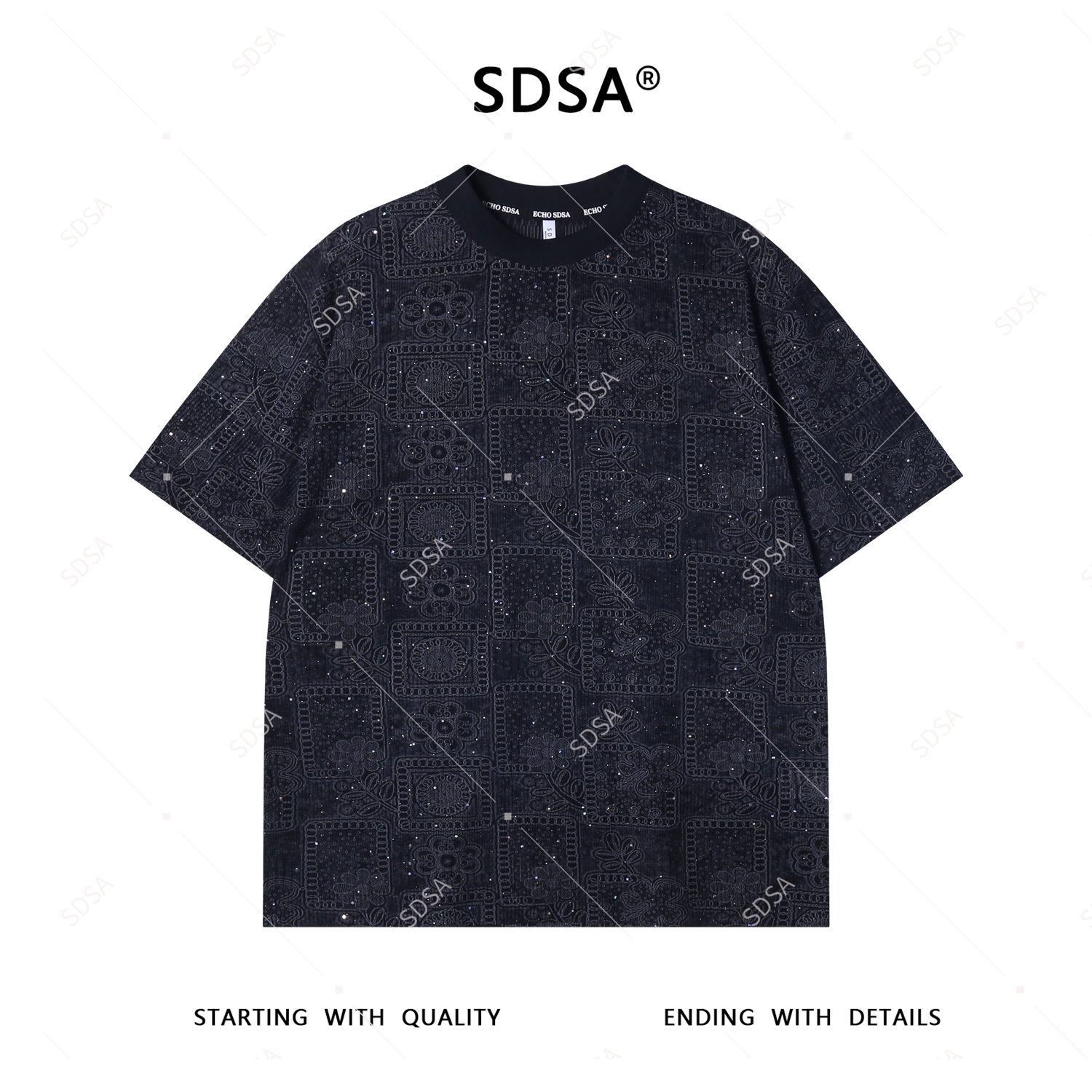 T3894夏季高级感新款男士美式洒金多样花朵图案设计短袖T恤简约时尚潮