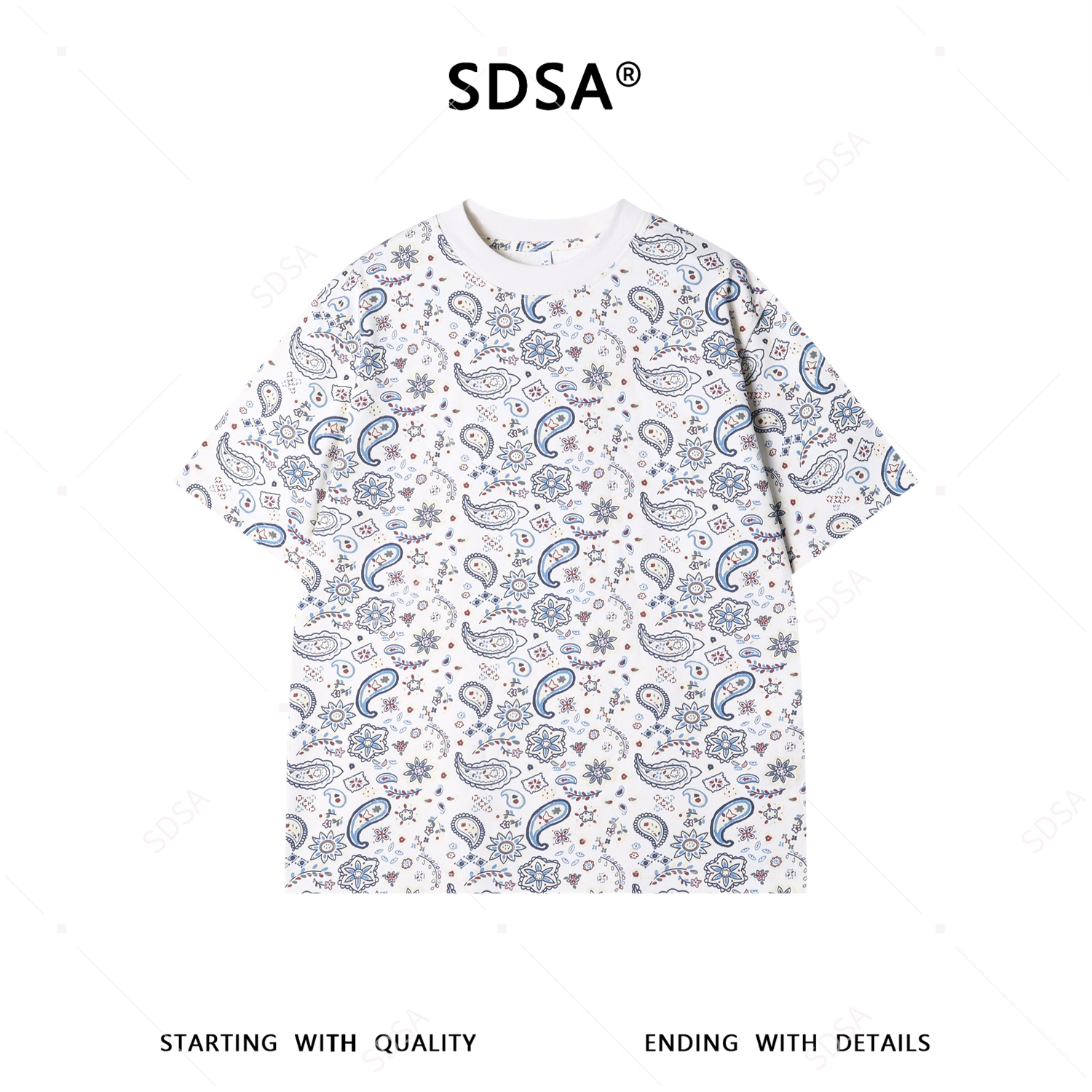 26T149SDSA男装2026新款高贵轻奢时尚简约满印腰果花卉圆领短袖T恤百搭