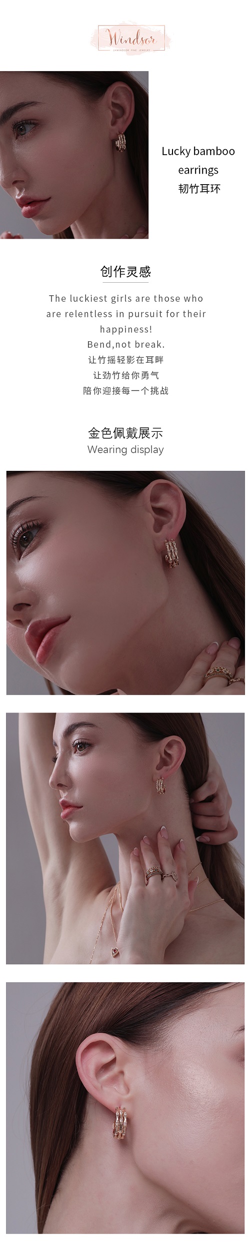 LHWINDSOR 小众竹节复古冷淡风多层设计耳钉戒指项链手链套装