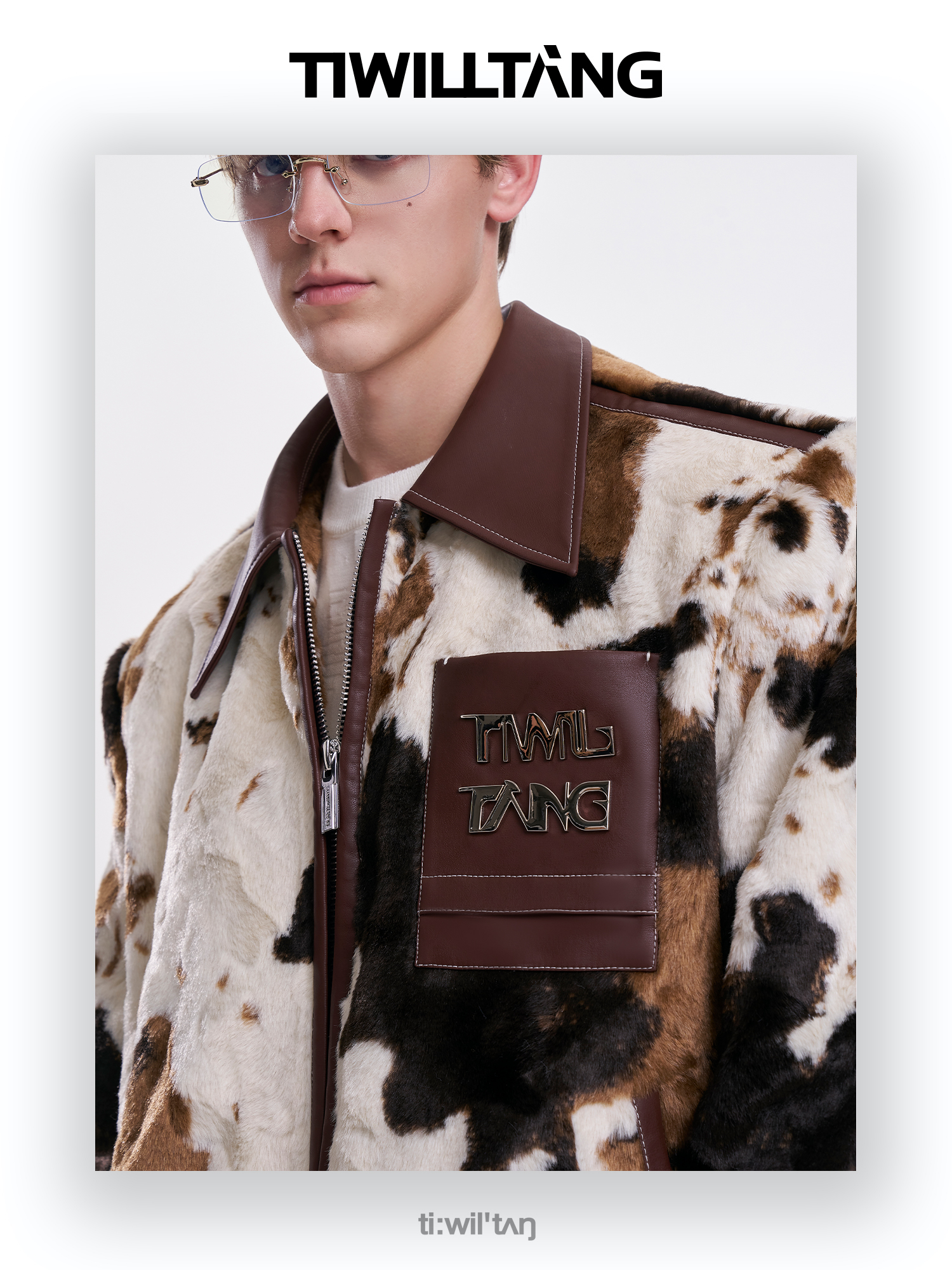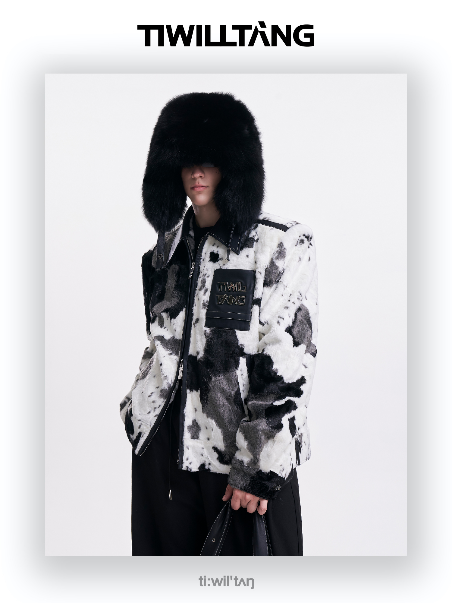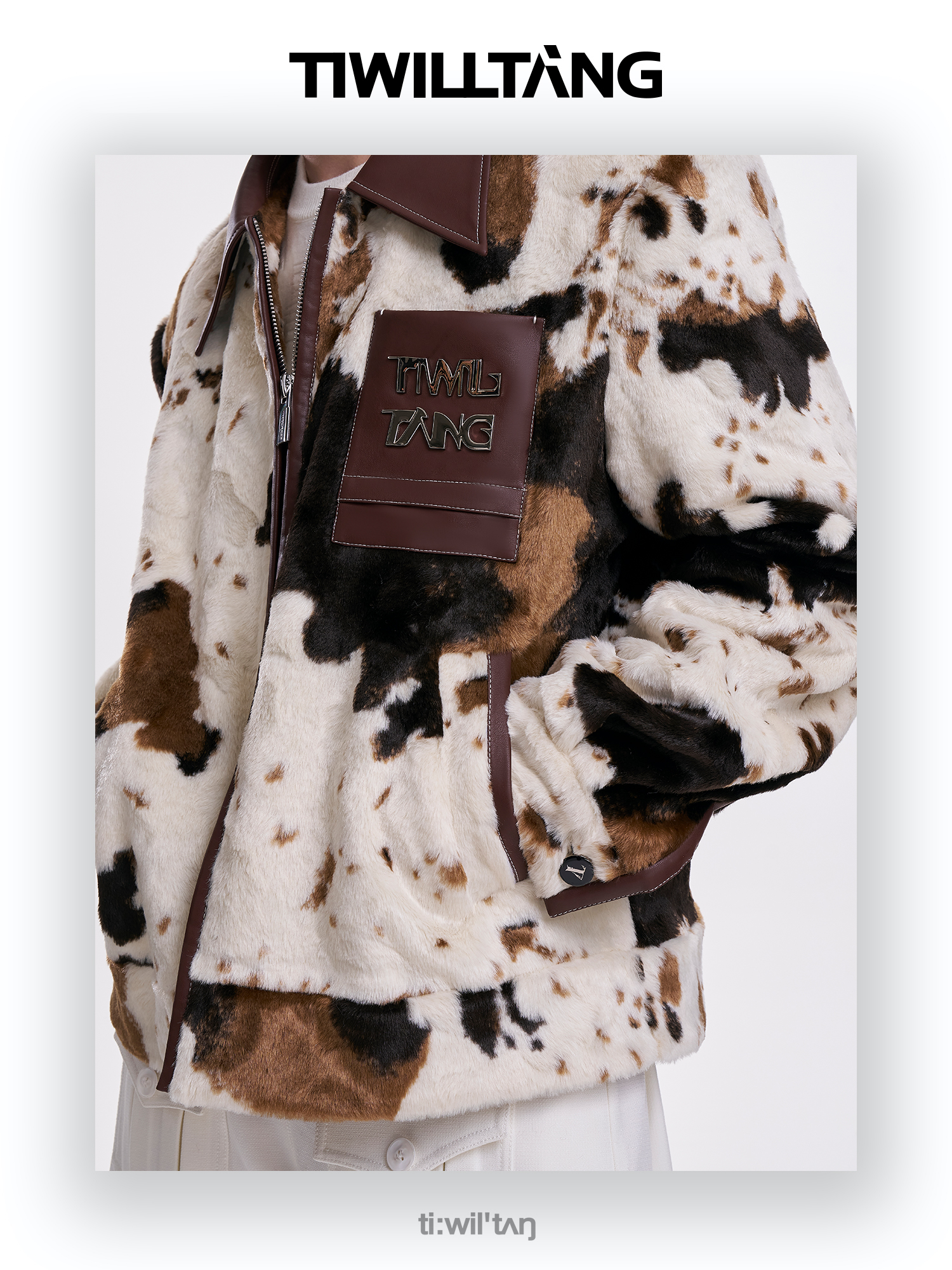 启世录TIWILLTANG"麂烬云衍"拼接秋冬翻领皮拼毛皮草夹克秋冬外套