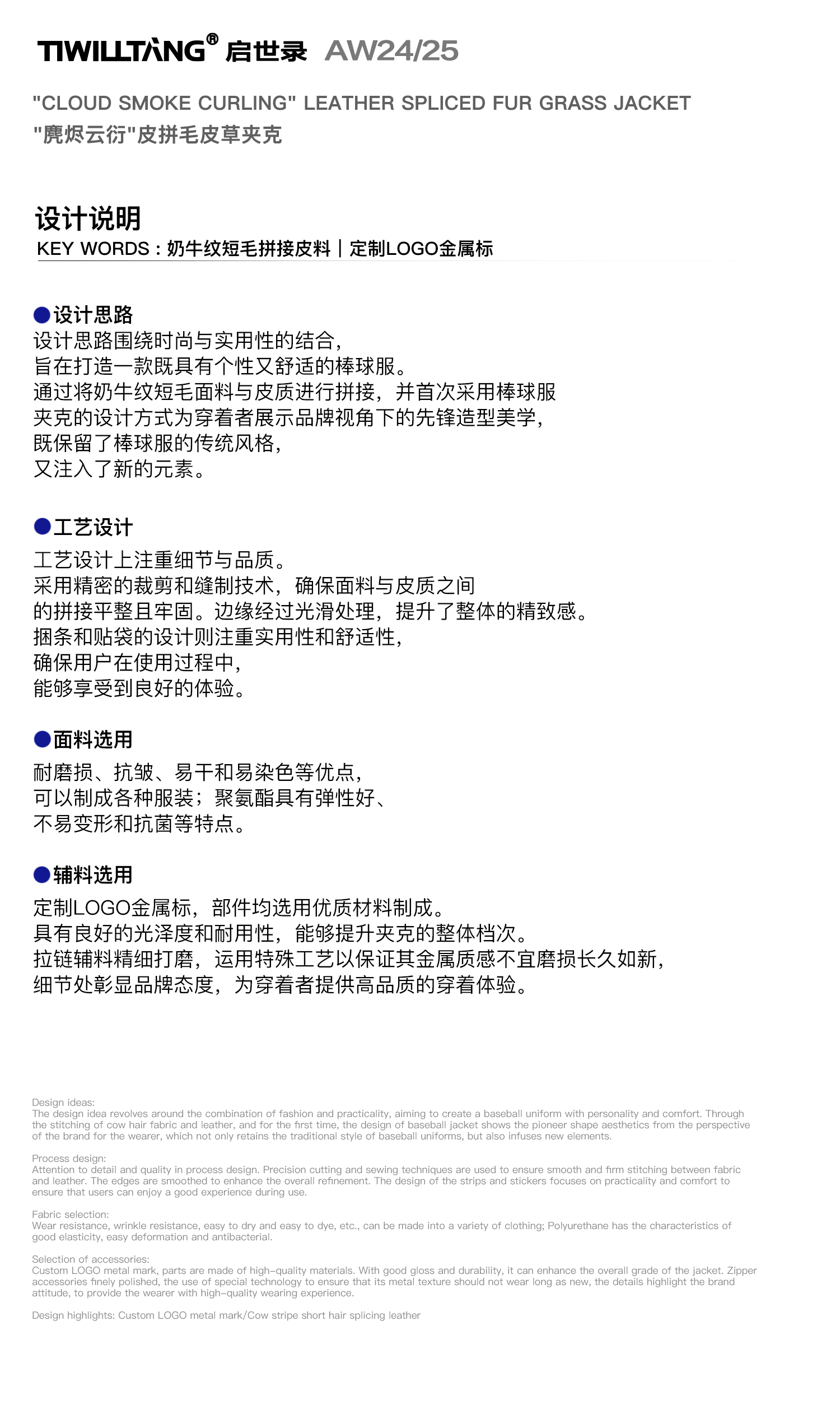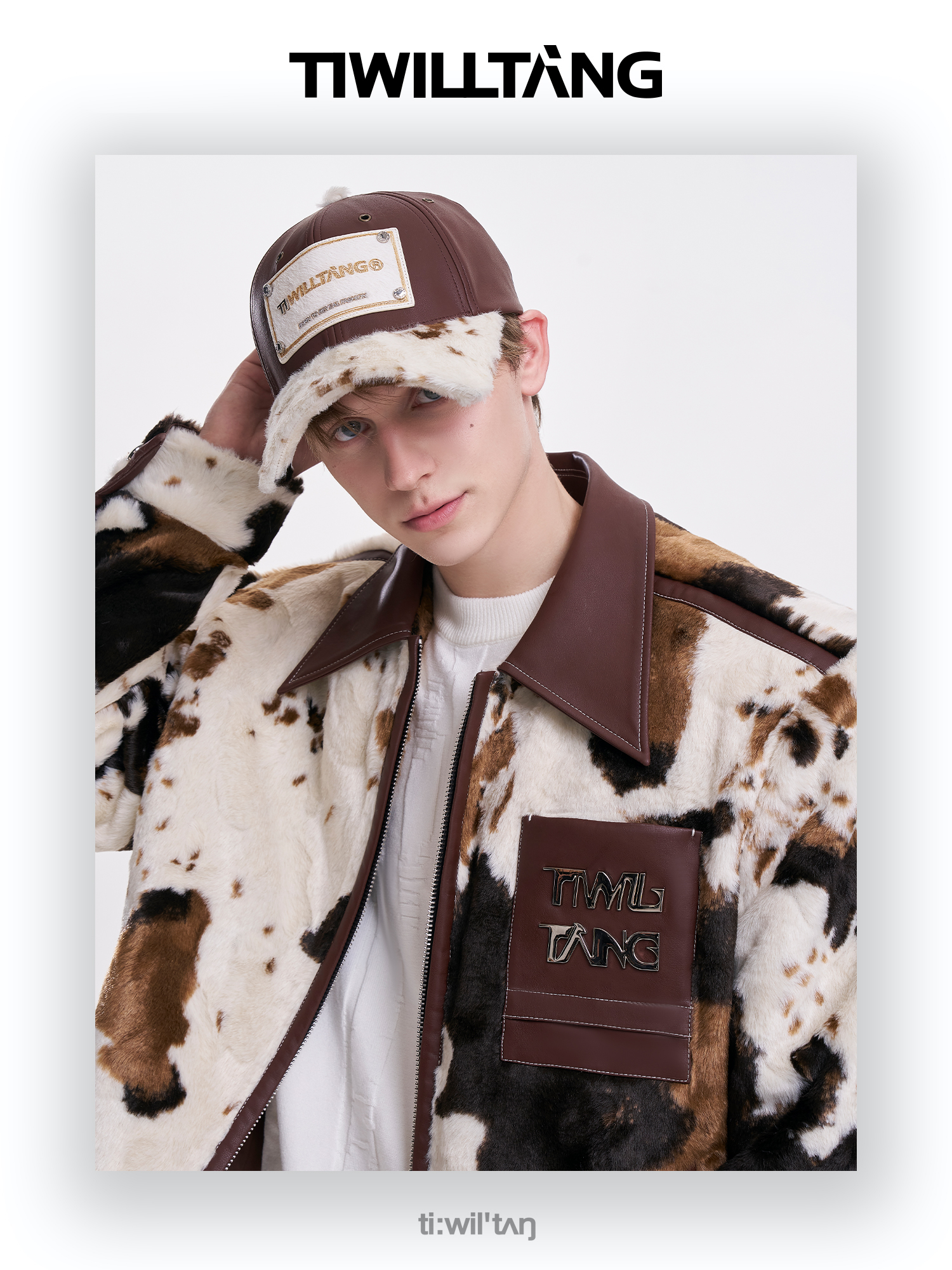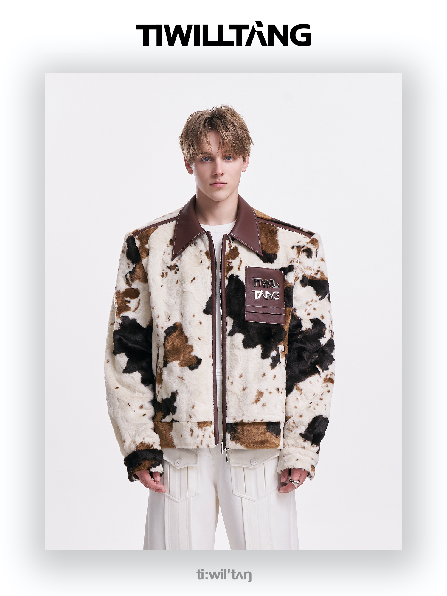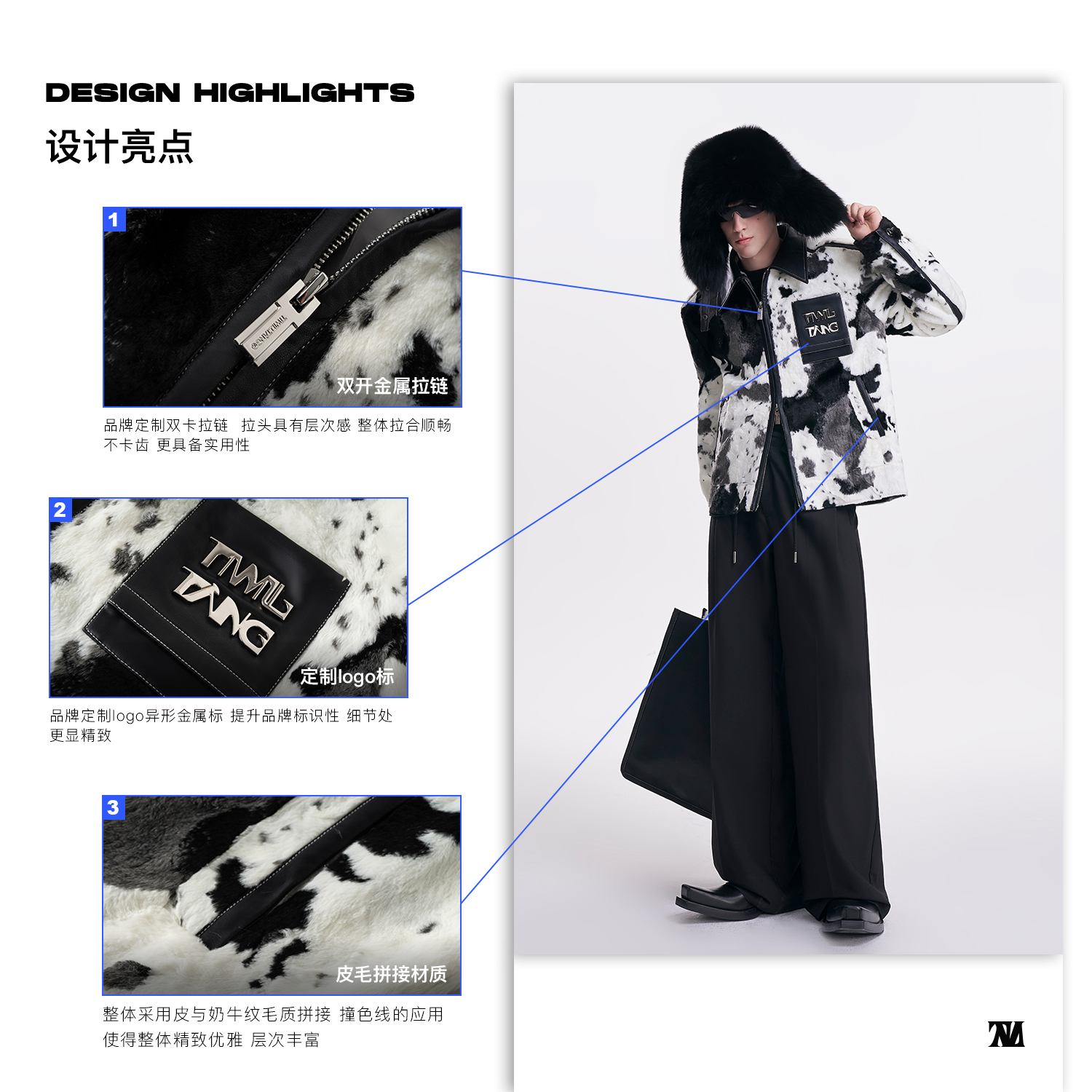 启世录TIWILLTANG"麂烬云衍"拼接秋冬翻领皮拼毛皮草夹克秋冬外套