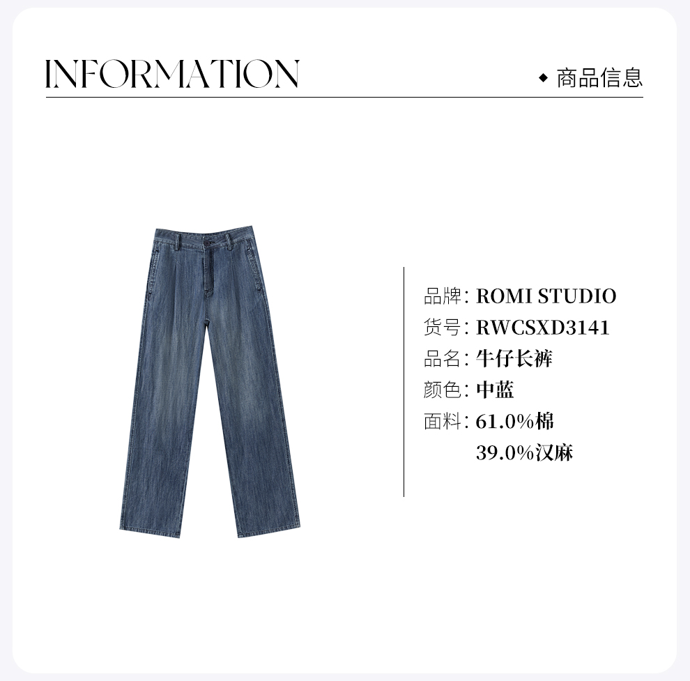 ROMI STUDIO“汉麻牛仔”汉麻棉混纺复古轻薄直筒牛仔裤 RWCSXD3141【发货时间:25-30天】