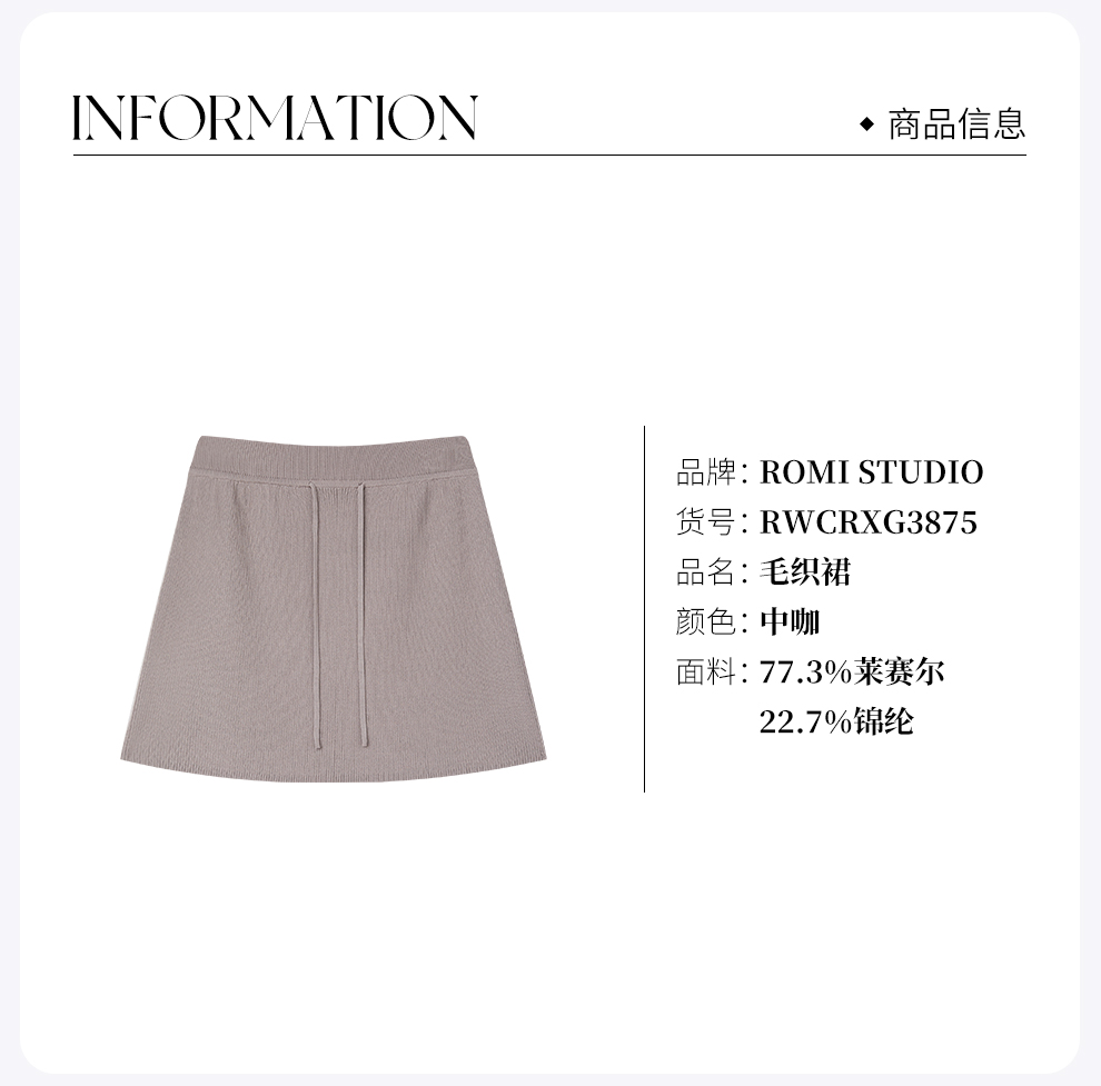 ROMI STUDIO 超细支莱赛尔混纺弹力抽绳松紧腰半身短裙RWCRXG3875