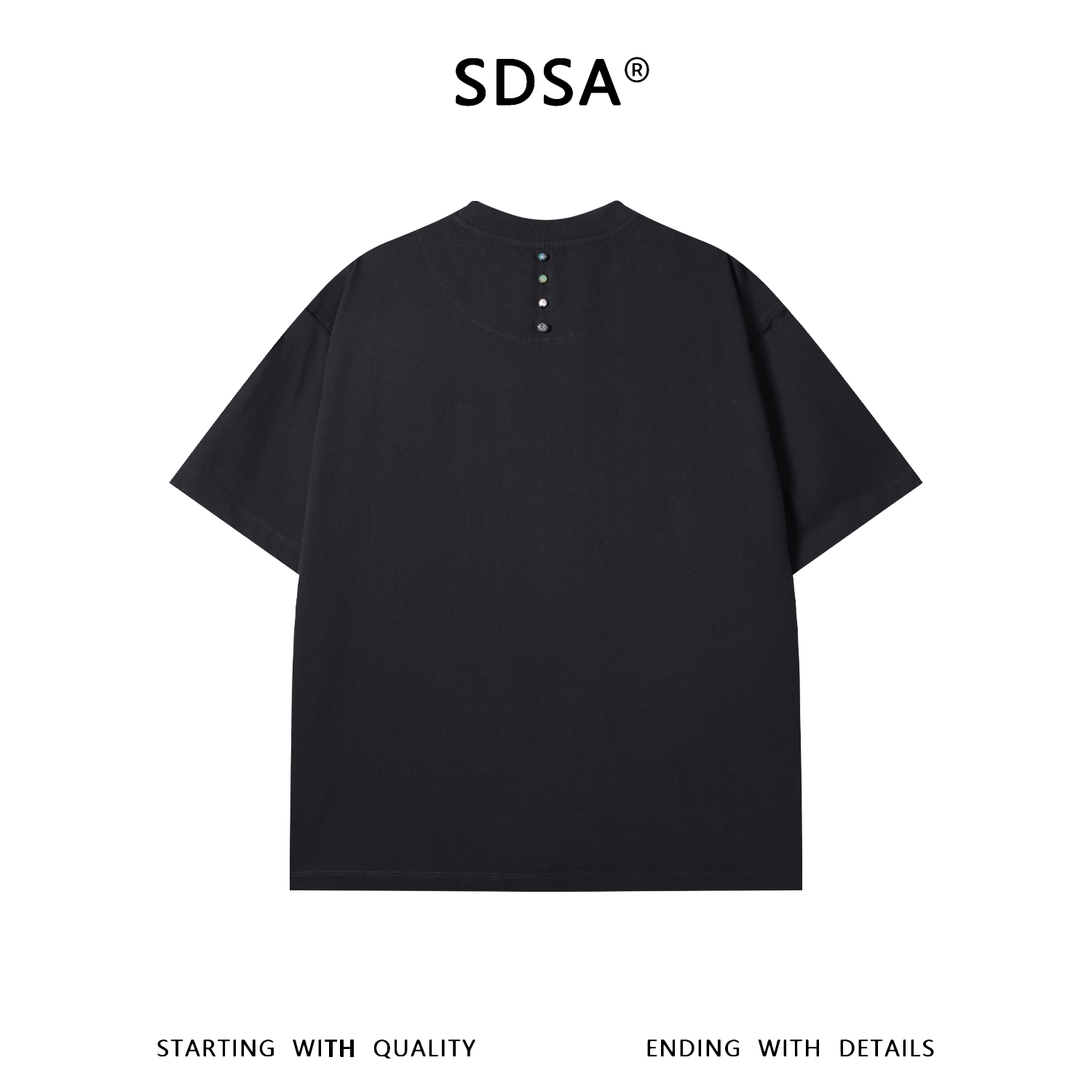 SDSA男装2026新款轻奢韩系简约圆领短袖T恤后背纽扣装饰设计百搭