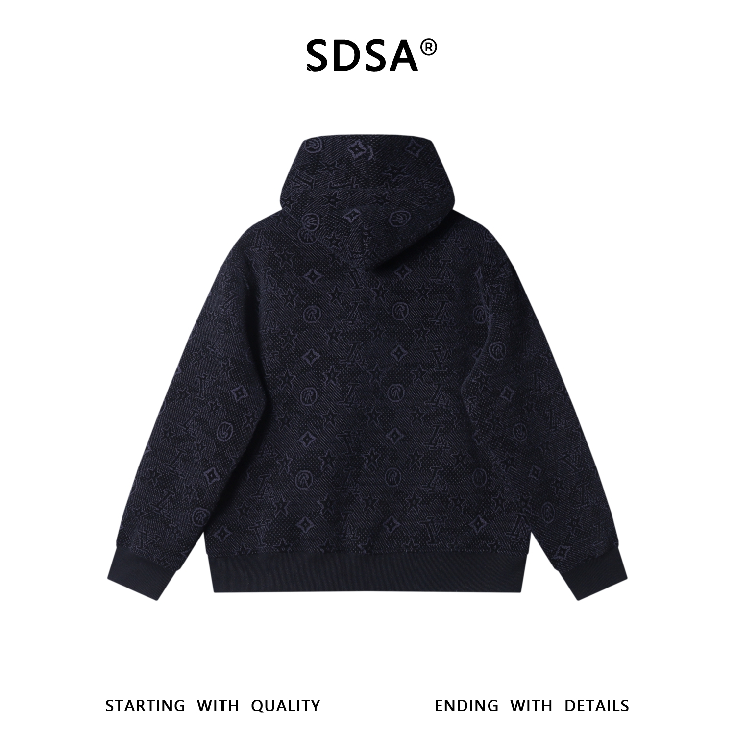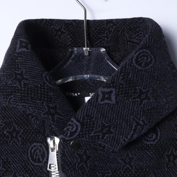 SDSA男士秋冬新款痞帅男装简约时尚绒毛图案提花斜拉链连帽卫衣