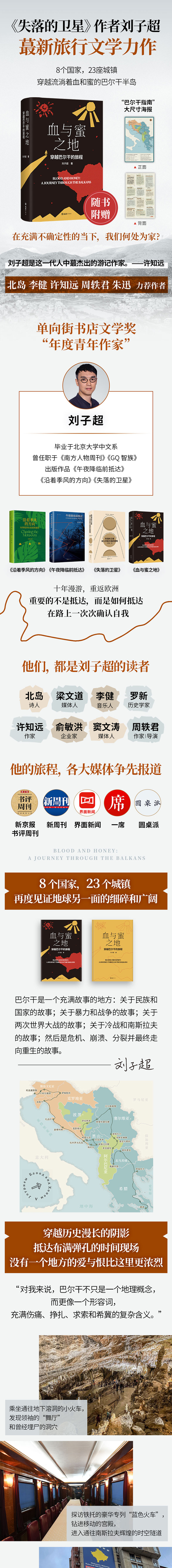 从北到南,由冬入春,知名旅行文学作家刘子超再次出发,带领我们穿越流淌着鲜血和蜂蜜的巴尔干半岛——意大利、斯洛文尼亚、克罗地亚、黑山、波黑、塞尔维亚、北马其顿、希腊——8个国家,23个城镇,再度见证地球另一面的细碎和广阔。