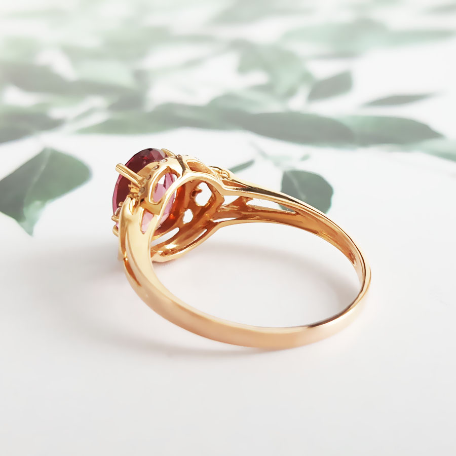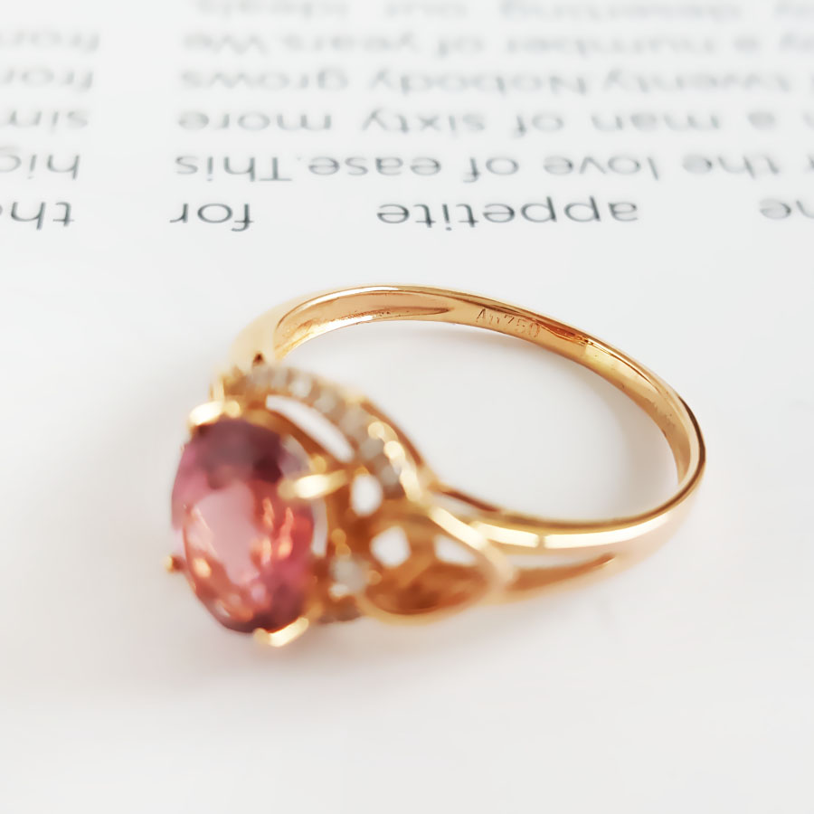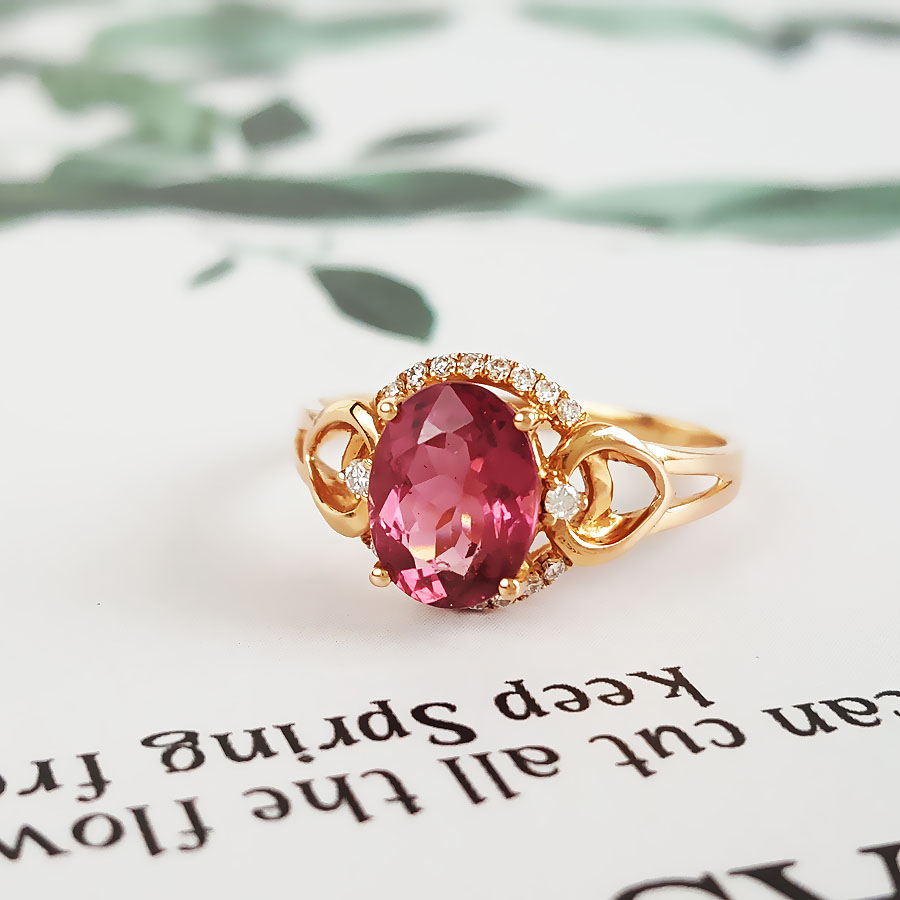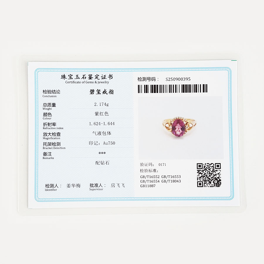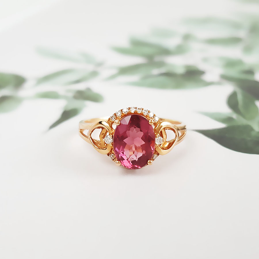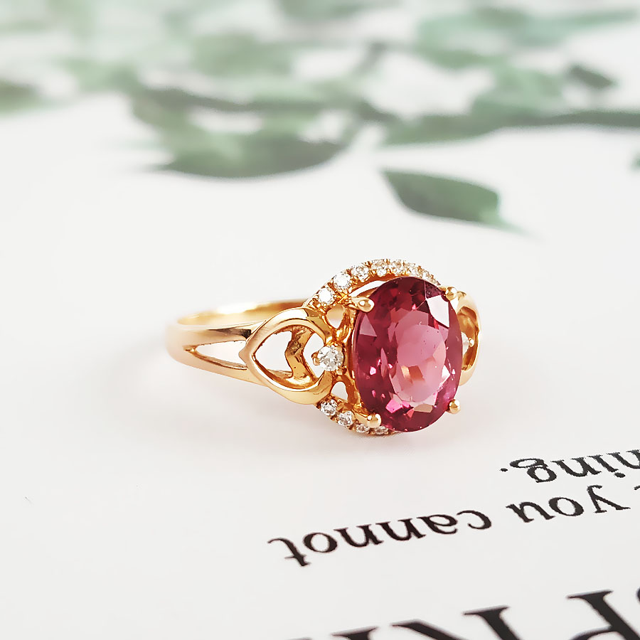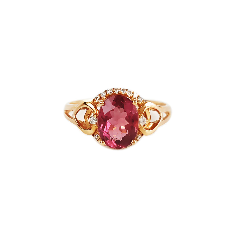 【天然正品】AU750玫瑰金镶钻镶天然紫红色碧玺(招财、平安)戒指110925NJM23 现售价:2380