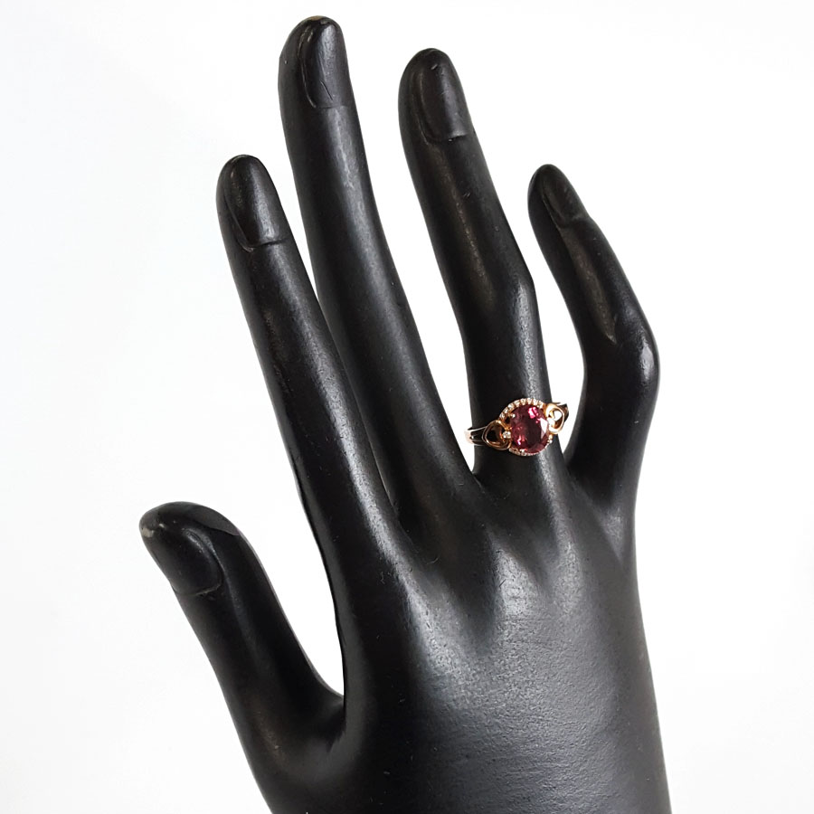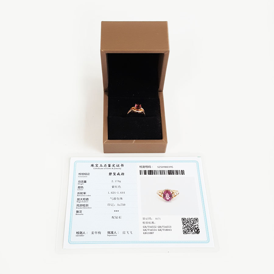 名称 | AU750玫瑰金镶钻镶天然紫红色碧玺(招财、平安)戒指 |