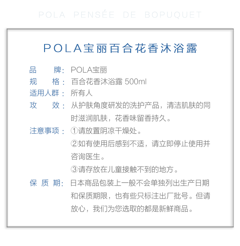 品牌名称:pola宝丽百合沐浴露品牌发源地:日本