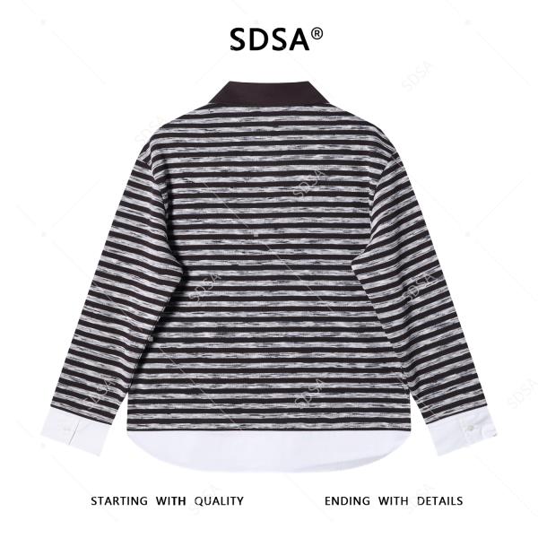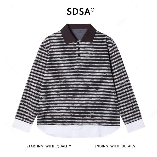 8583653SDSA男士秋冬新款痞帅男装韩版撞色条纹polo衫拼接下摆设计百搭