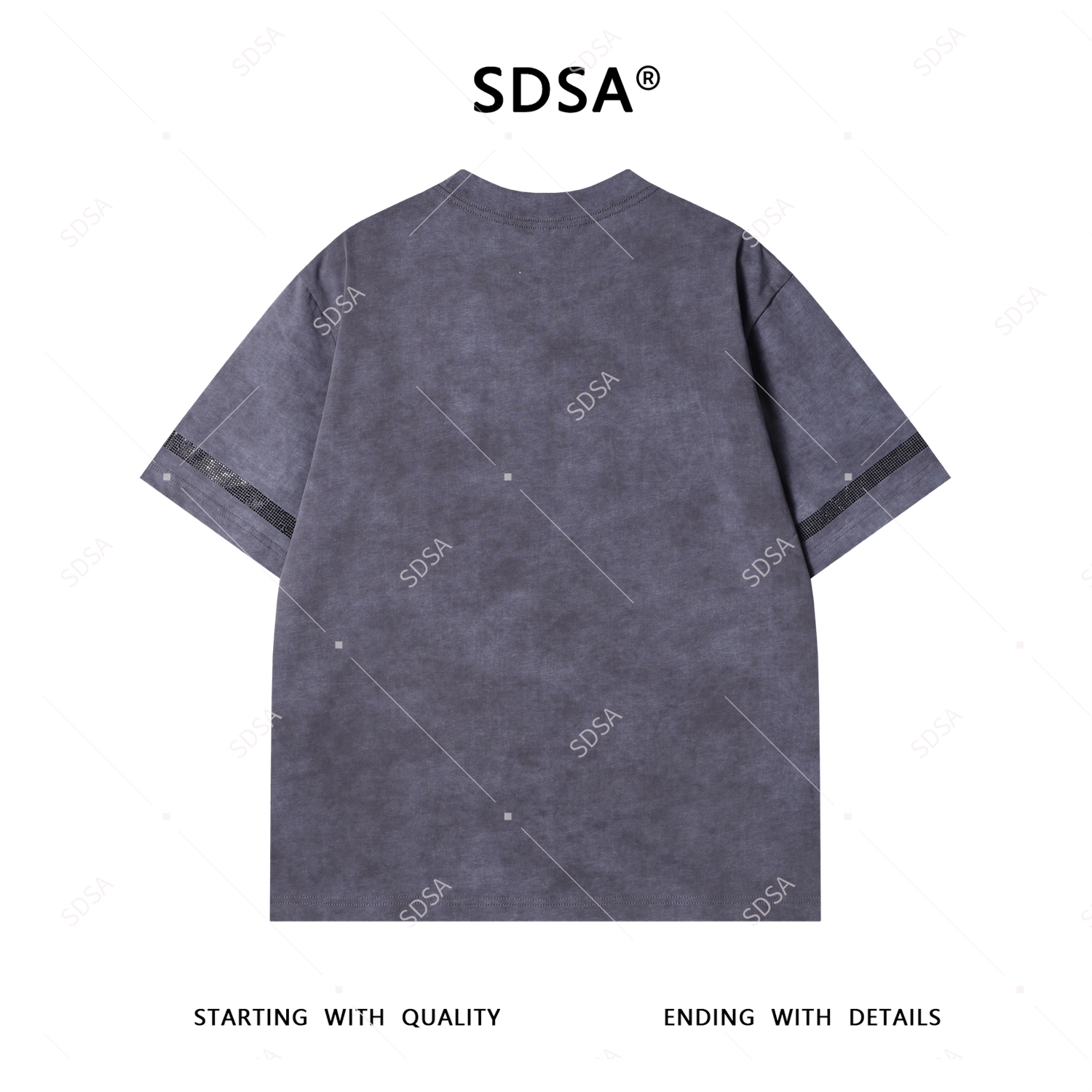 T4338SDSA夏季新款男士痞帅美式重工烫钻圆领短袖T恤小众设计高级感