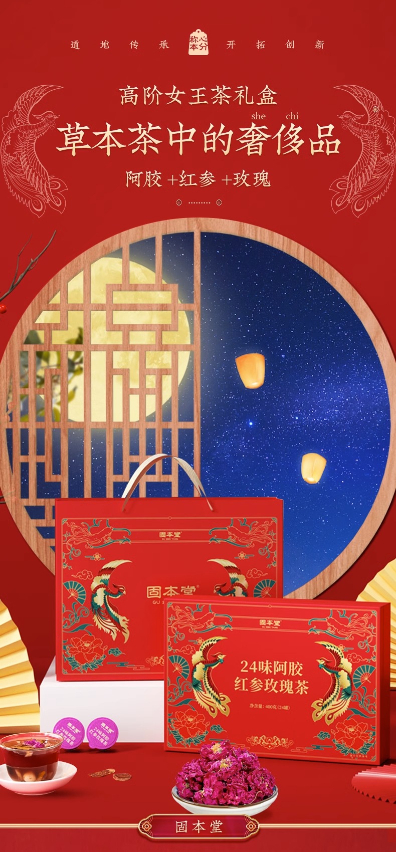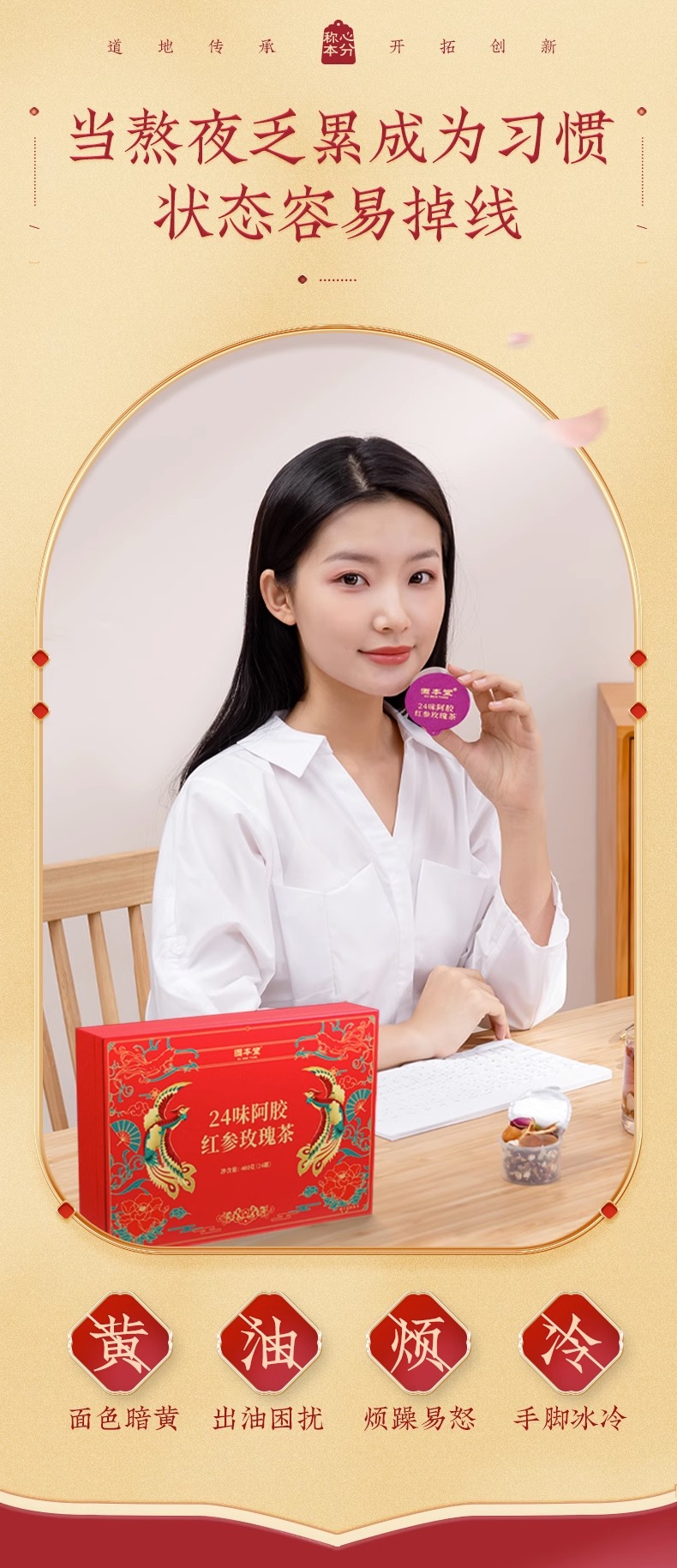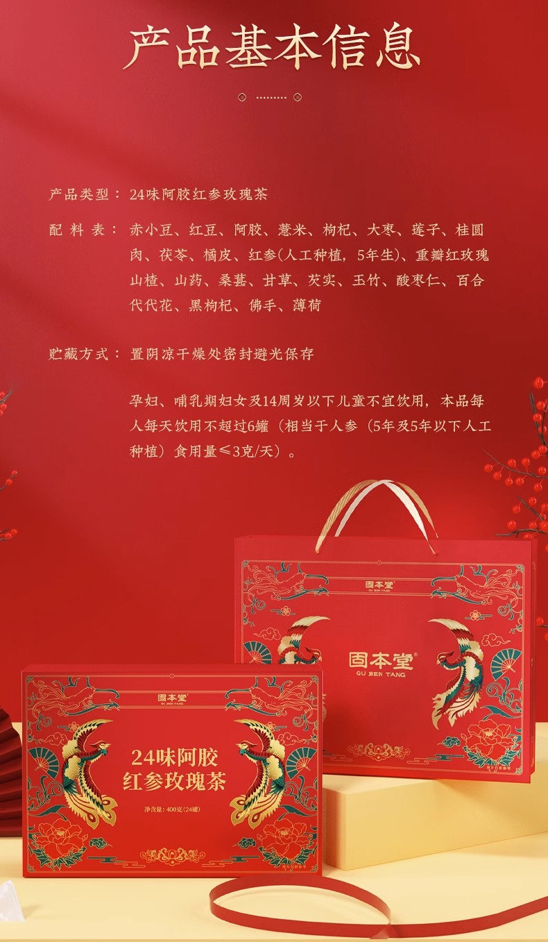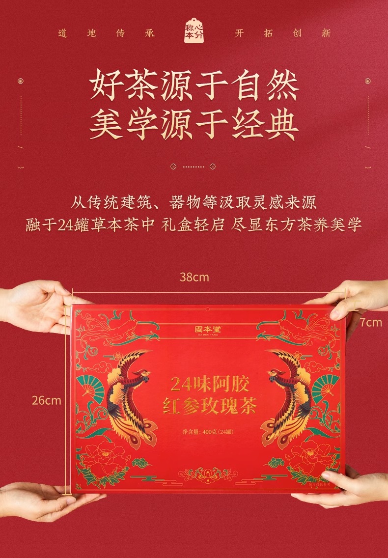 二十四味阿胶红参玫瑰茶400克礼盒 元气茶 含24味药材 坚持原产地采购 全是真材实料 完全0 添加 滋补更贴心 【固本堂】