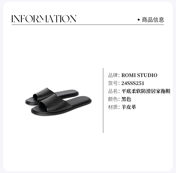 ROMI STUDIO”简易生活“羊皮一字面平底柔软防滑居家拖鞋24SSS251
