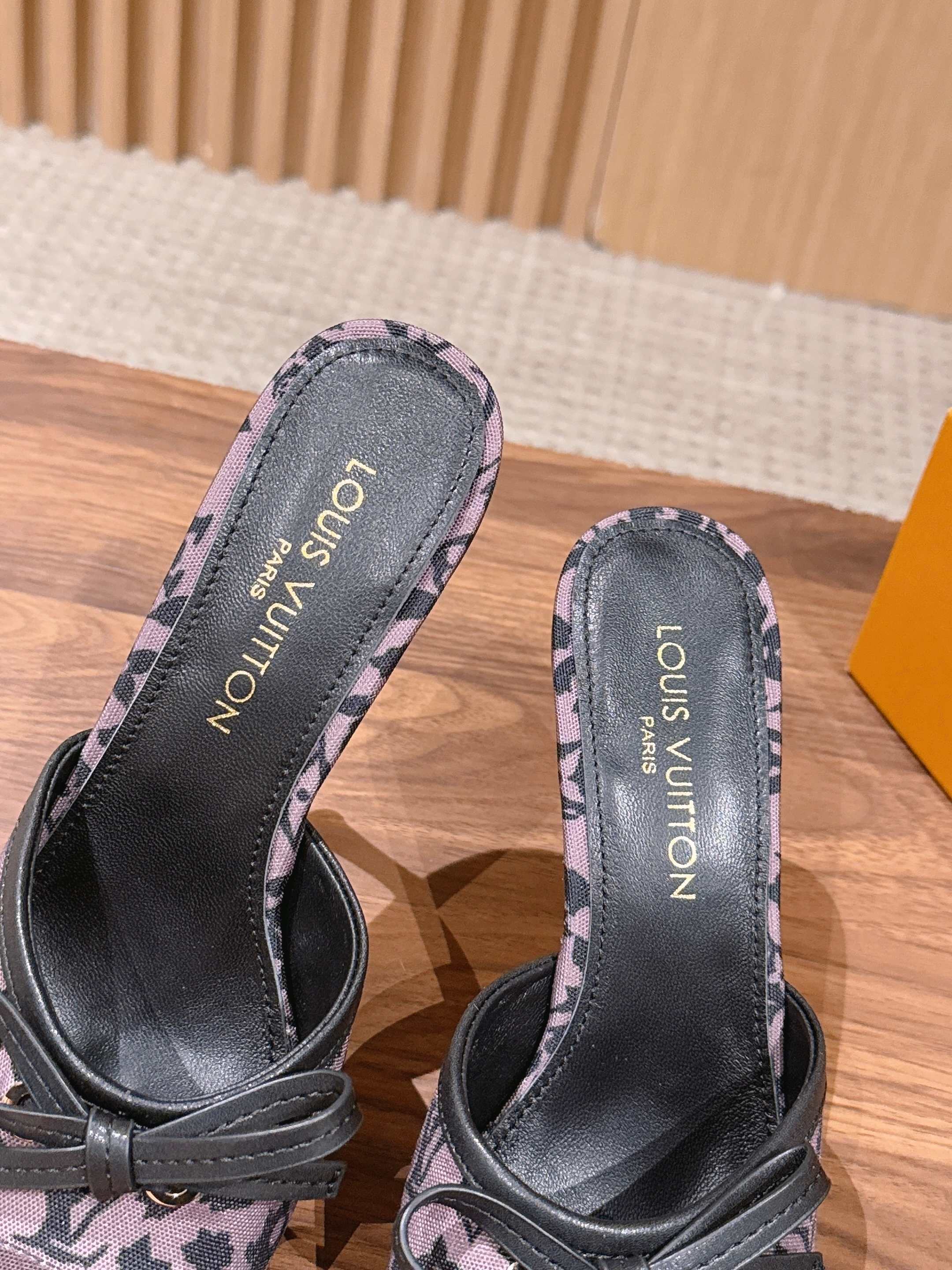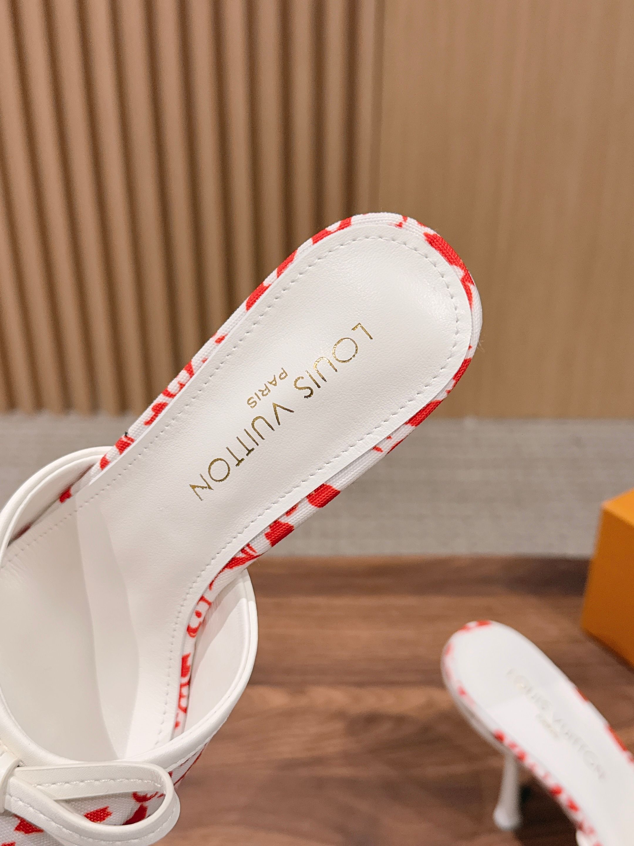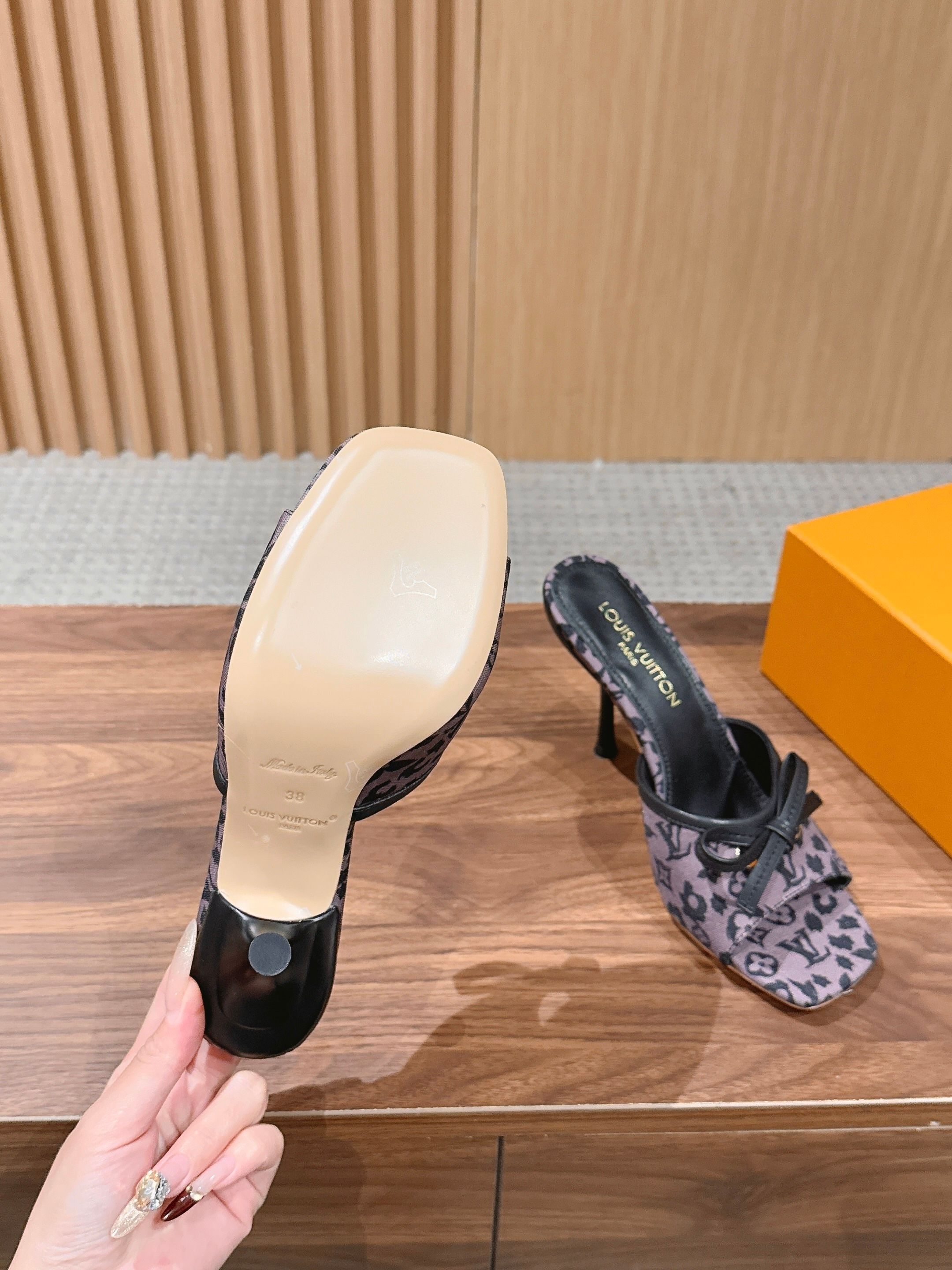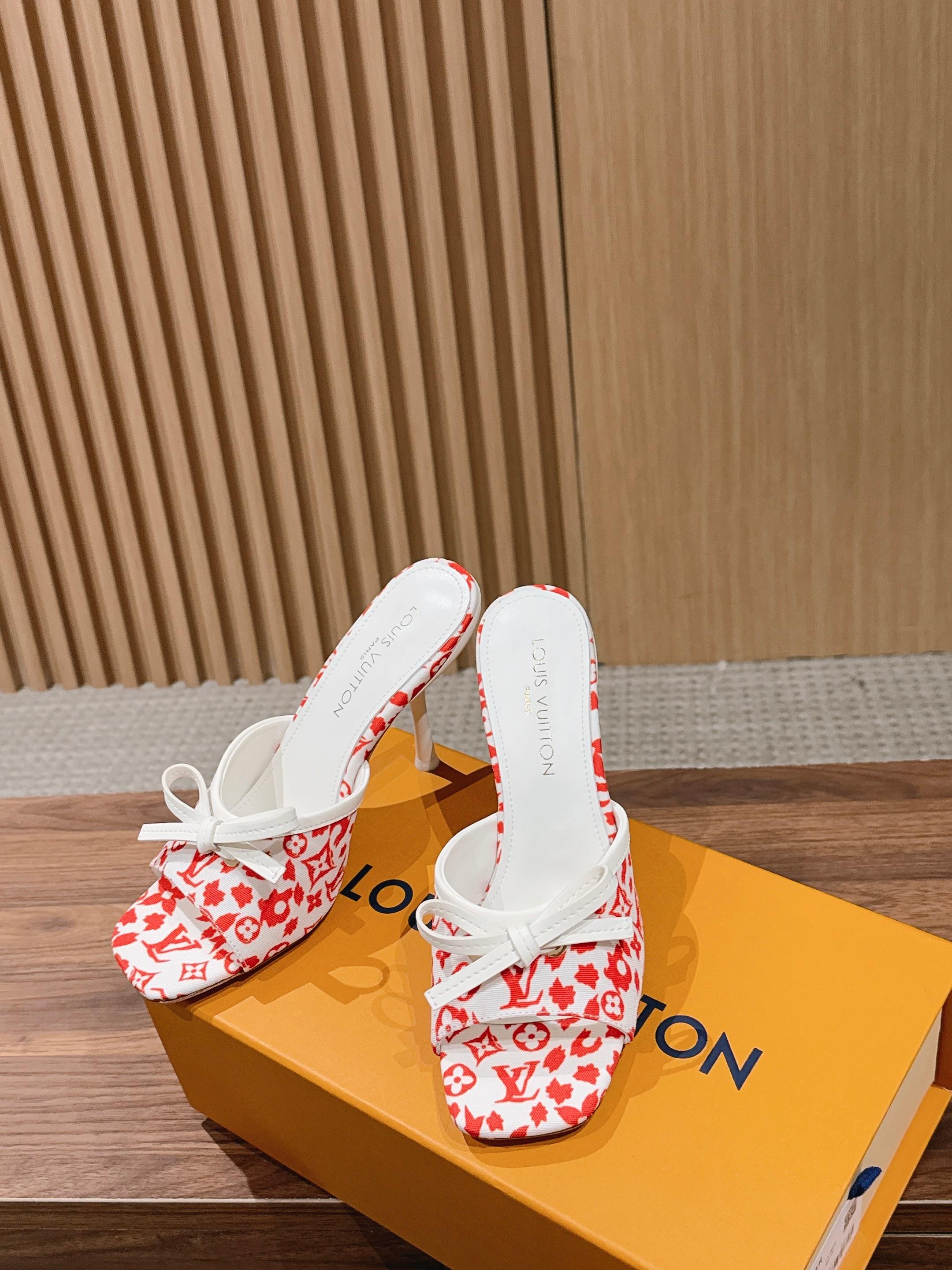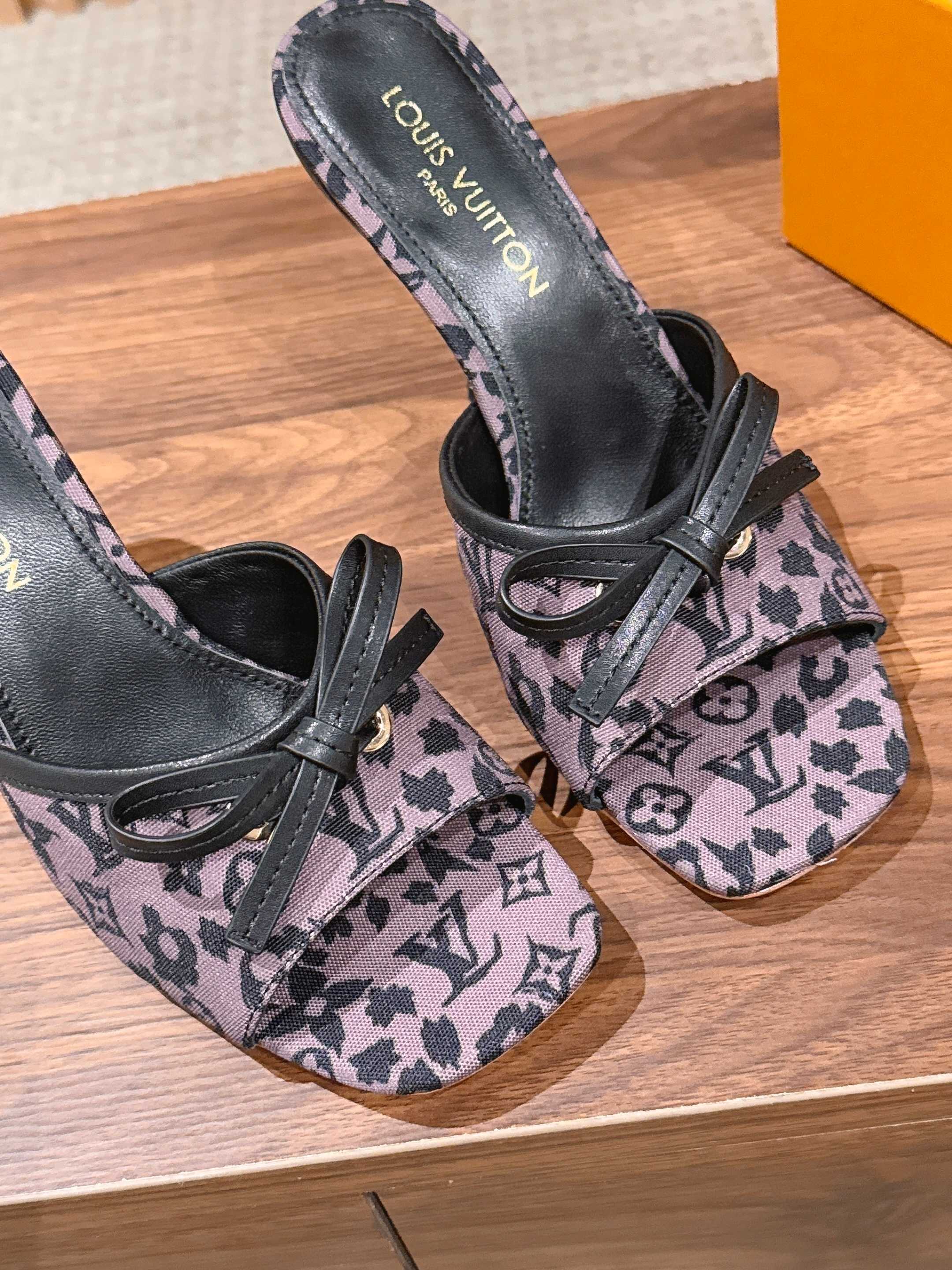 Louis Vuitton LV X TM 凉拖三彩系列小猫跟蝴蝶结凉拖鞋 小红书爆款小猫跟经典老花蝴蝶结拖鞋 路易威登×村上隆白彩联名全幅Monogram图案浸染彩虹色调,娓娓道出日本艺术家村上隆的标志性笔触。便鞋构型融入优雅小猫跟,饰钉牛皮革带再添摩登风范。 🔸面料:定制老花皮 🔸内里垫脚:羊皮 🔸鞋底:意大利真皮大底 🔸跟高:5.5cm 9.5cm 🔸码数:35-39(40.41定做不退换)
