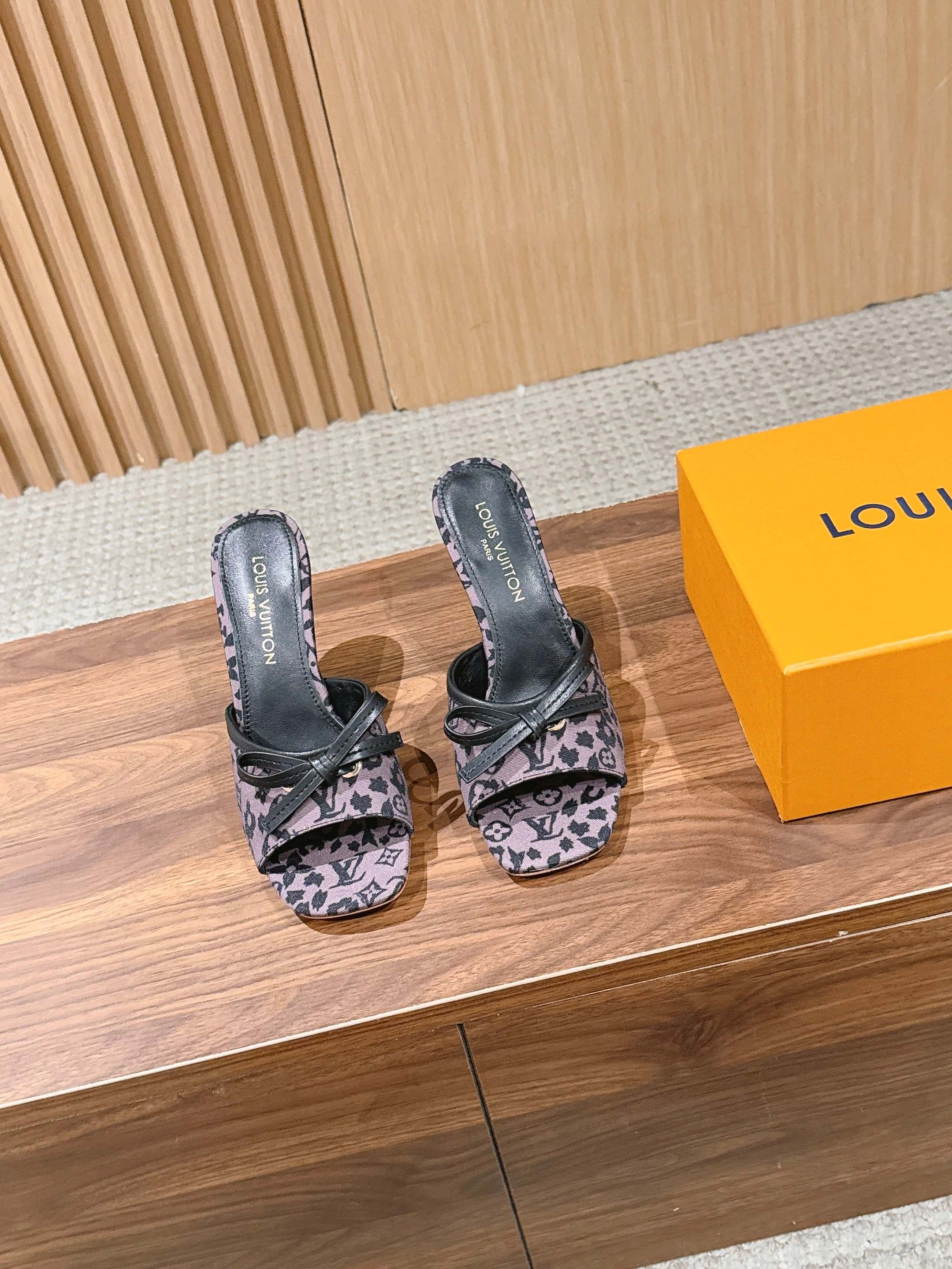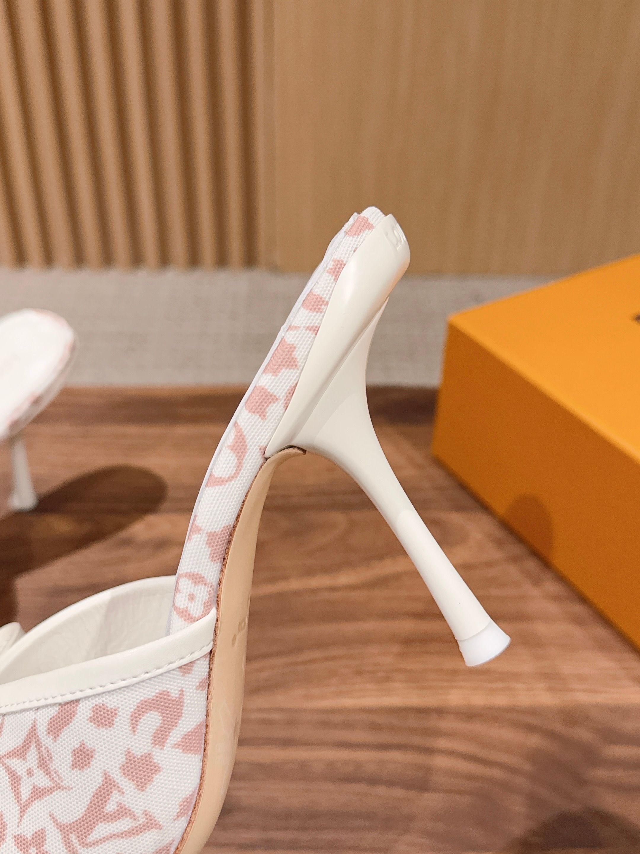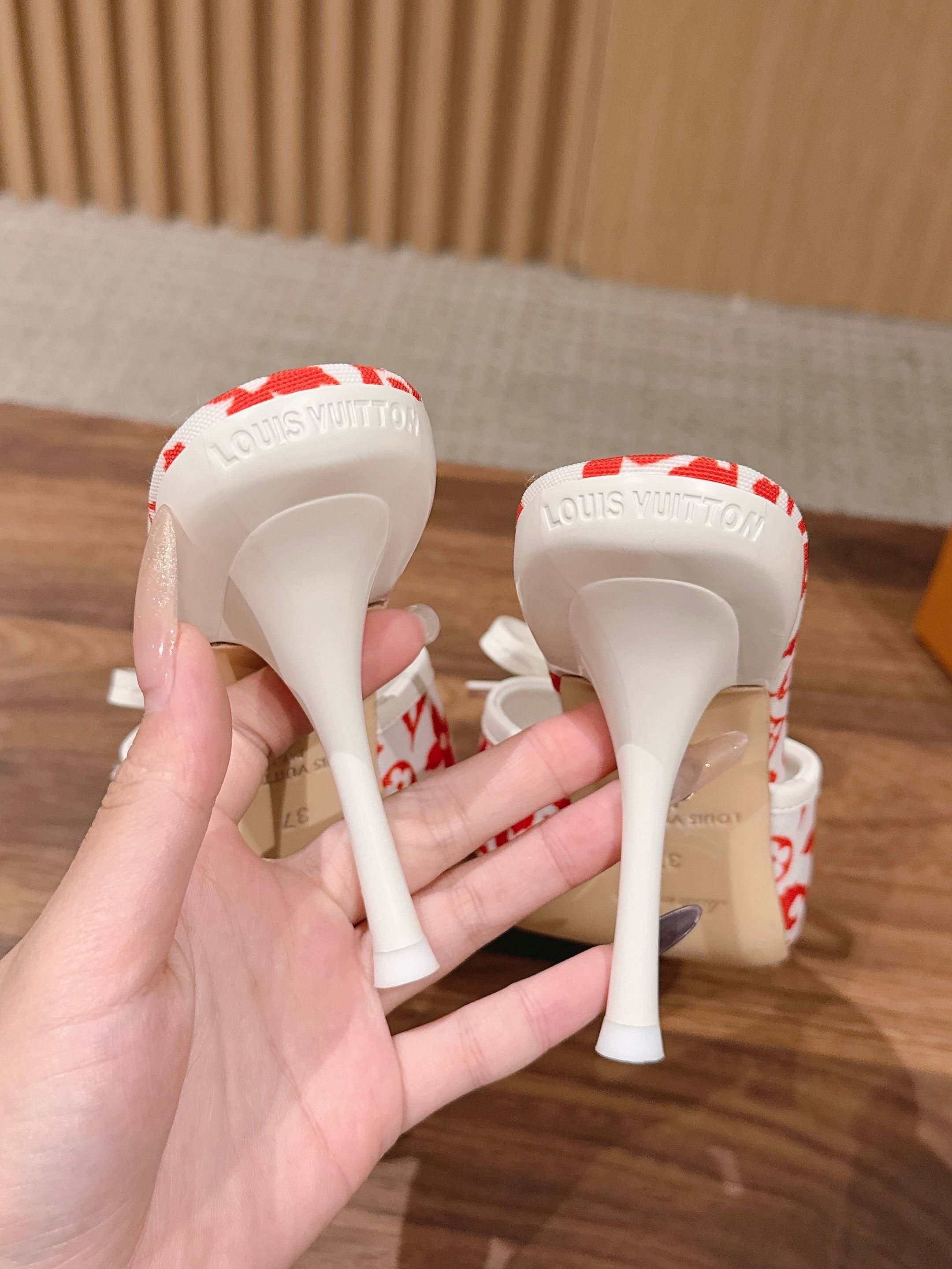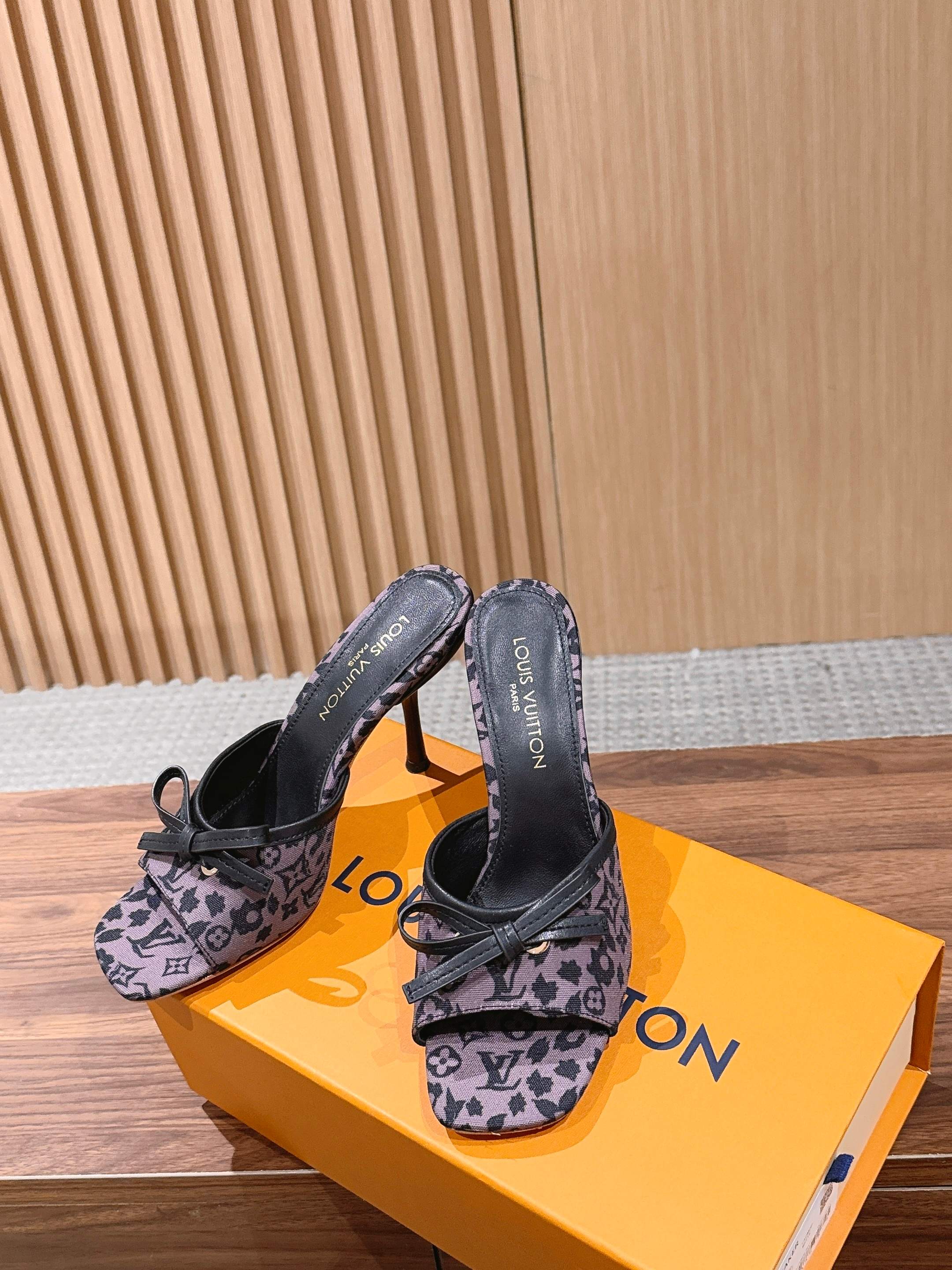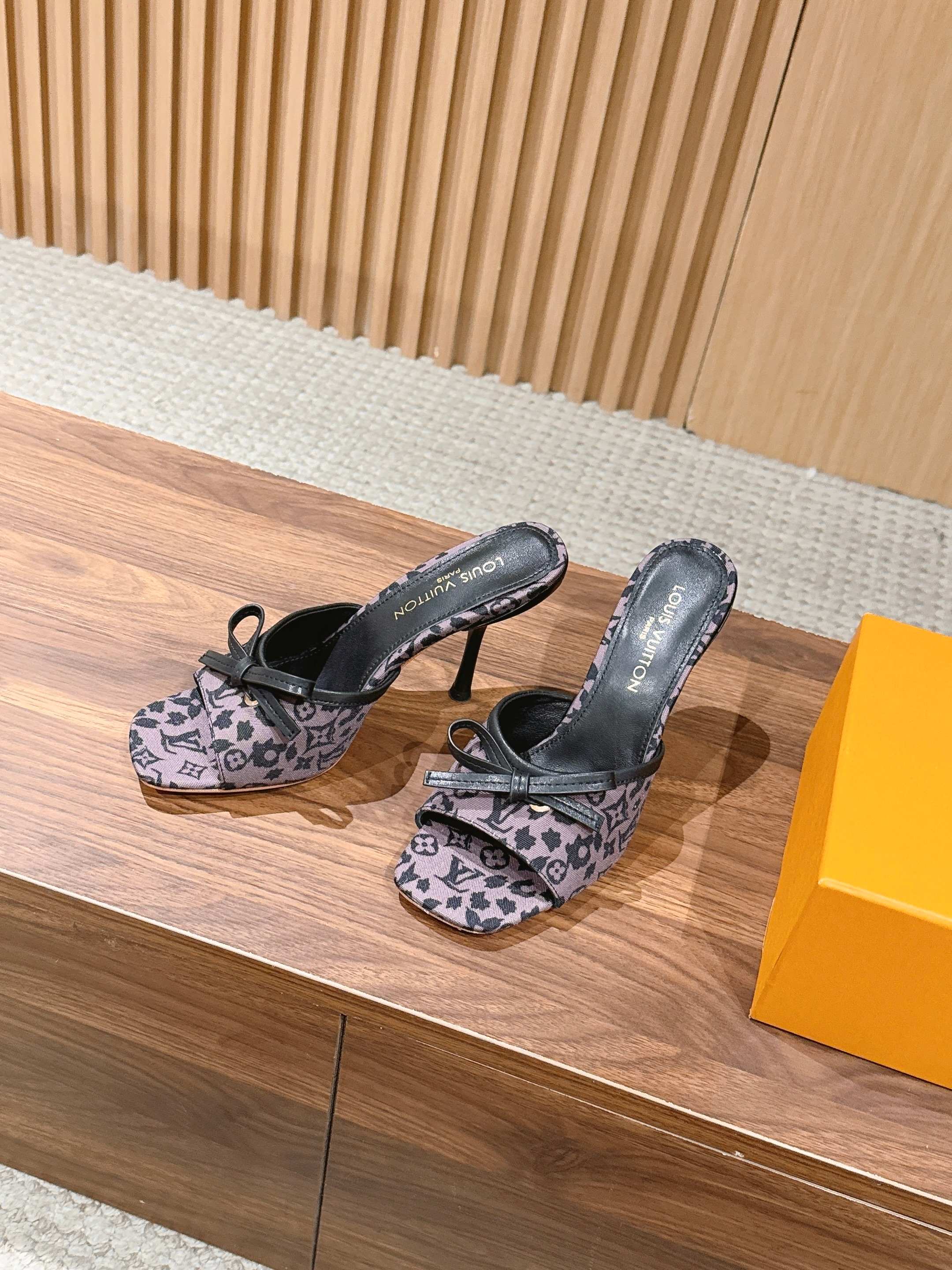 Louis Vuitton LV X TM 凉拖三彩系列小猫跟蝴蝶结凉拖鞋 小红书爆款小猫跟经典老花蝴蝶结拖鞋 路易威登×村上隆白彩联名全幅Monogram图案浸染彩虹色调,娓娓道出日本艺术家村上隆的标志性笔触。便鞋构型融入优雅小猫跟,饰钉牛皮革带再添摩登风范。 🔸面料:定制老花皮 🔸内里垫脚:羊皮 🔸鞋底:意大利真皮大底 🔸跟高:5.5cm 9.5cm 🔸码数:35-39(40.41定做不退换)