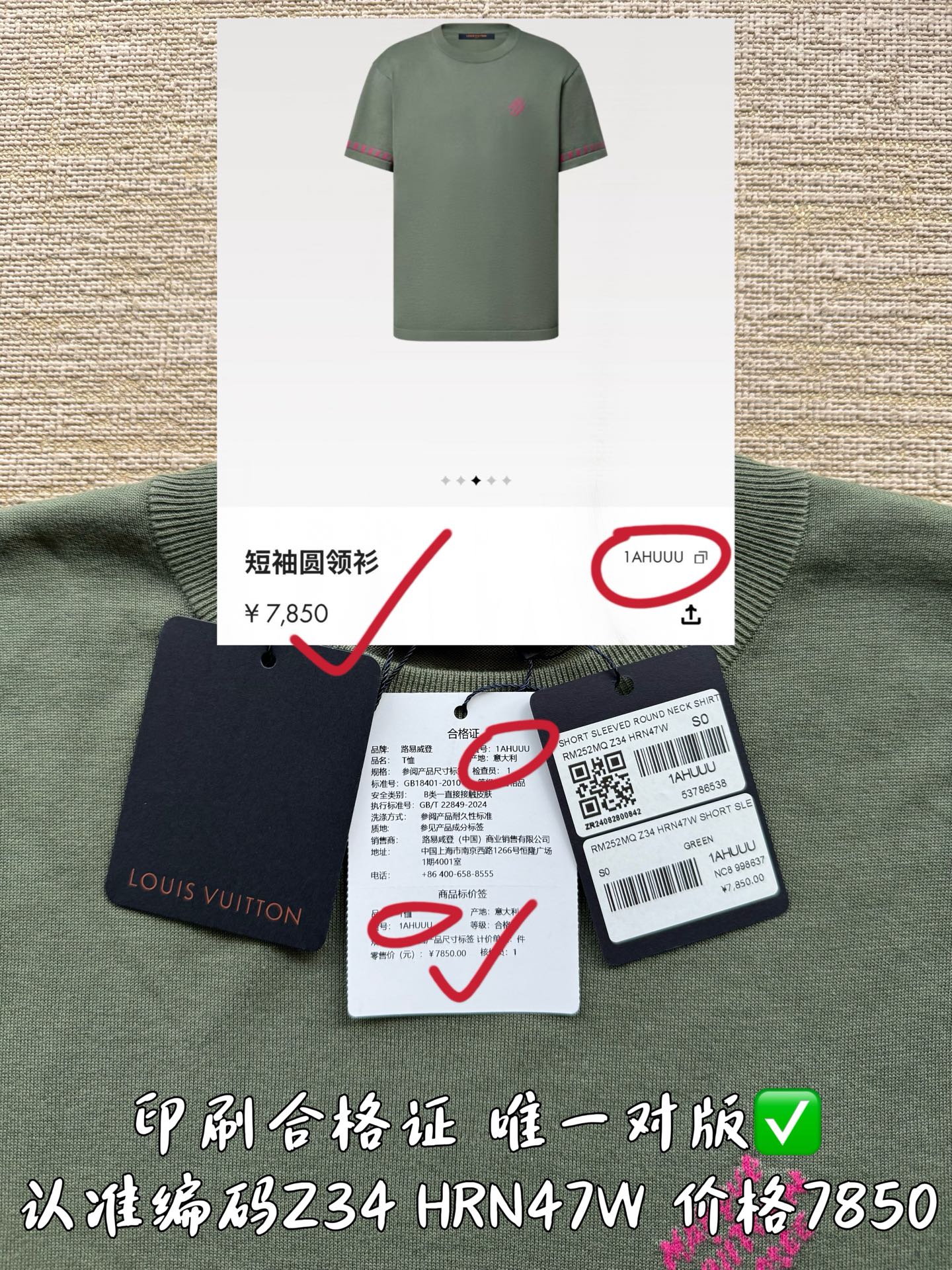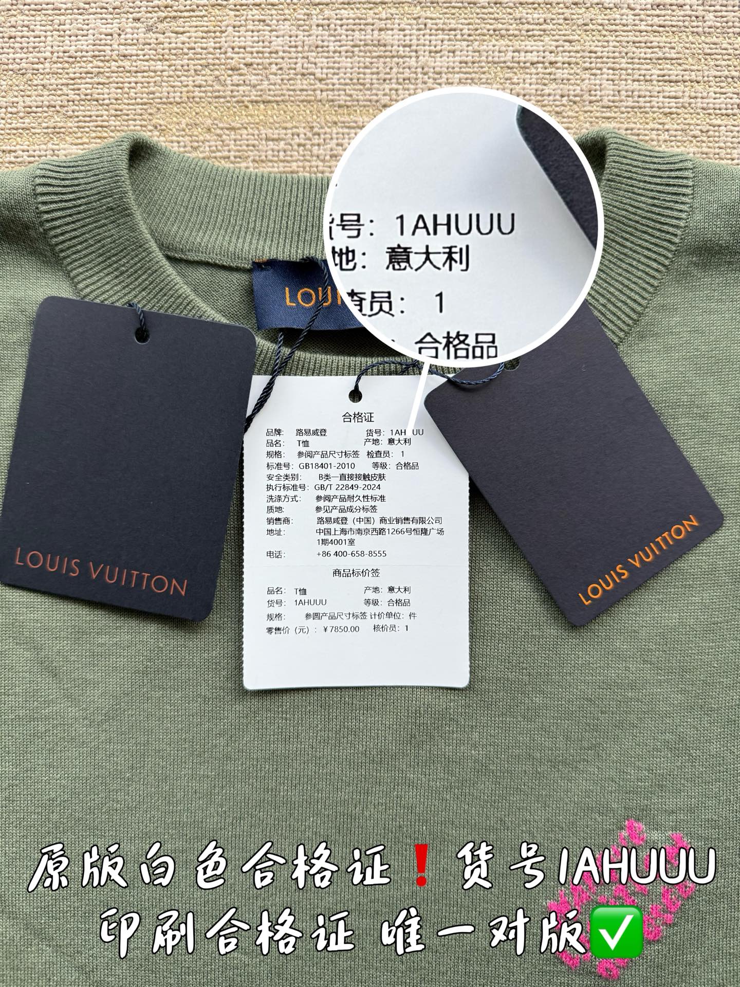 印刷合格证货号1AHUUU 唯一对版✅