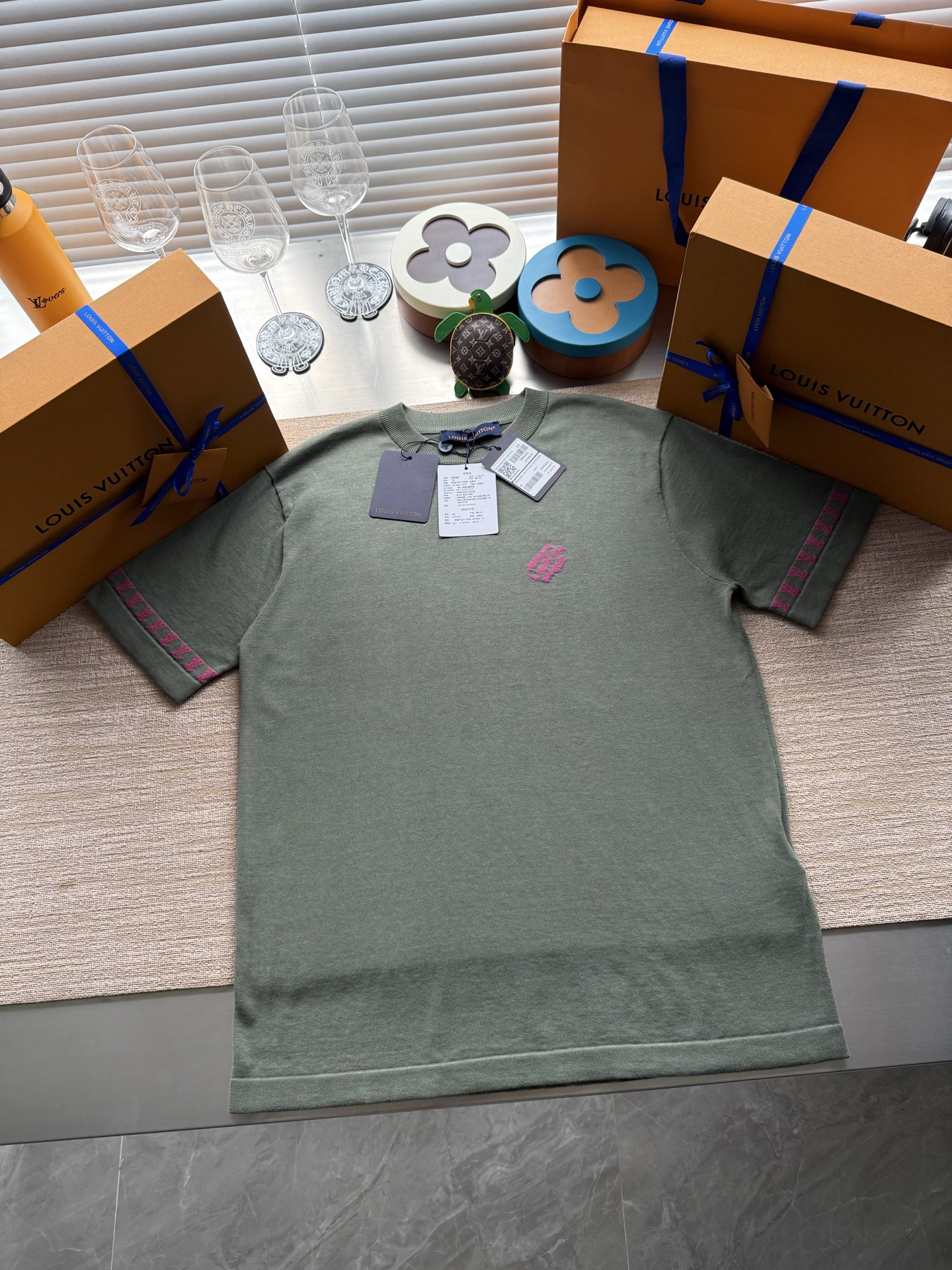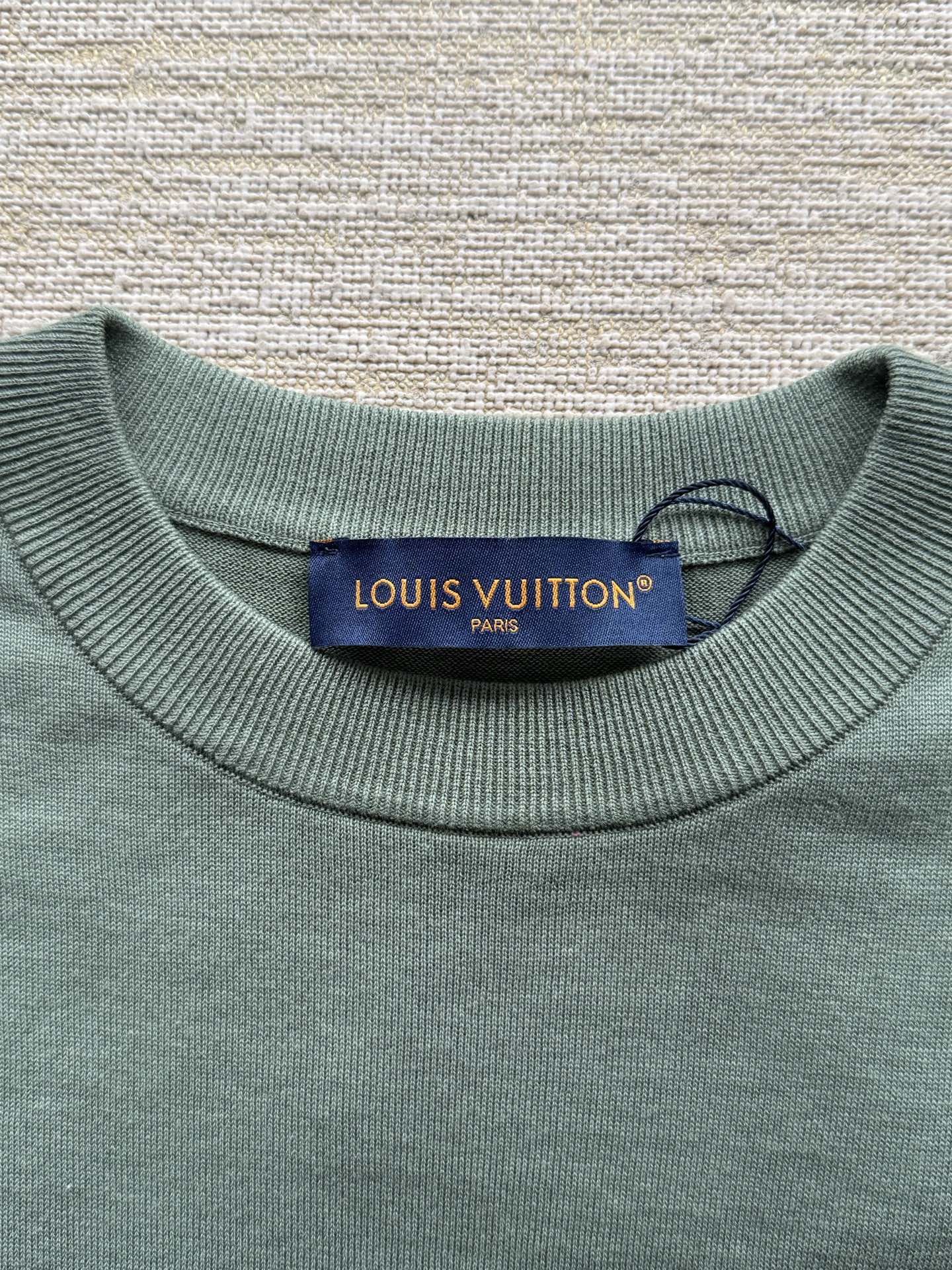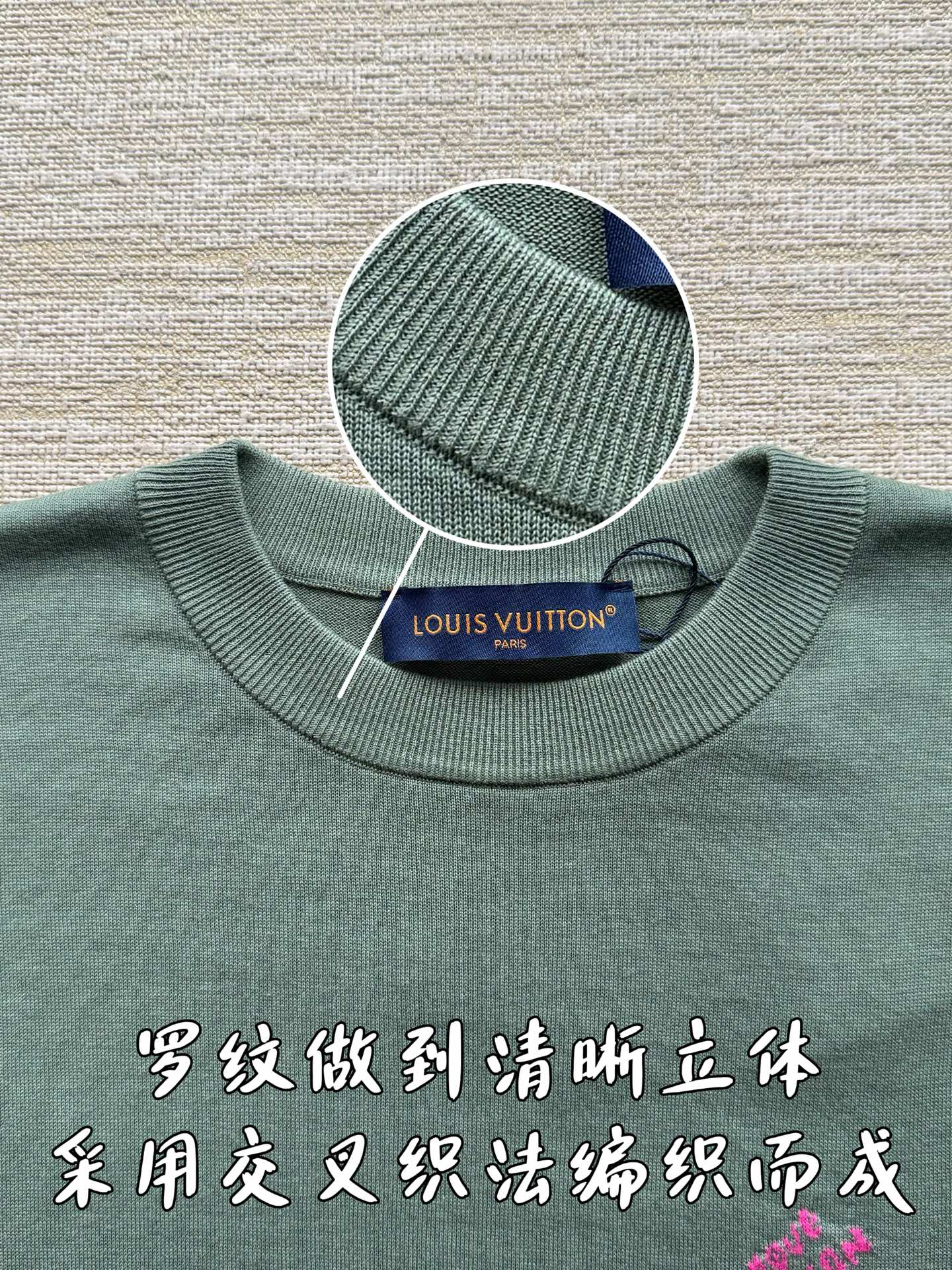 Louis Vuitton25ss撞色提花标识针织短袖T恤‼️整件衣服7850购买ZP拆解打造,采用定制棉质针织面料,做到100%全棉进口纱线,采用意大利进口14针电脑横机制造,胸前 袖口饰以LV字母标识撞色提花设计,提花做到与面料融为一体,真正做到1:1copy 码数:XS S M L