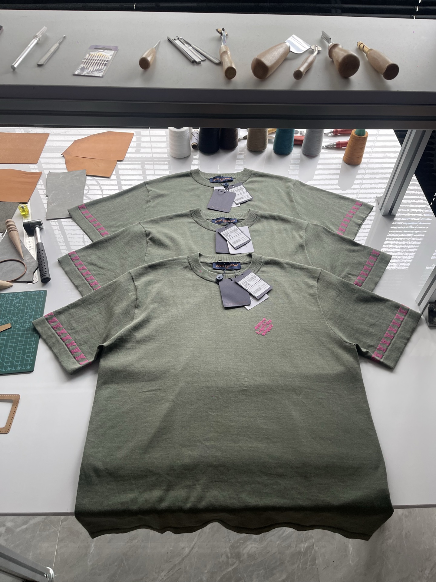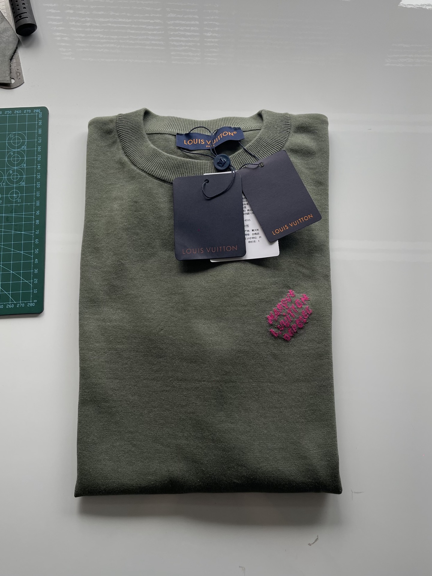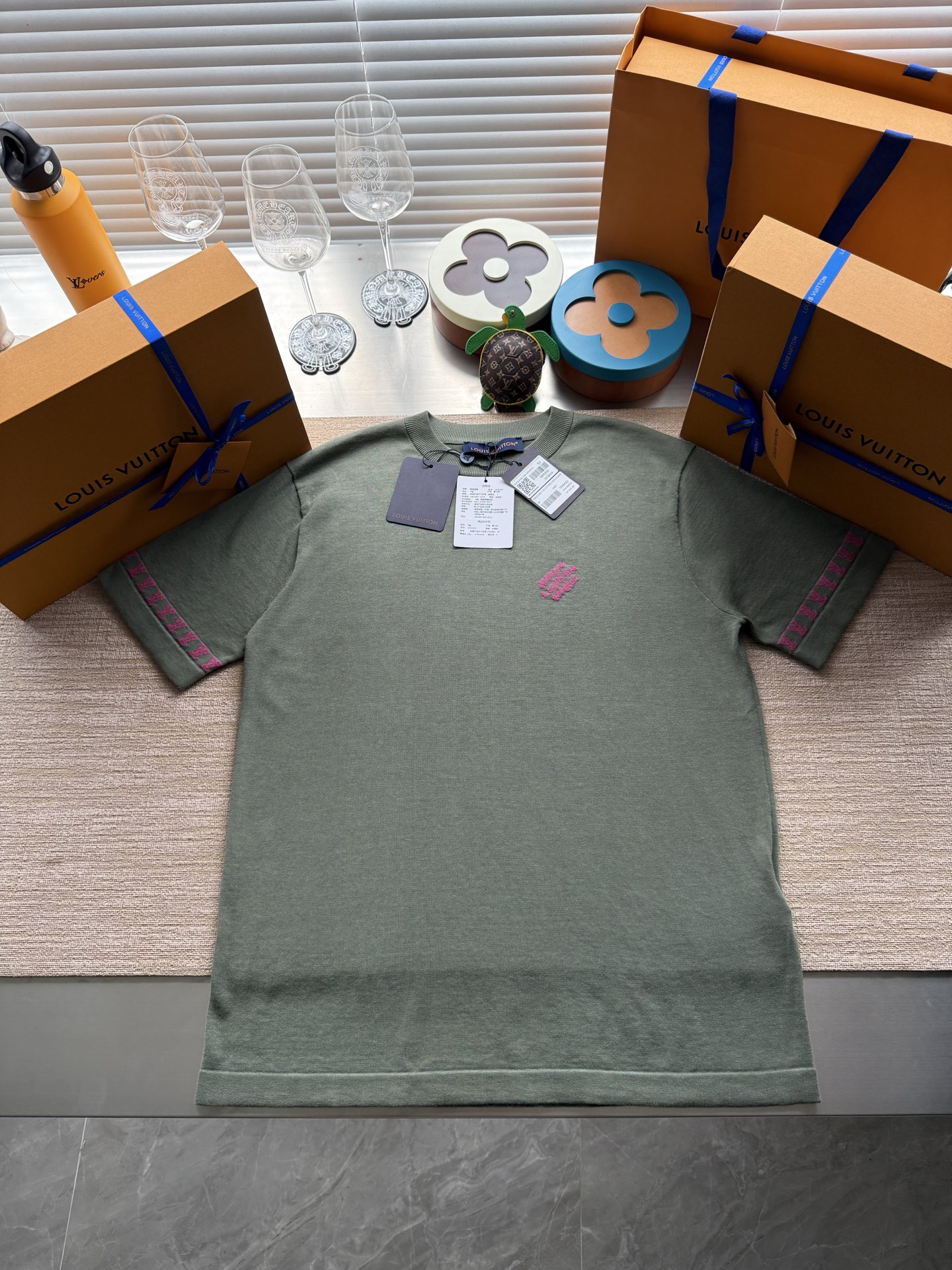 Louis Vuitton25ss撞色提花标识针织短袖T恤‼️整件衣服7850购买ZP拆解打造,采用定制棉质针织面料,做到100%全棉进口纱线,采用意大利进口14针电脑横机制造,胸前 袖口饰以LV字母标识撞色提花设计,提花做到与面料融为一体,真正做到1:1copy 码数:XS S M L