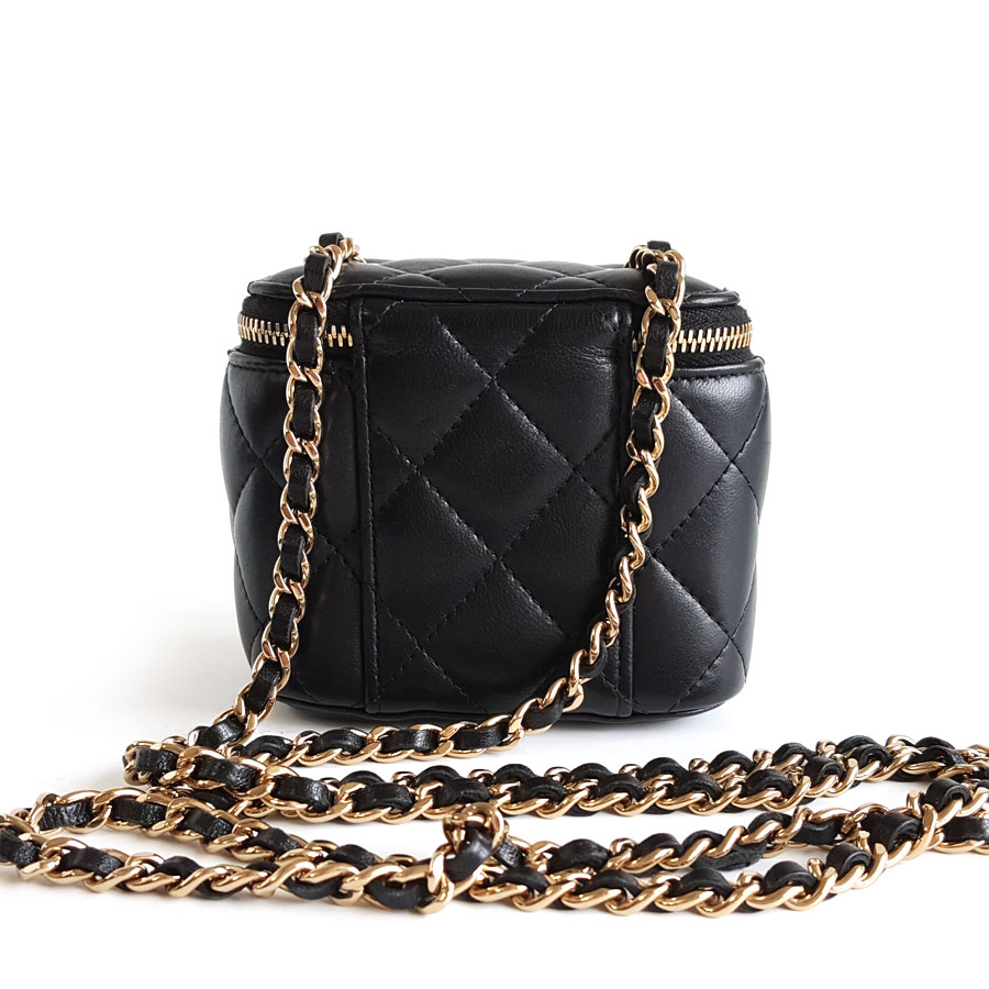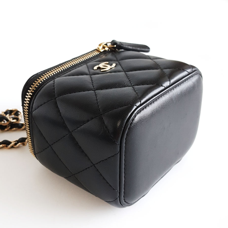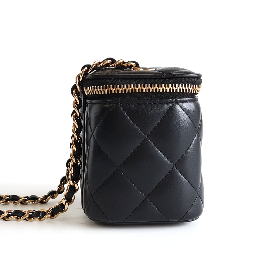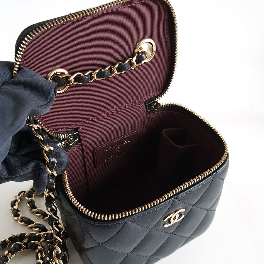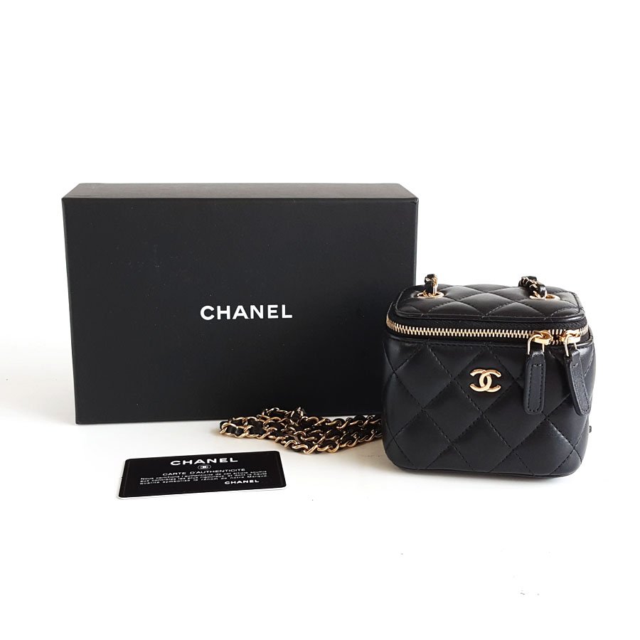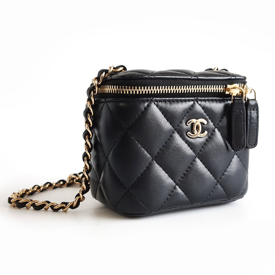 【95新】CHANEL香奈儿黑金羊皮小盒子方盒子化妆盒链条包女士现售价:11500!220425JJ01