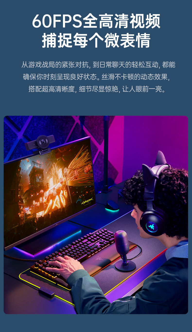 Razer雷蛇 清姬V2X摄像头60FPS全高清视频【雷蛇官方直营,延保一年】