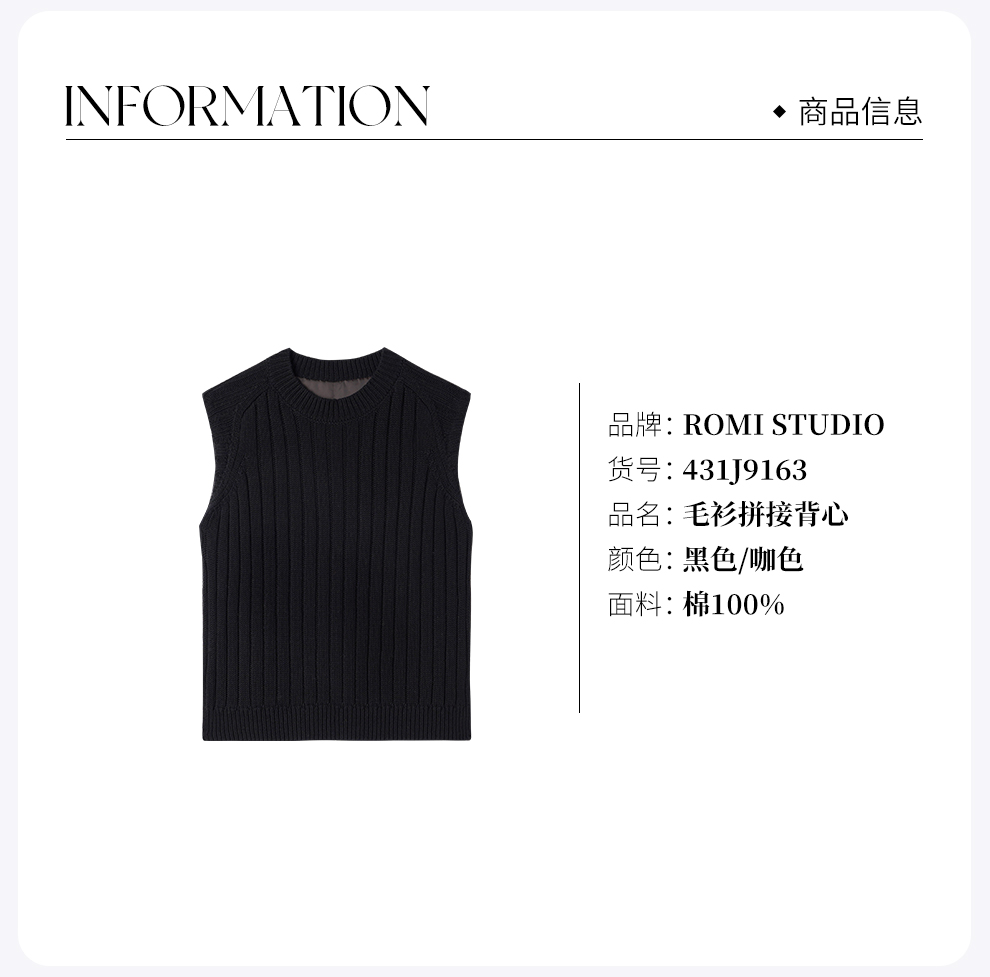 ROMI STUDIO “法式优雅” 5针100%有机棉弹力坑条无袖马甲431J9163